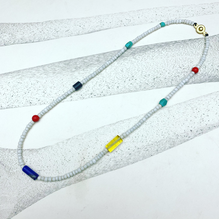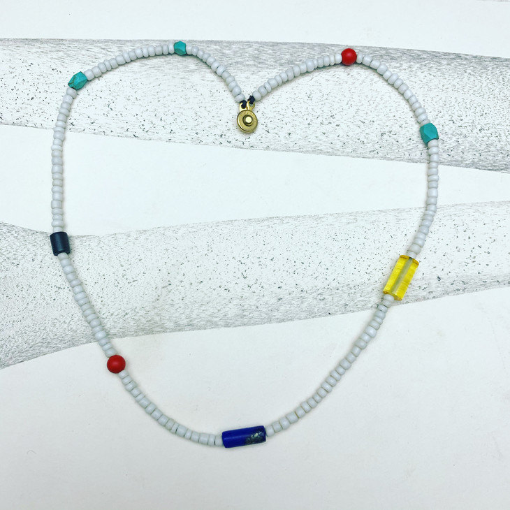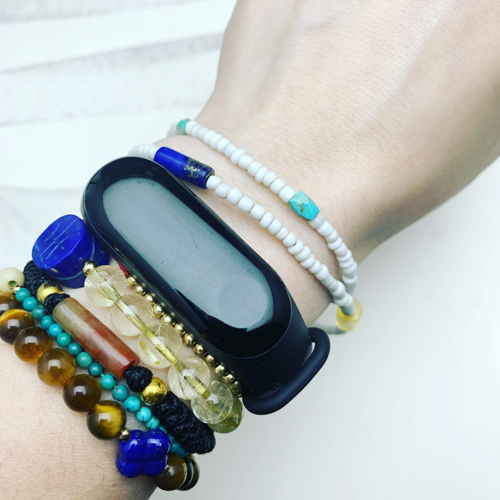 白色老琉璃3mm,金珀桶珠直径6mm,青金石桶珠直径4.5mm,煤精5mm,朱砂5mm,天然绿松石直径4mm左右。