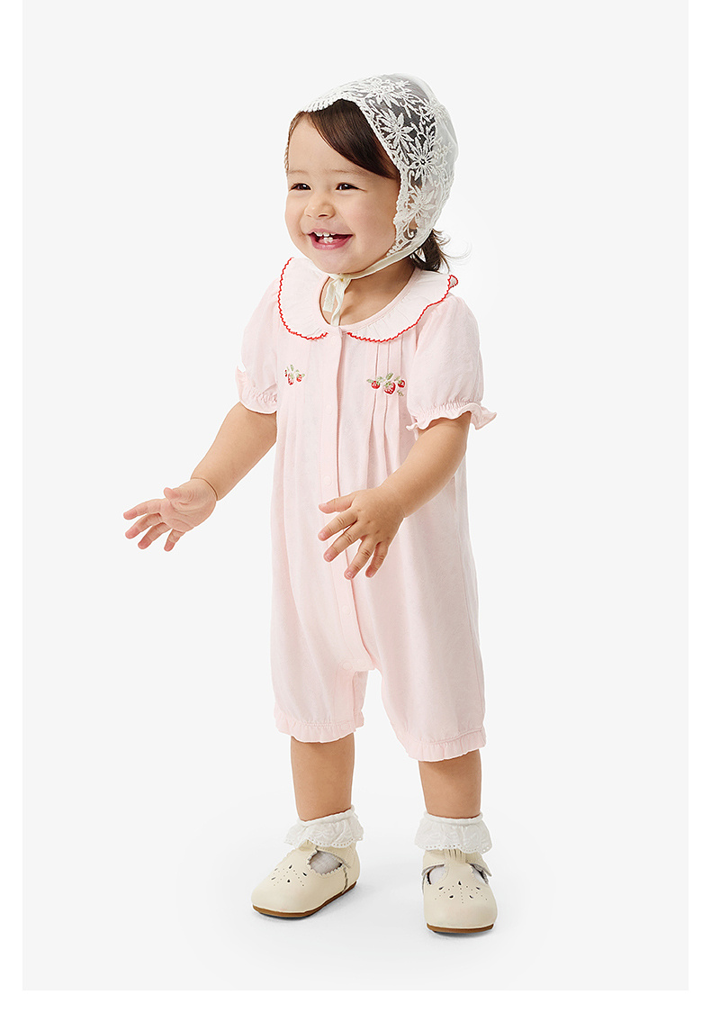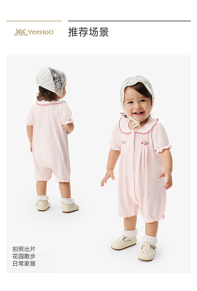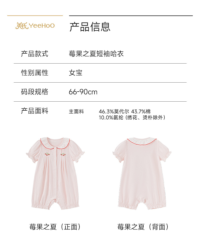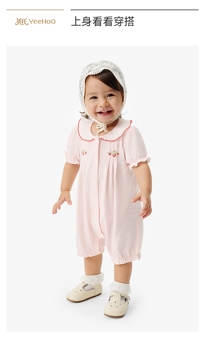 【莫代尔】英氏婴儿衣服夏季女宝宝A类一等品连体衣薄款短袖连身衣可爱哈衣