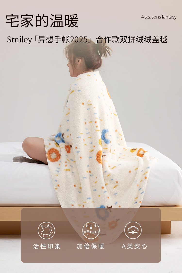 Smiley × 2025异想手帐合作款 Huggy Dopamine双拼绒绒盖毯【该商品不支持用券】