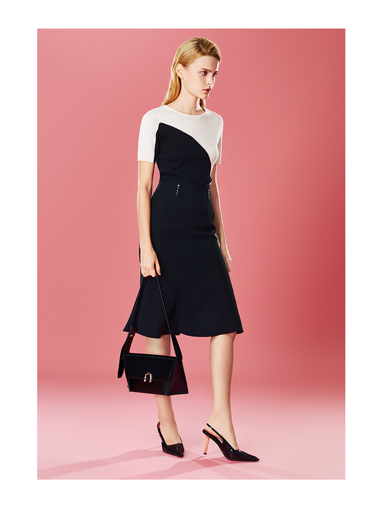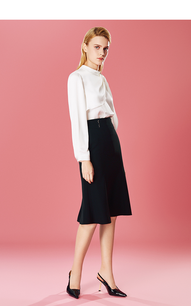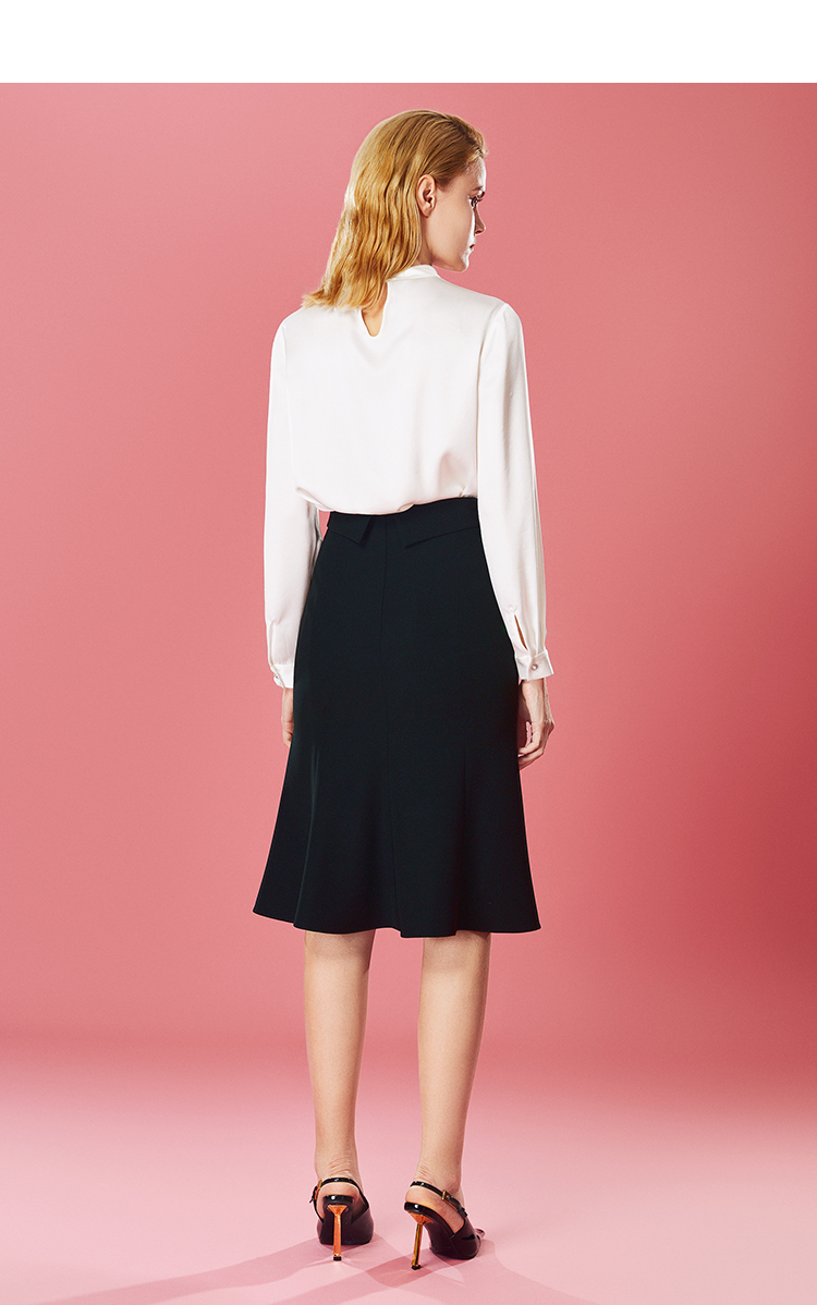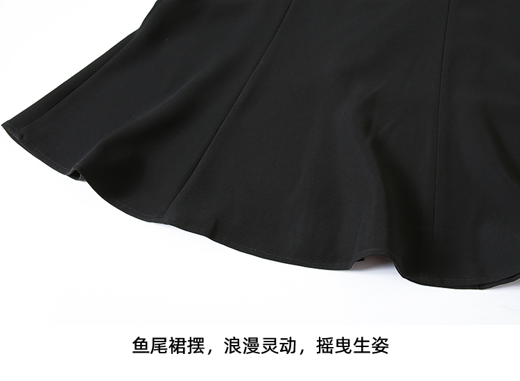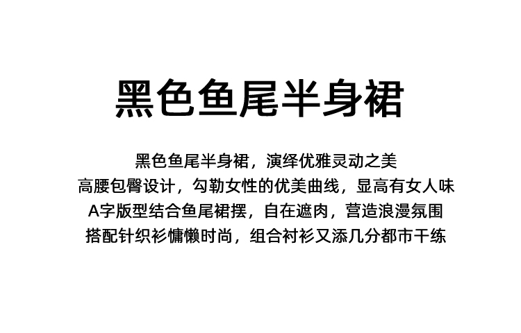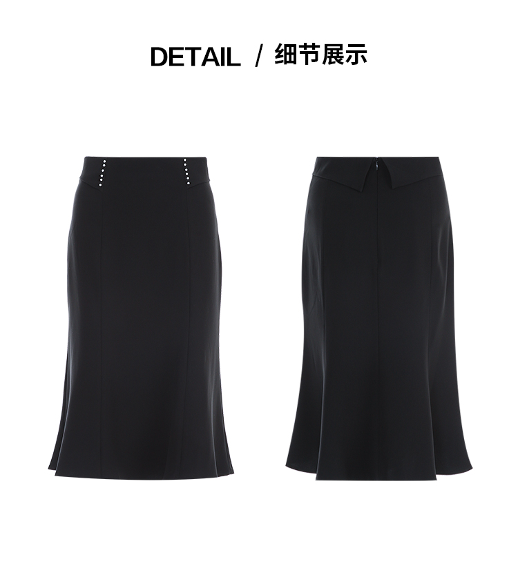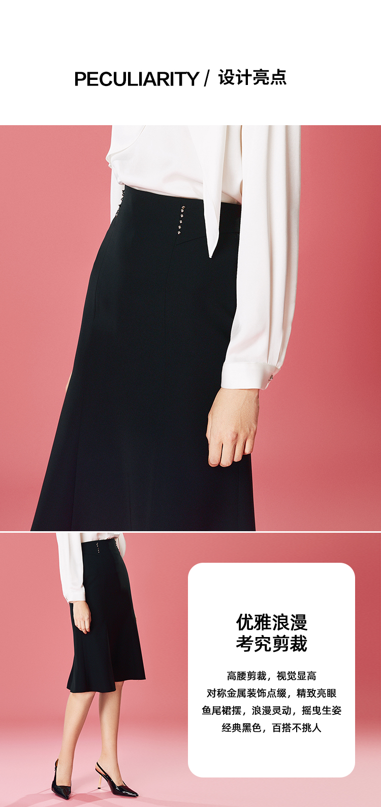 EITIE爱特爱秋季新款开叉包臀鱼尾高腰黑色显瘦优雅半身裙7906604