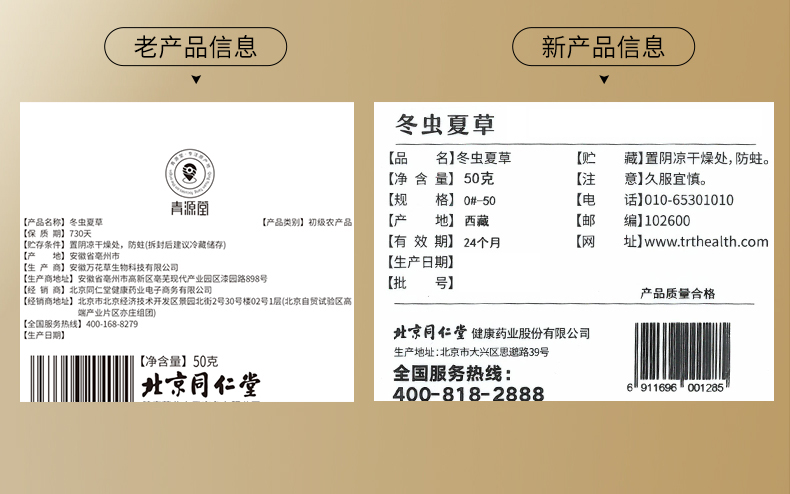 【正宗同仁堂品牌】北京同仁堂 青源堂冬虫夏草 5条/g 50克礼盒 虫草 无竹签无断草多次净制 洁净口感SY