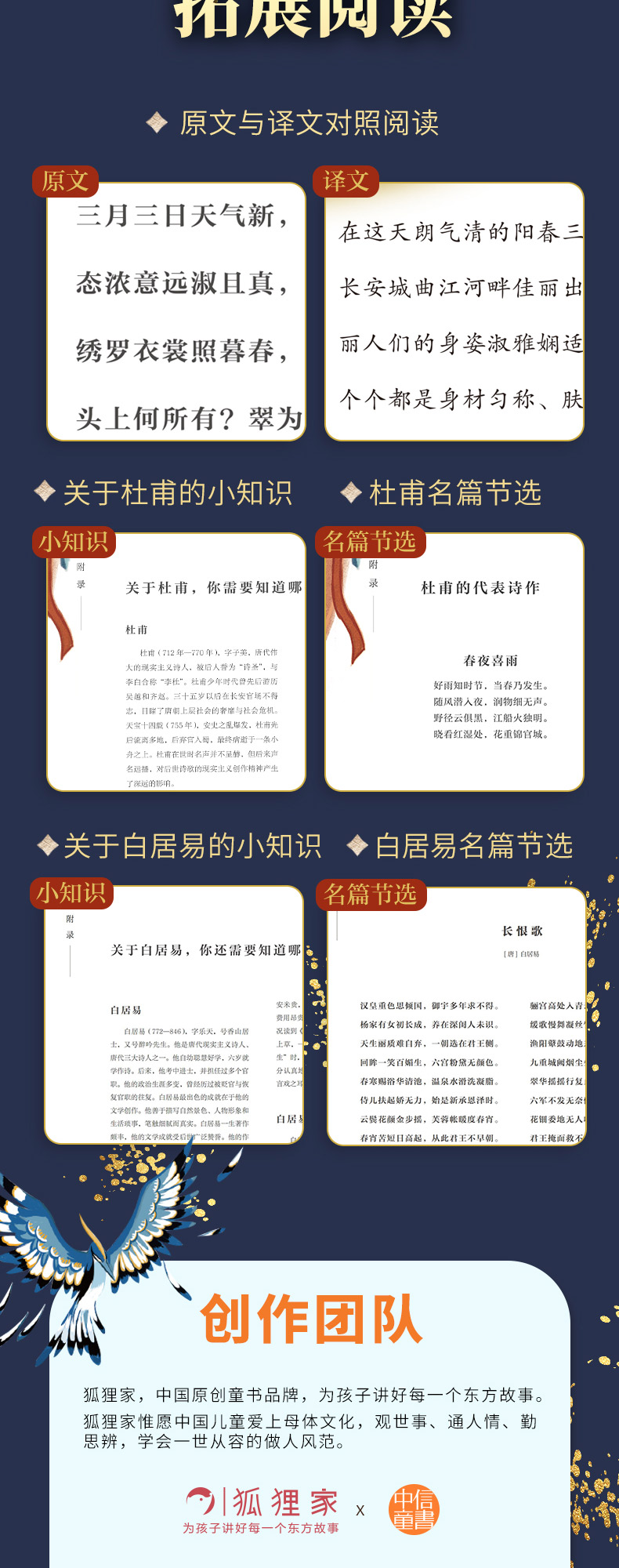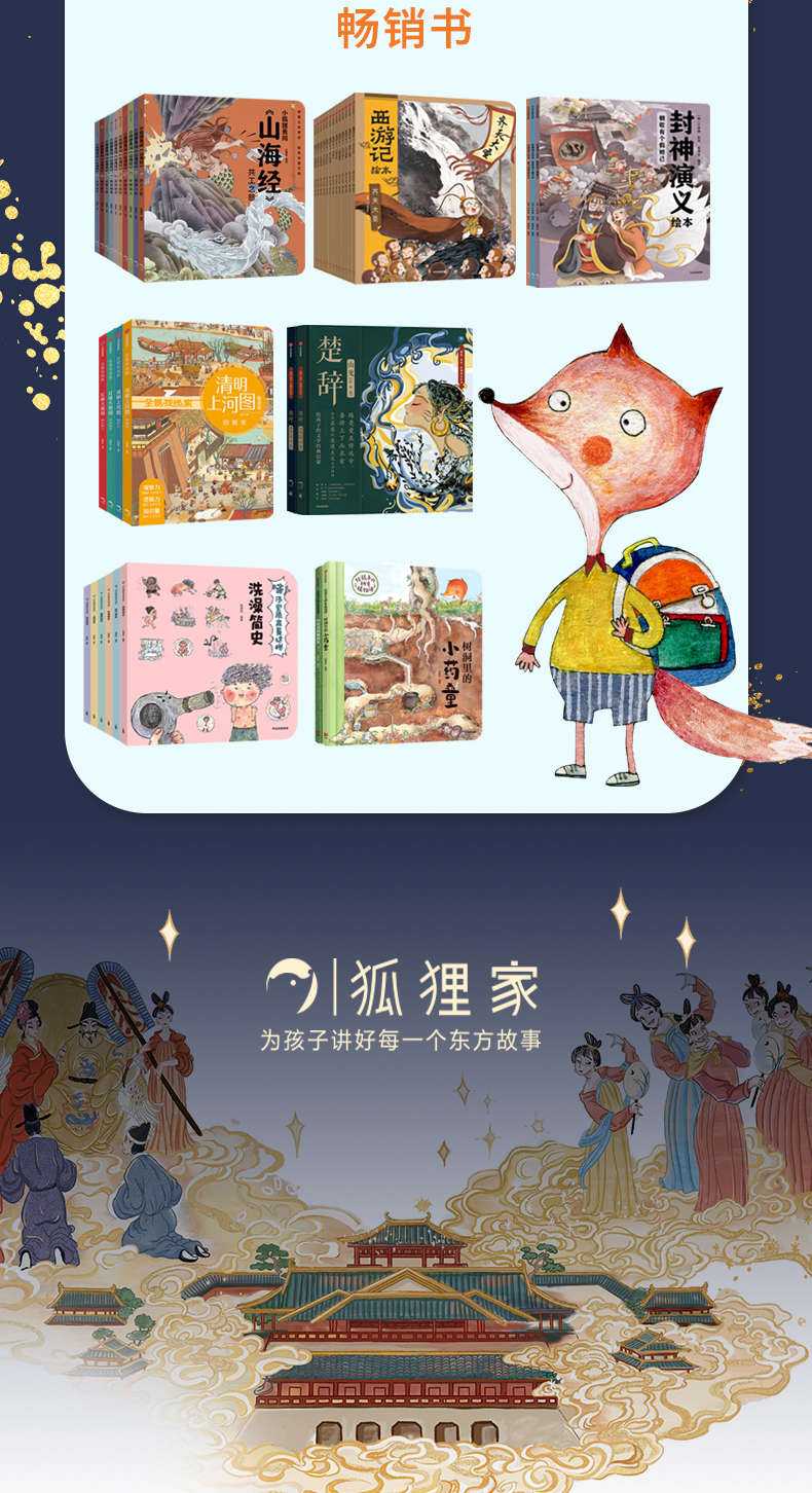 - 狐狸家专注于东方文化儿童教育,执念于“为孩子讲好每一个东方故事”。 惟愿中国儿童爱上母体文化,学会感时、惜物、得体,学会一世从容的做人风范。