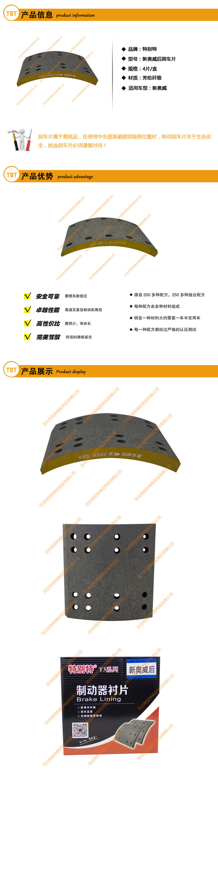 新奥威后刹车片197*200*19/9.5 192*200*19/15.5(T3) { 单价=1盒=4片 }