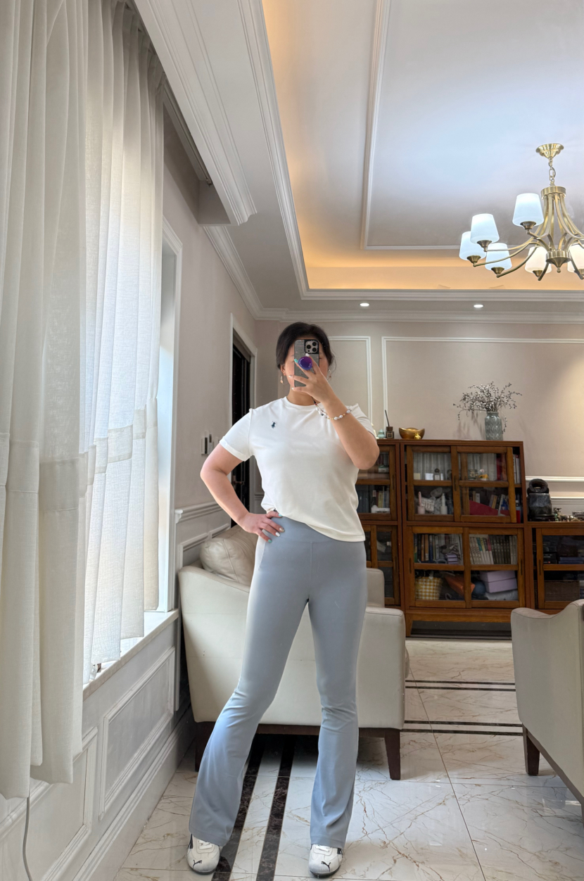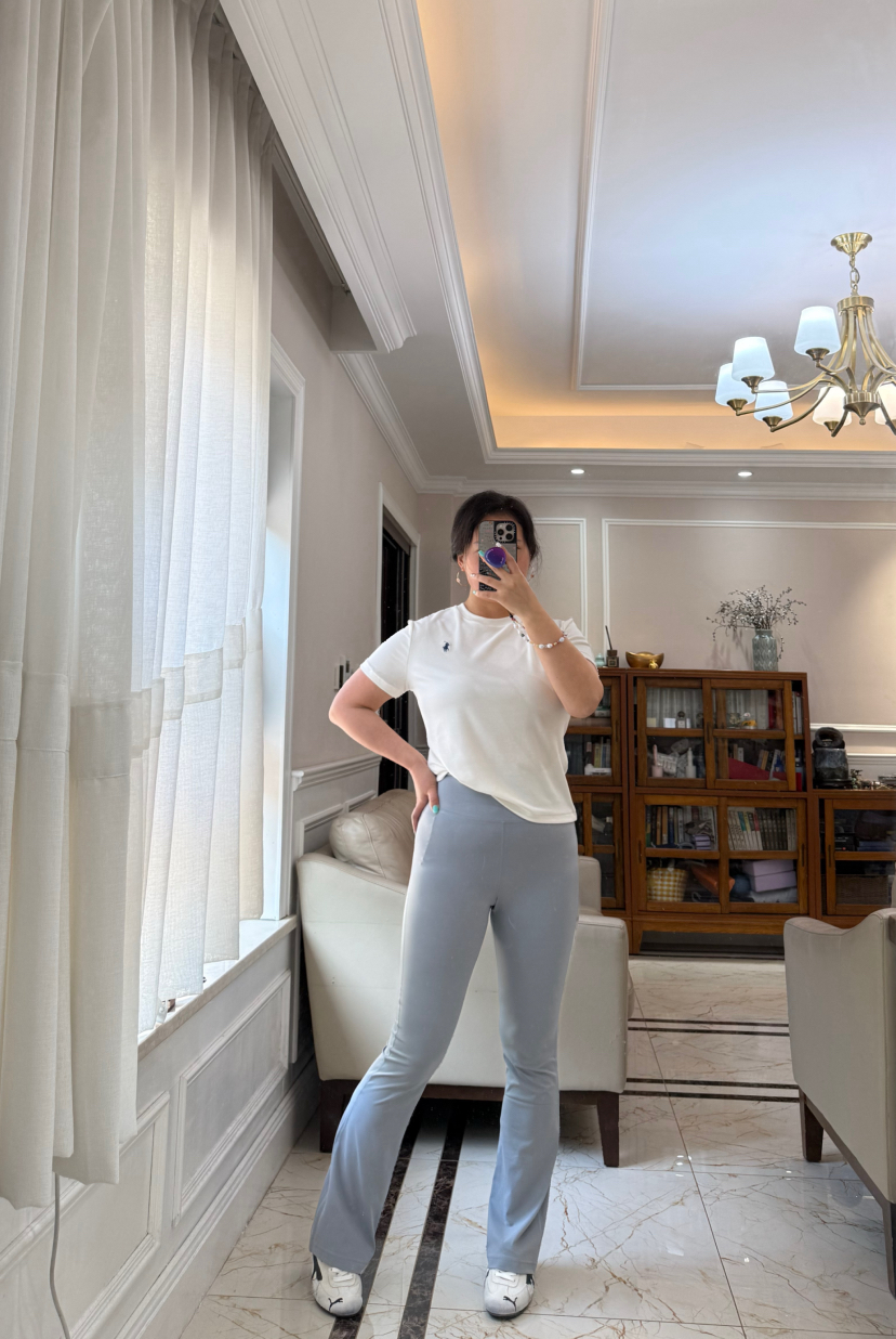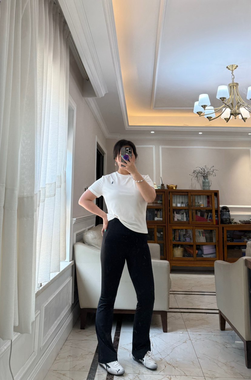 超腰高,微微喇叭亚,洲版型,不会太长薄,底鞋完全穿好,运动时的候,不会图扫。裆部,M臀,细仔看绷硼,线没有一个线条是走白的。