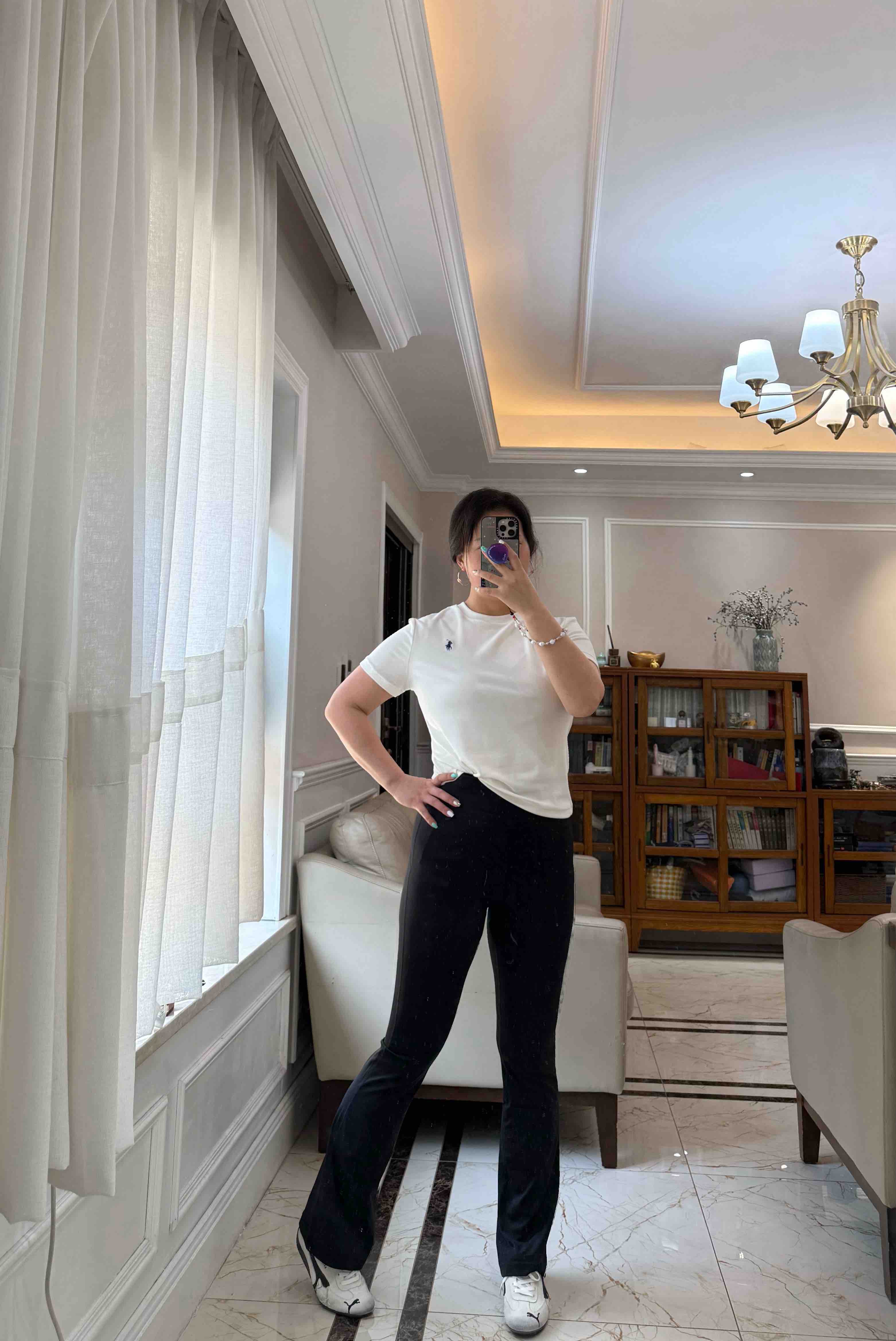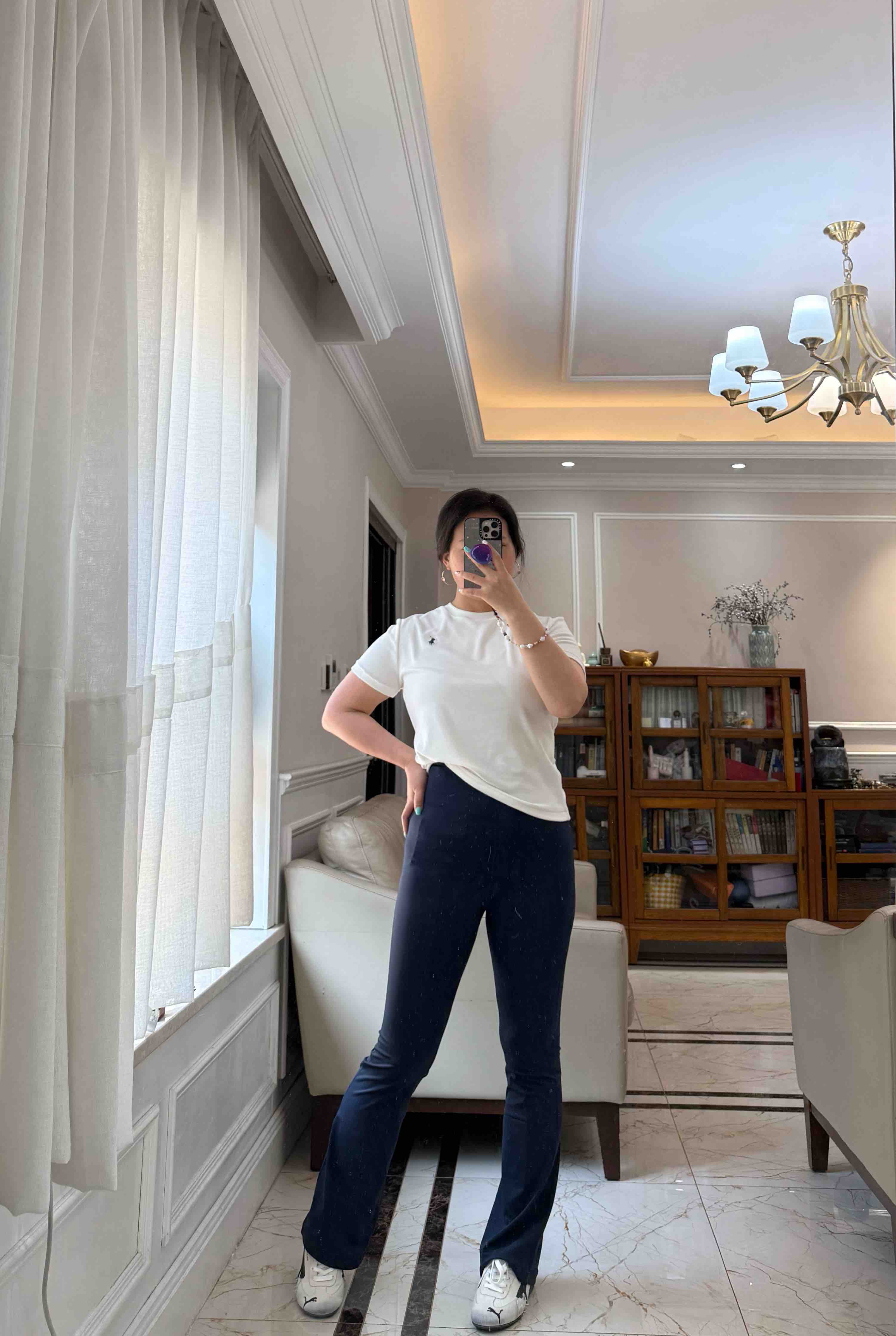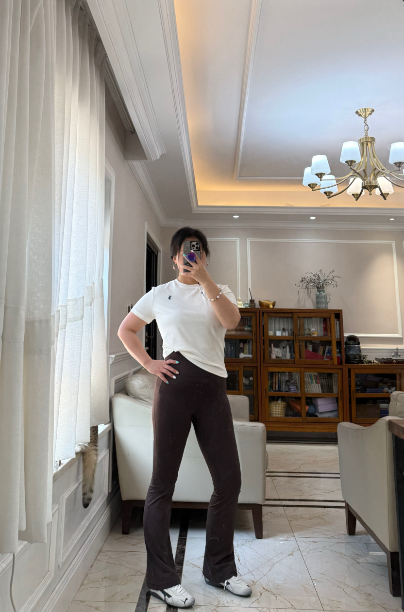 超腰高,微微喇叭亚,洲版型,不会太长薄,底鞋完全穿好,运动时的候,不会图扫。裆部,M臀,细仔看绷硼,线没有一个线条是走白的。