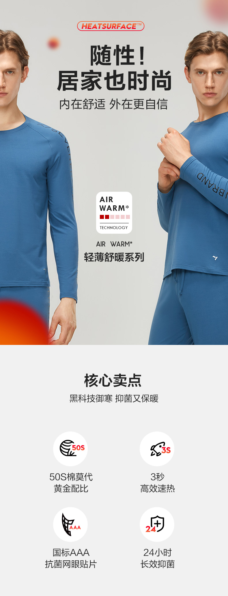 【特价】【套装】柒牌保暖内衣男士冬季秋衣裤内衣套装女打底冬装保暖套装 119F72060