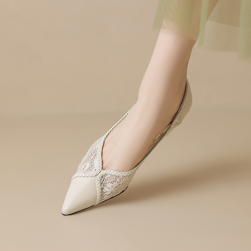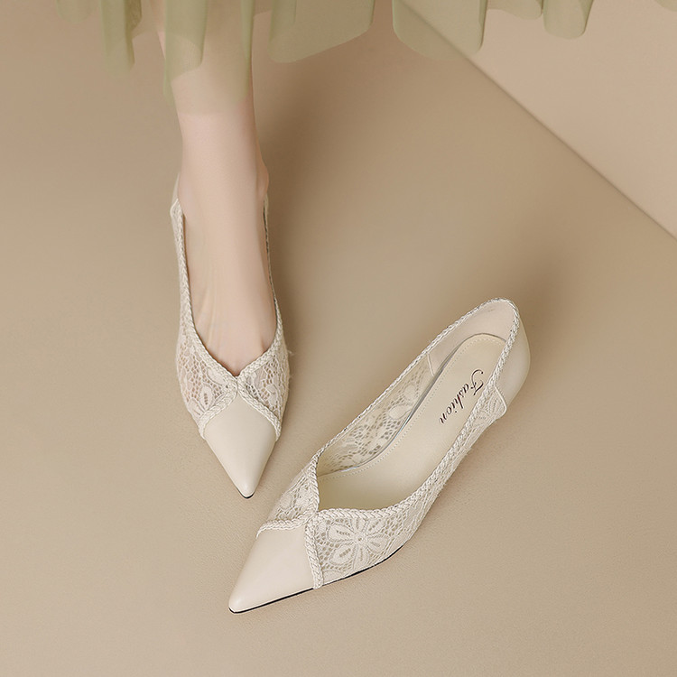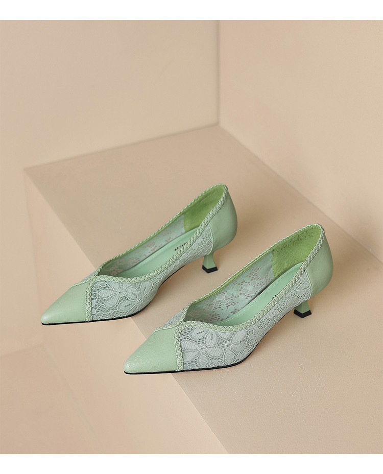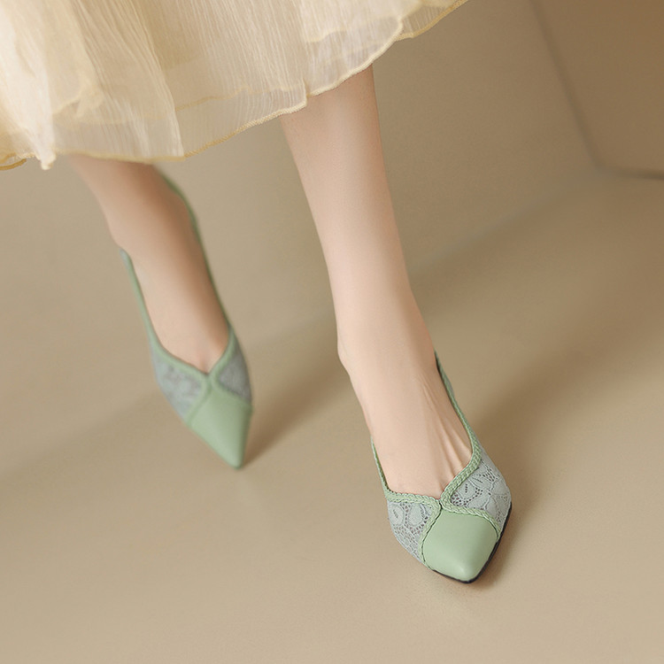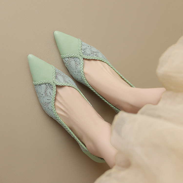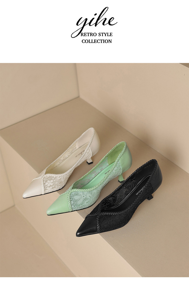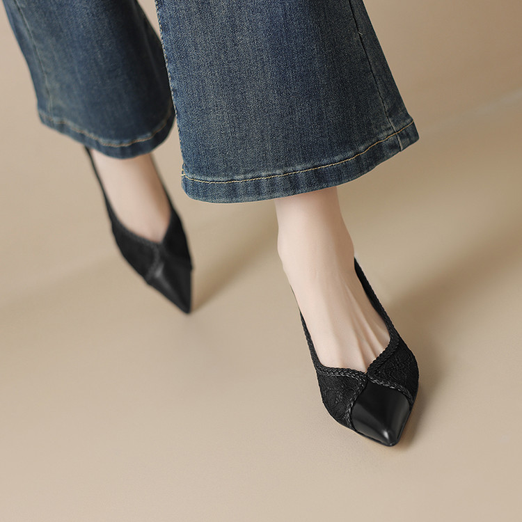 【预售5天】春秋羊反绒低跟鞋女气质浅口尖头细跟配裙子单鞋YS&0216