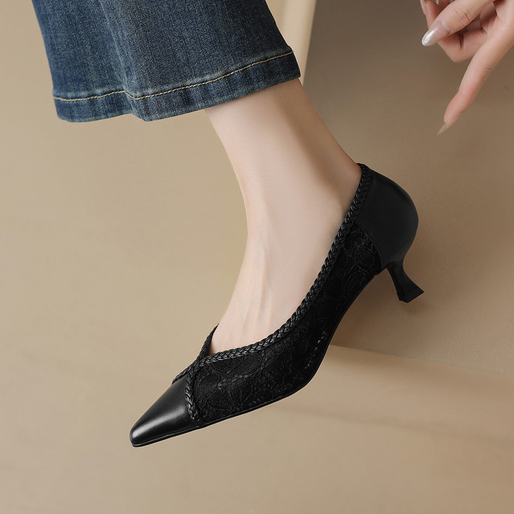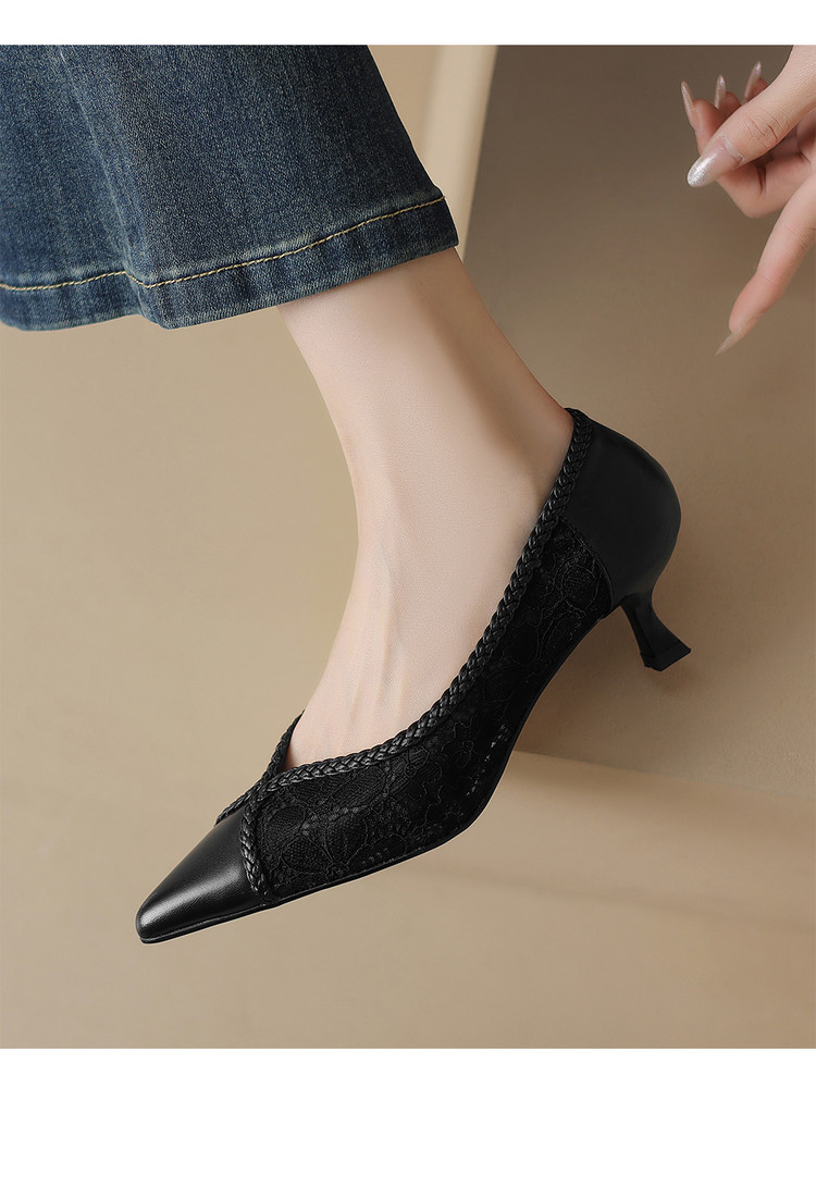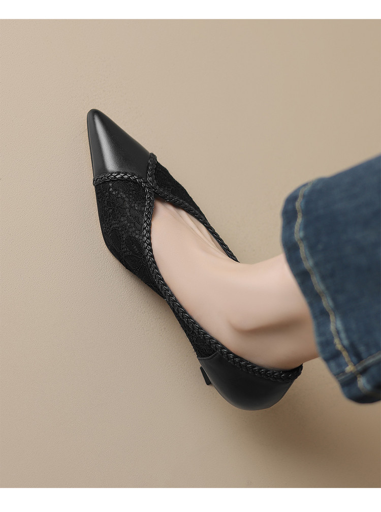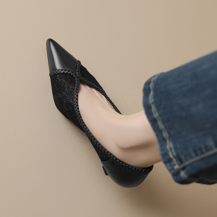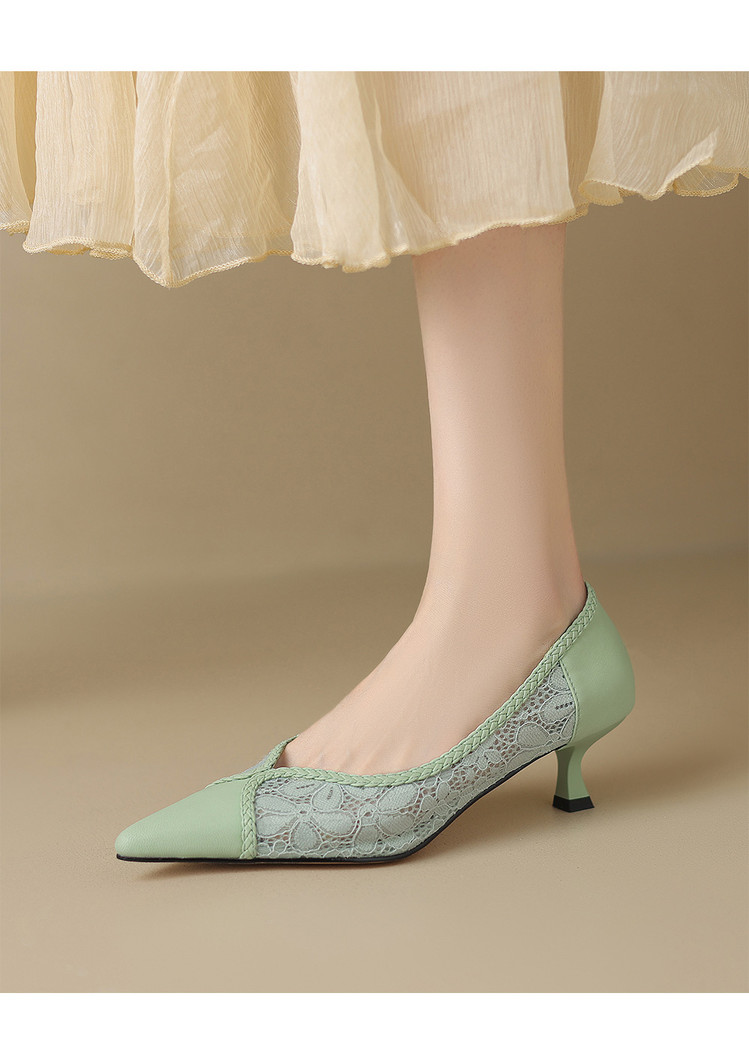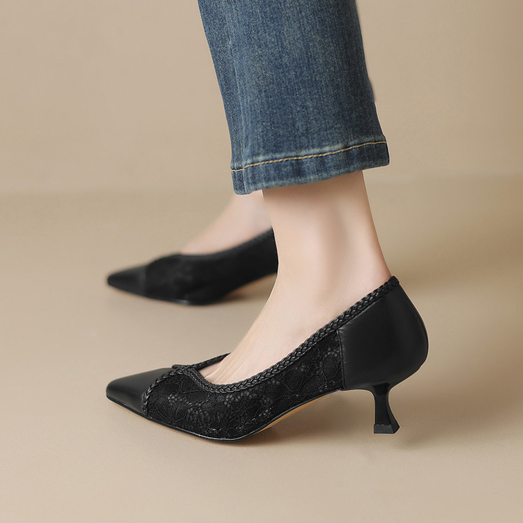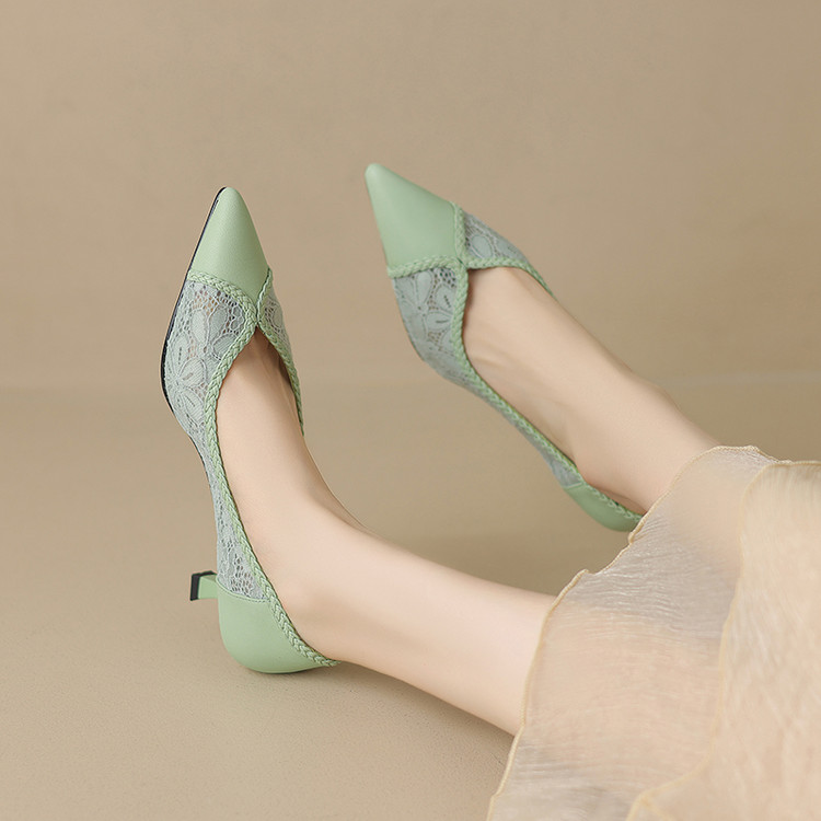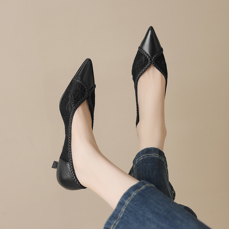 【预售5天】春秋羊反绒低跟鞋女气质浅口尖头细跟配裙子单鞋YS&0216