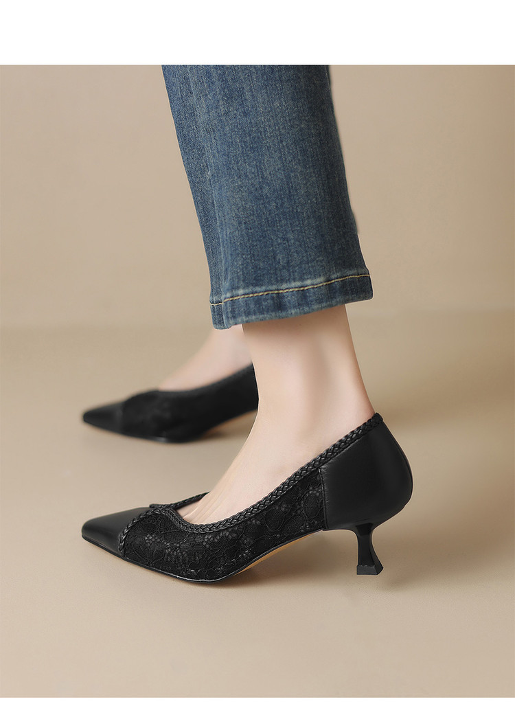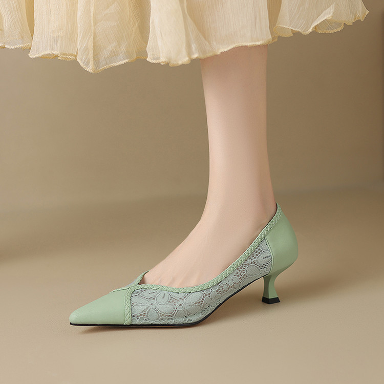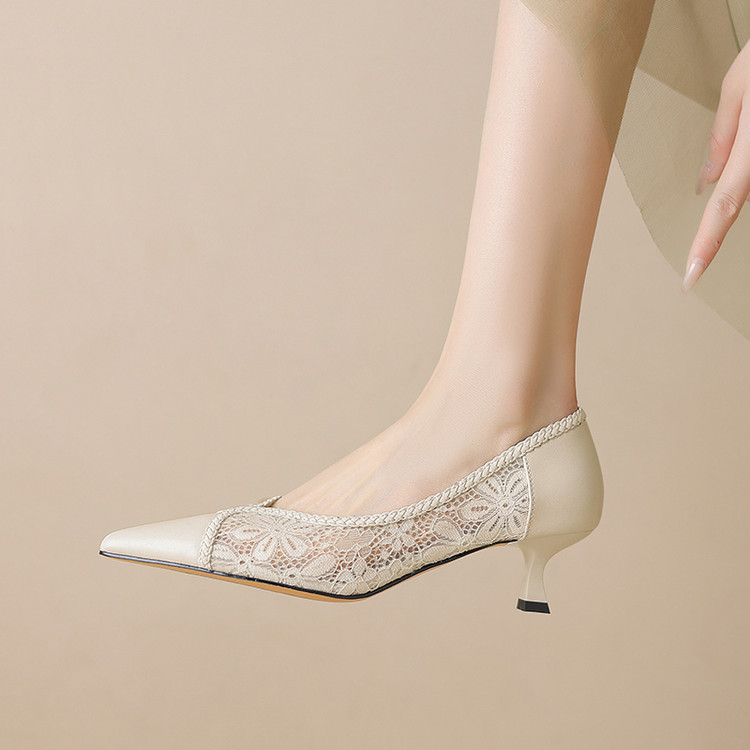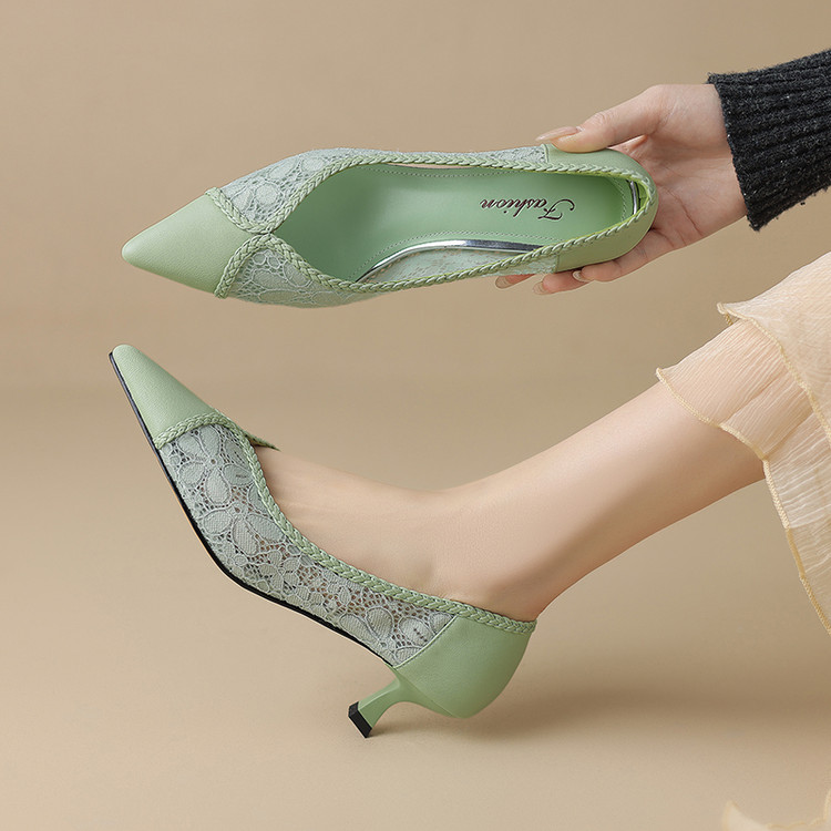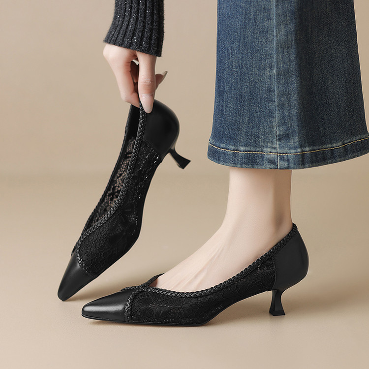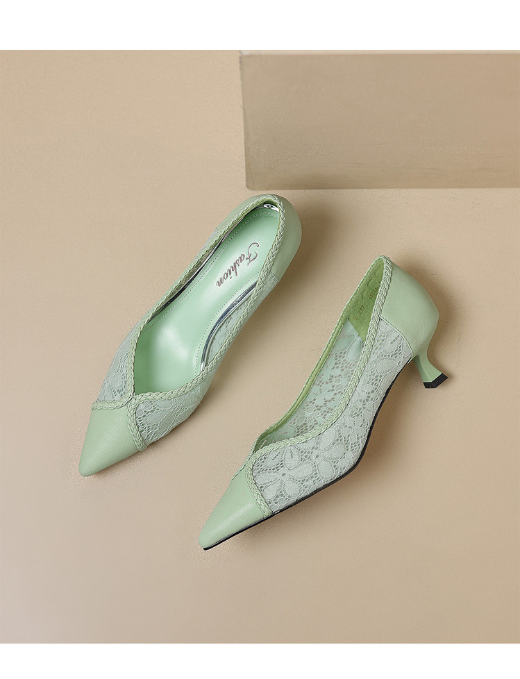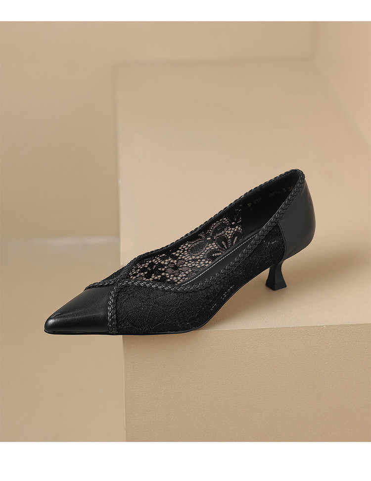 【预售5天】春秋羊反绒低跟鞋女气质浅口尖头细跟配裙子单鞋YS&0216