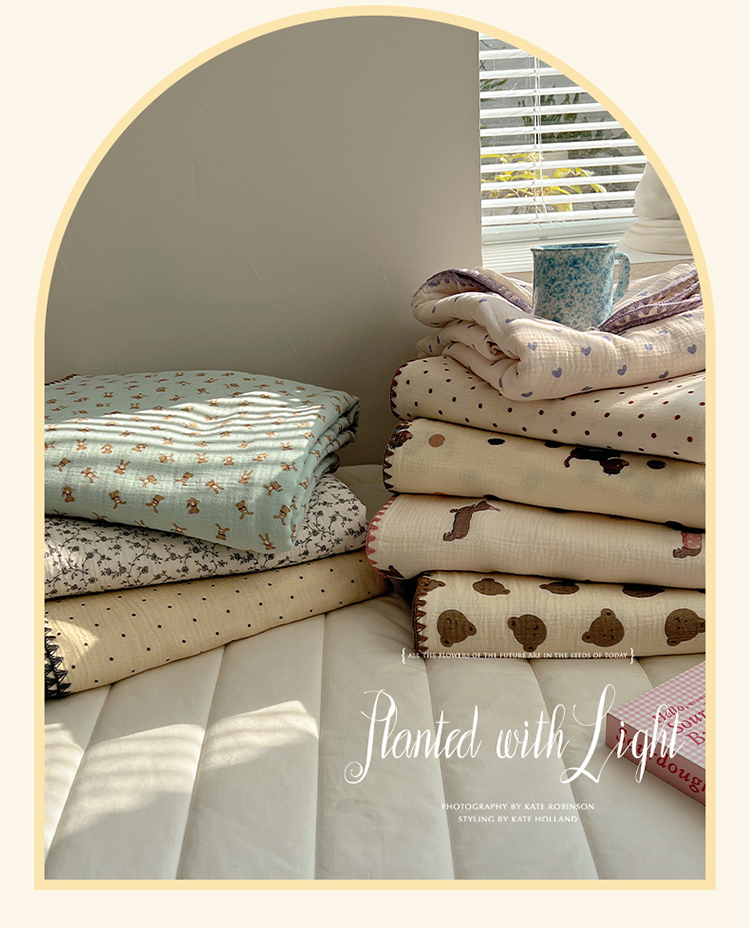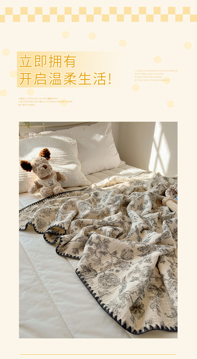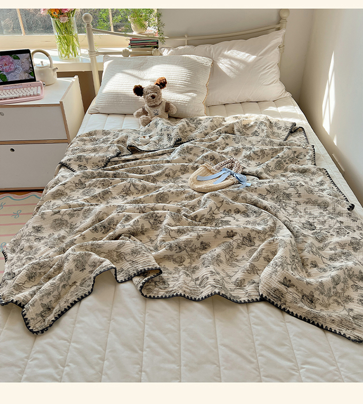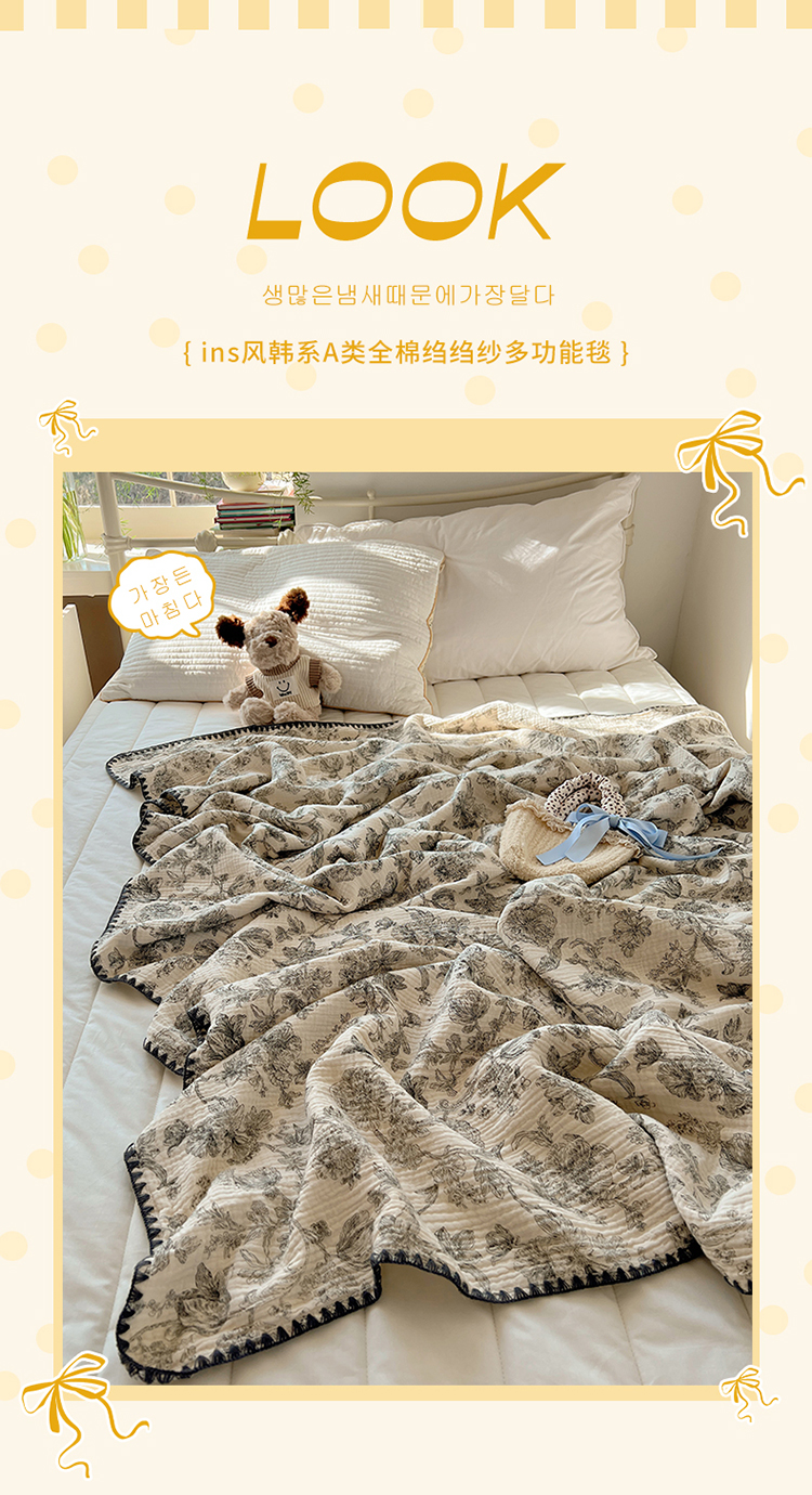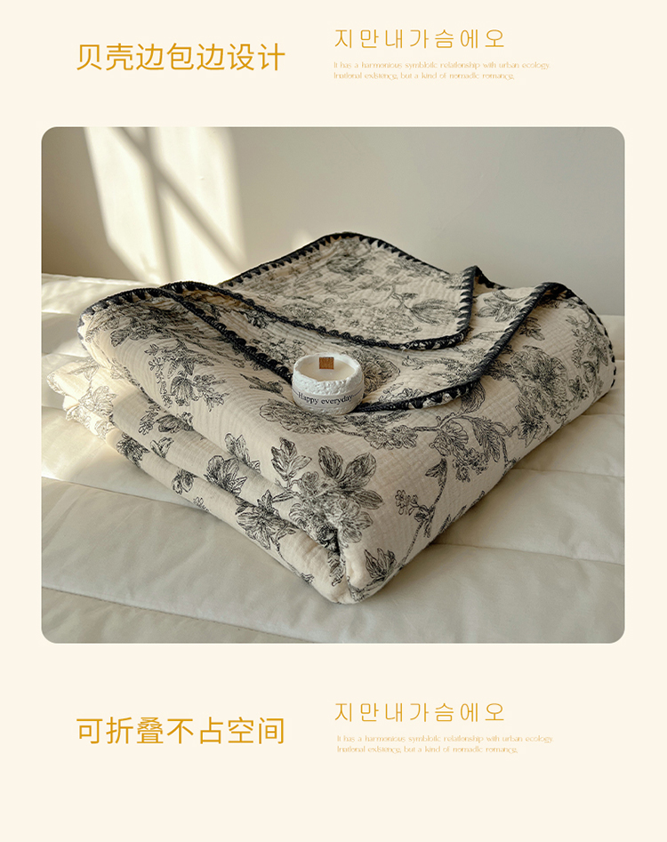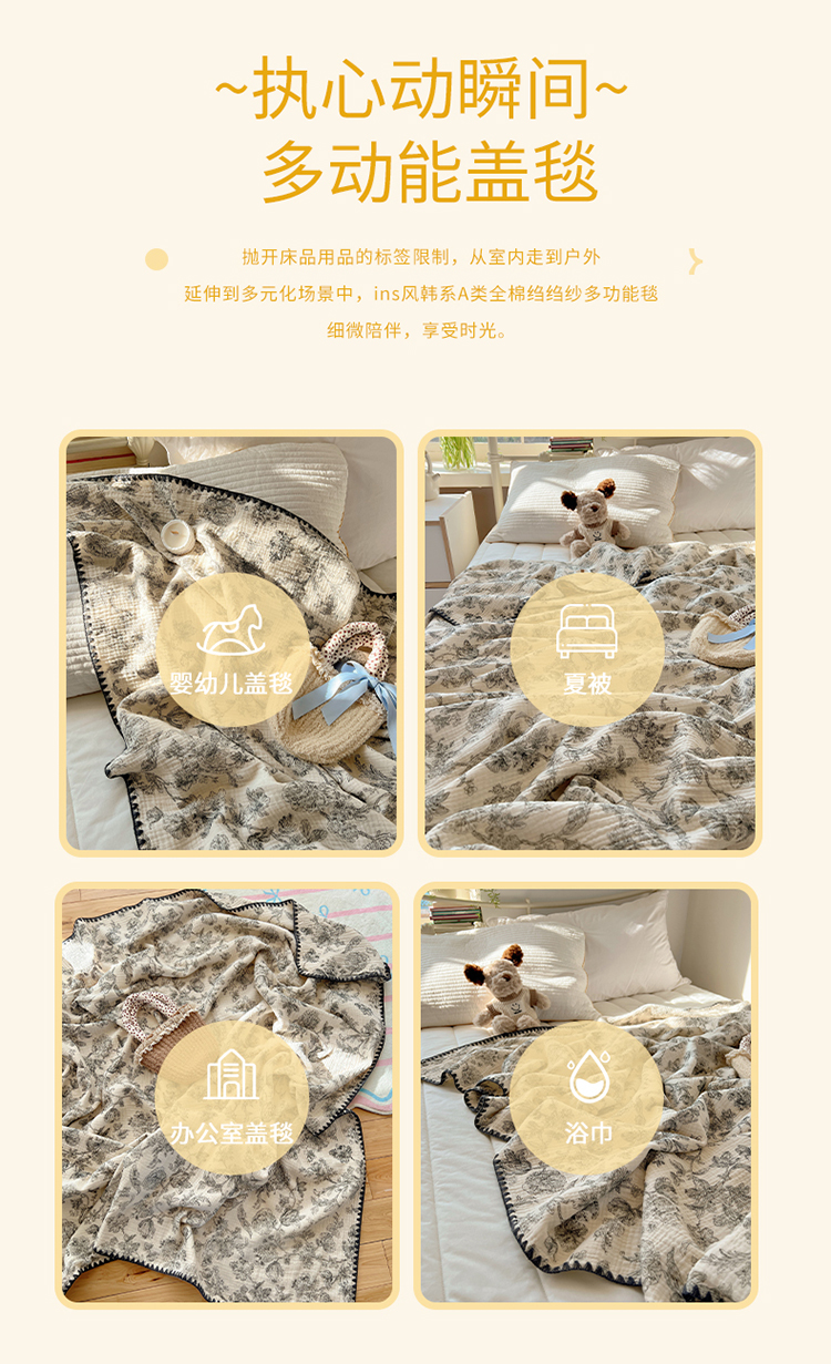 全棉绉绉纱毛巾被夏季办公室午休午睡毛毯空调小毯子沙发盖毯