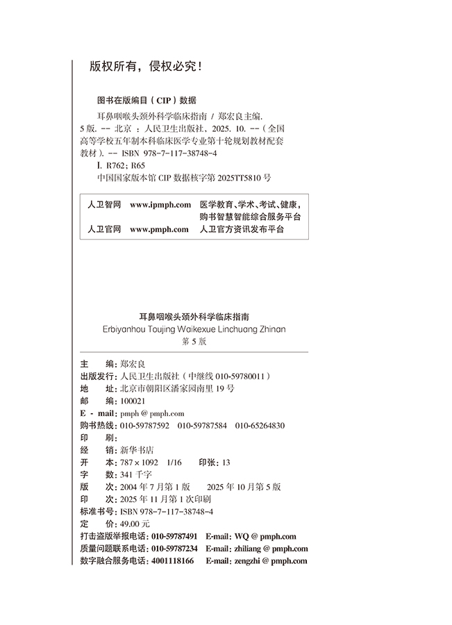 耳鼻咽喉头颈外科学临床指南 第5五版 十四五规划教材配套教材全国高等学校配套教材 郑宏良 供基础临床预防类专业用人民卫生出版社