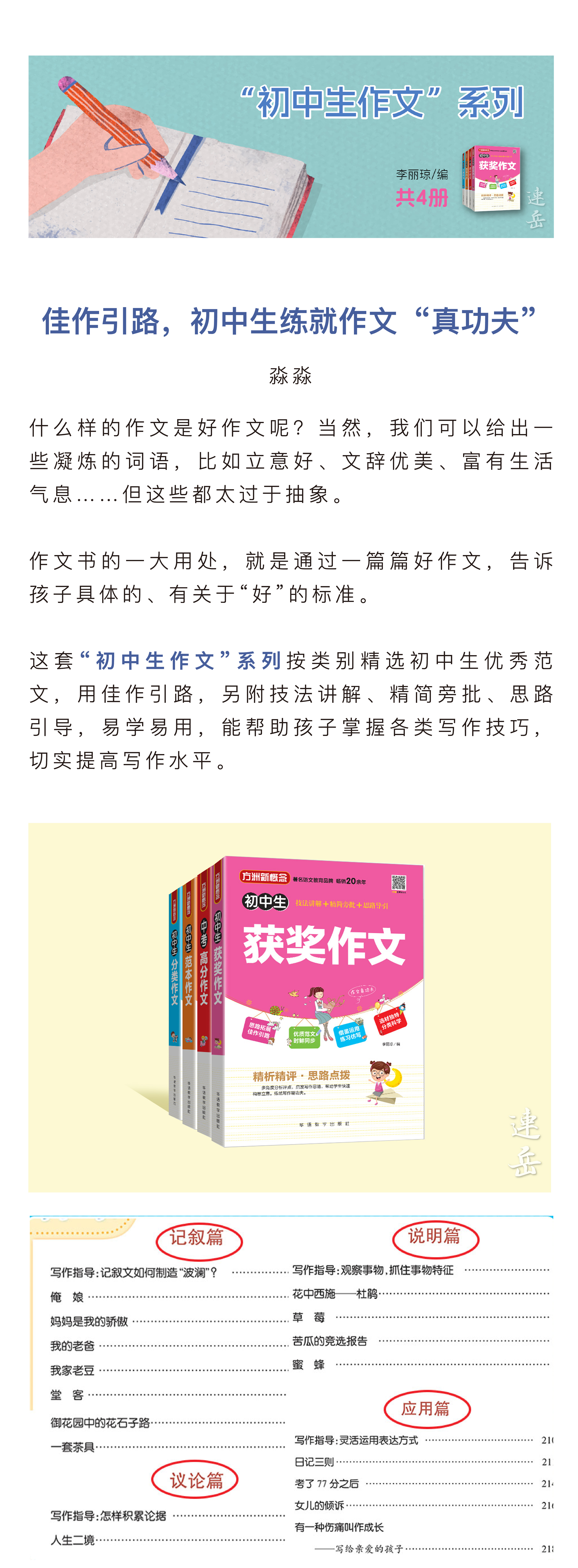 “初中生作文”系列(共4册):《初中生分类作文》《初中生获奖作文》《初中生范本作文》《中考高分作文》