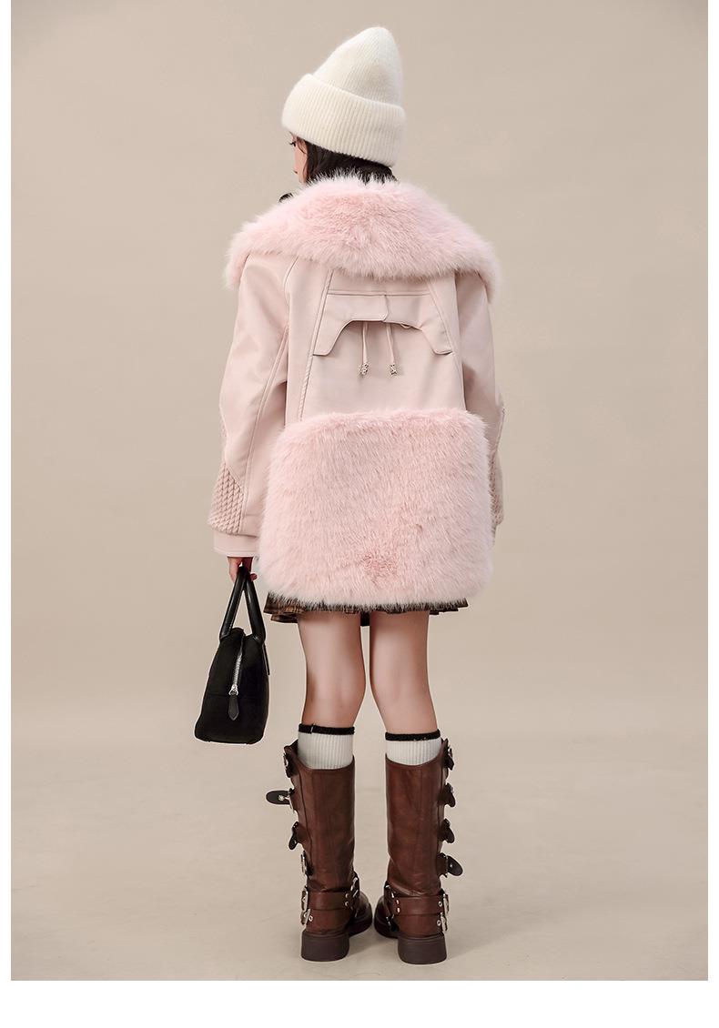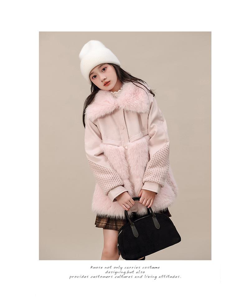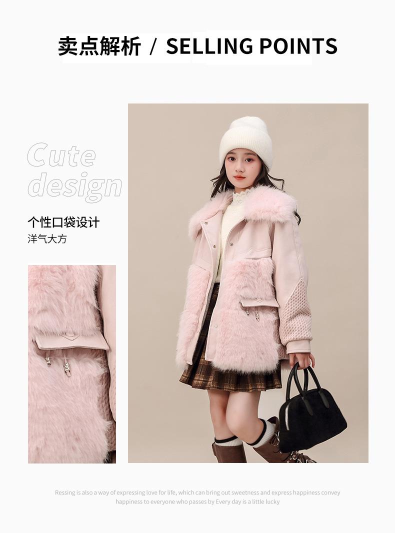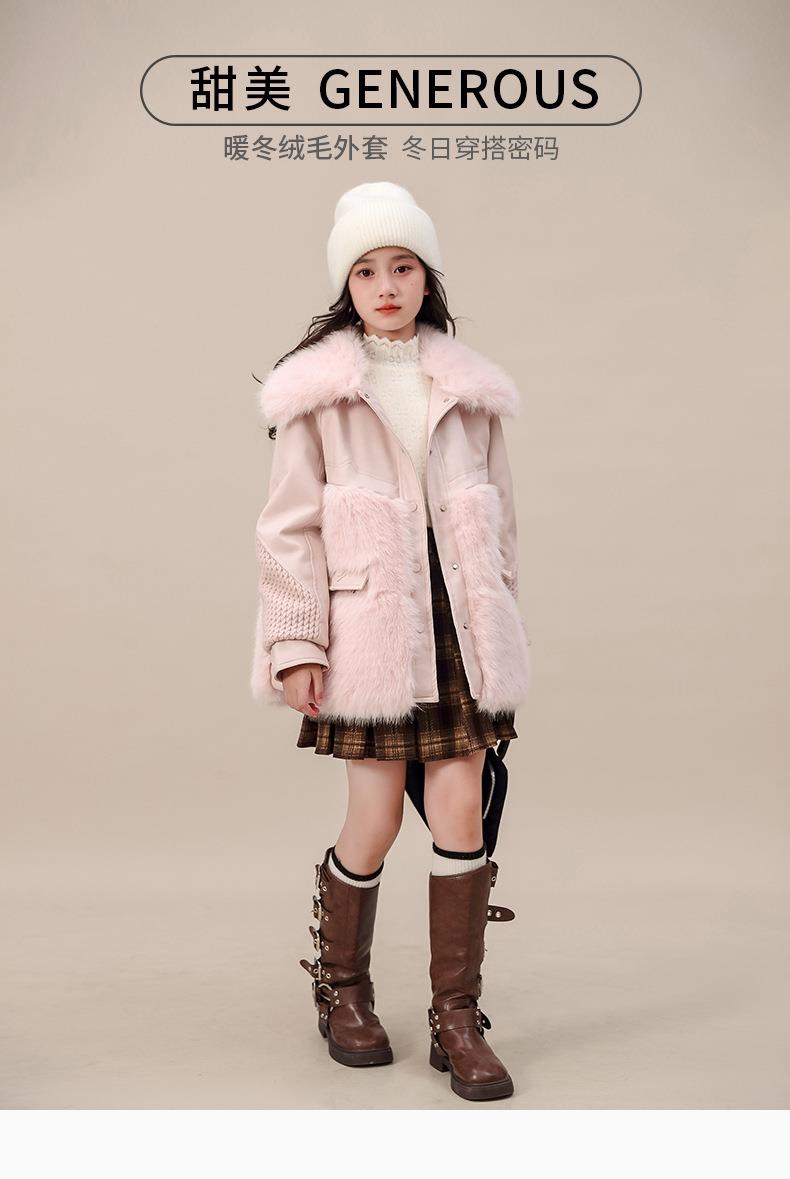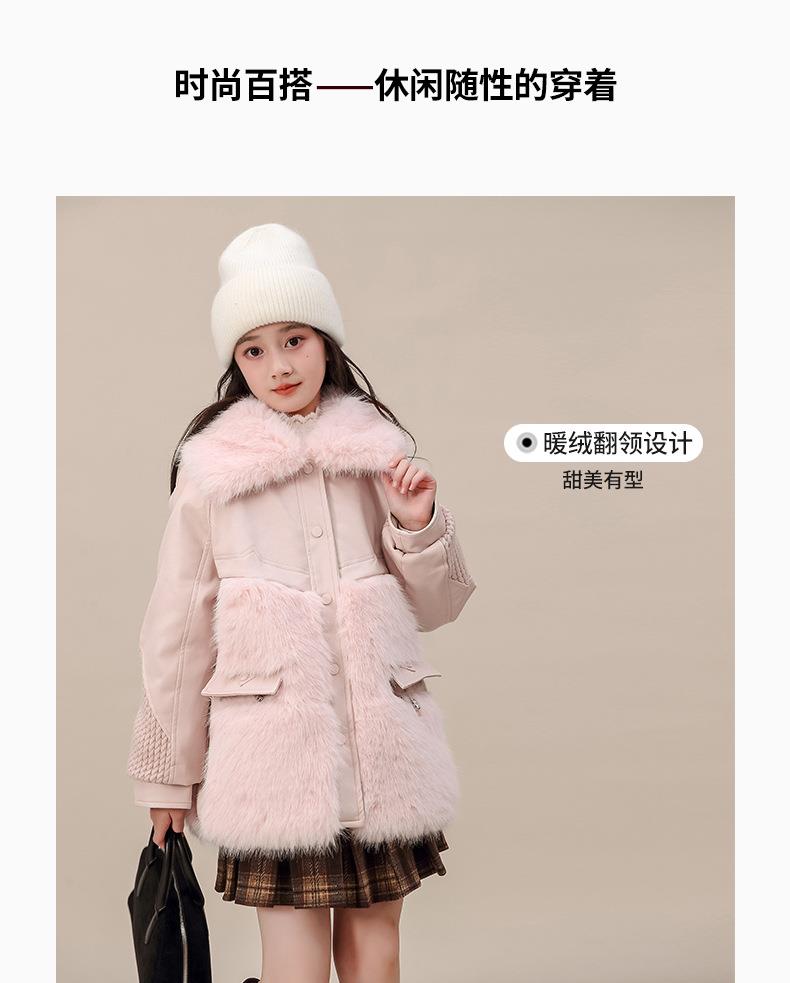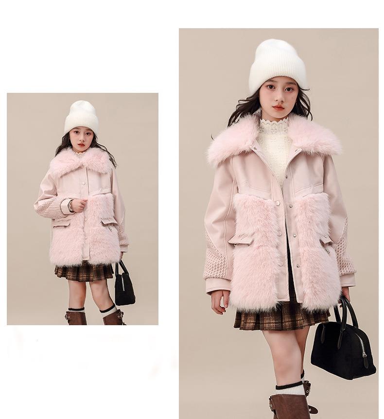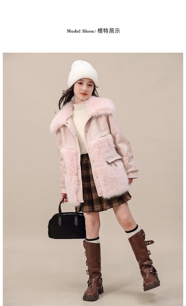外套冬装皮衣中大童新款女童2025加厚夹棉翻领毛毛洋气大衣中长款