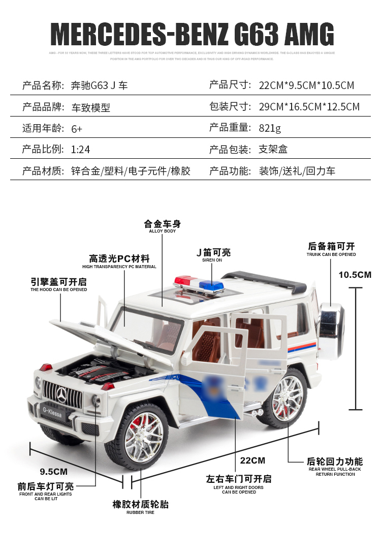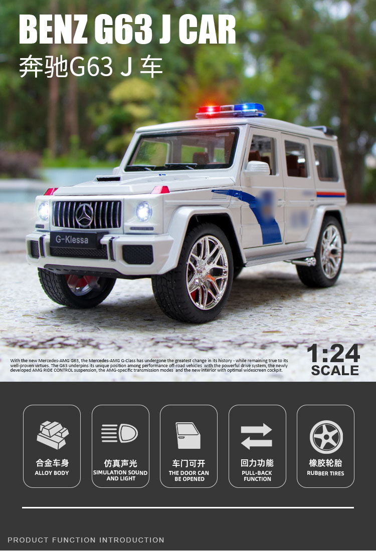 【实付满199送钥匙扣】【1:24奔驰G63J车】合金汽车模型摆件儿童玩具车礼盒装仿真车模