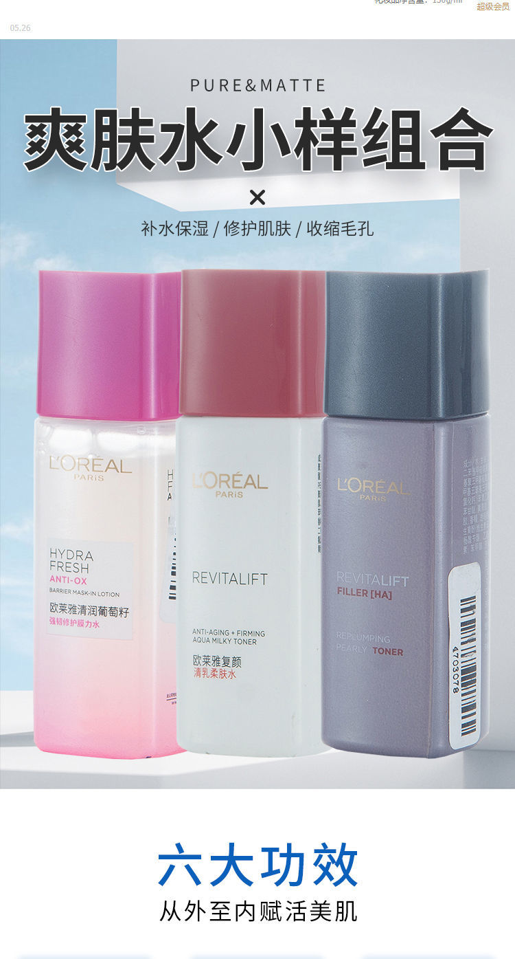 【爆款超低价预售 急单慎拍】欧莱雅葡萄籽玻尿酸视黄醇爽肤水精华水女男收缩毛孔化妆保湿补水