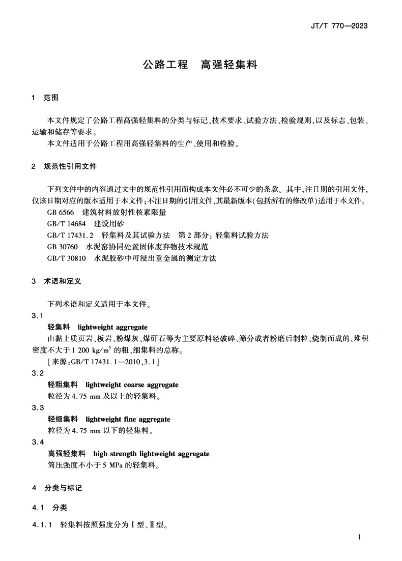书名:公路工程 高强轻集料(JT/T 770—2023)