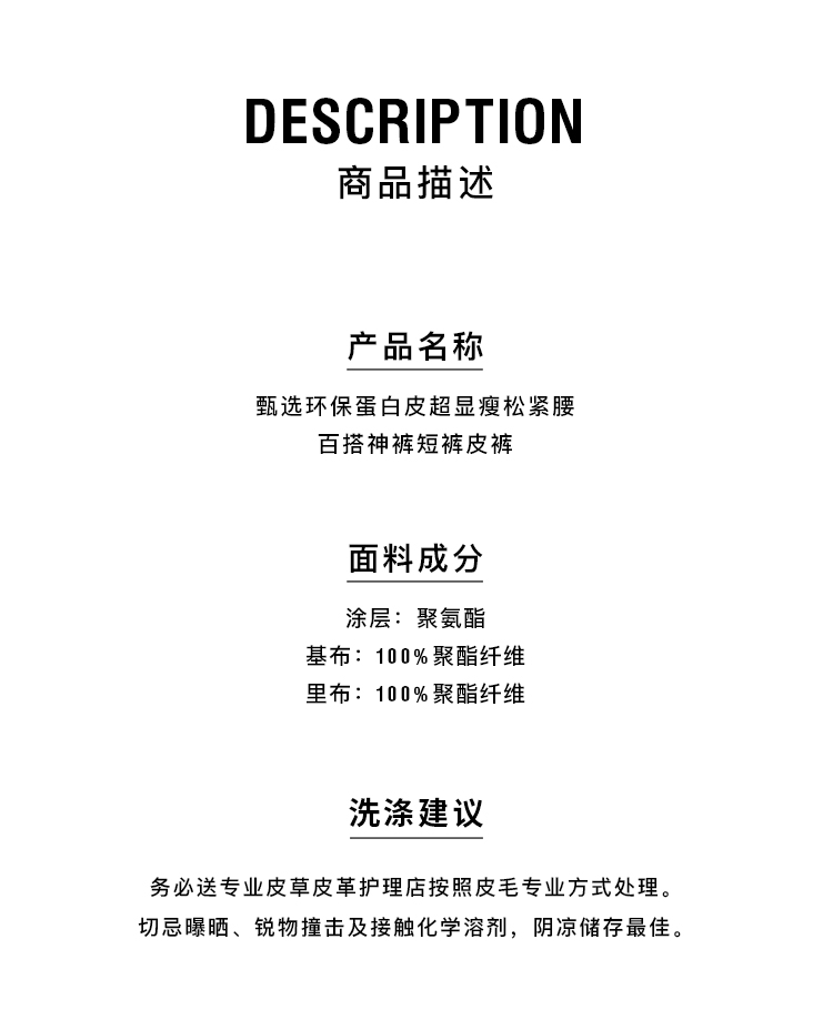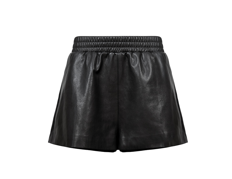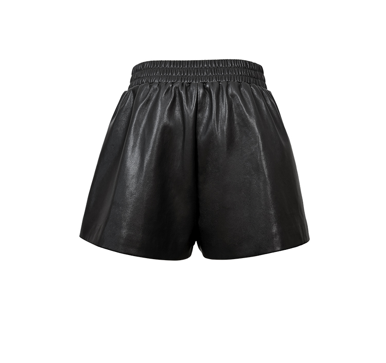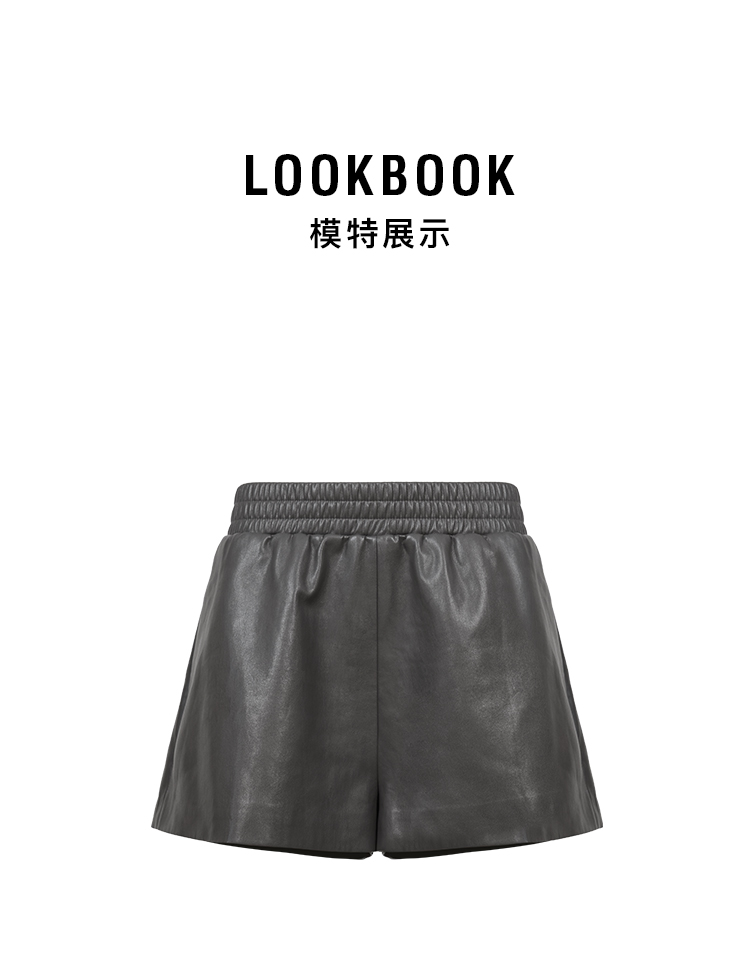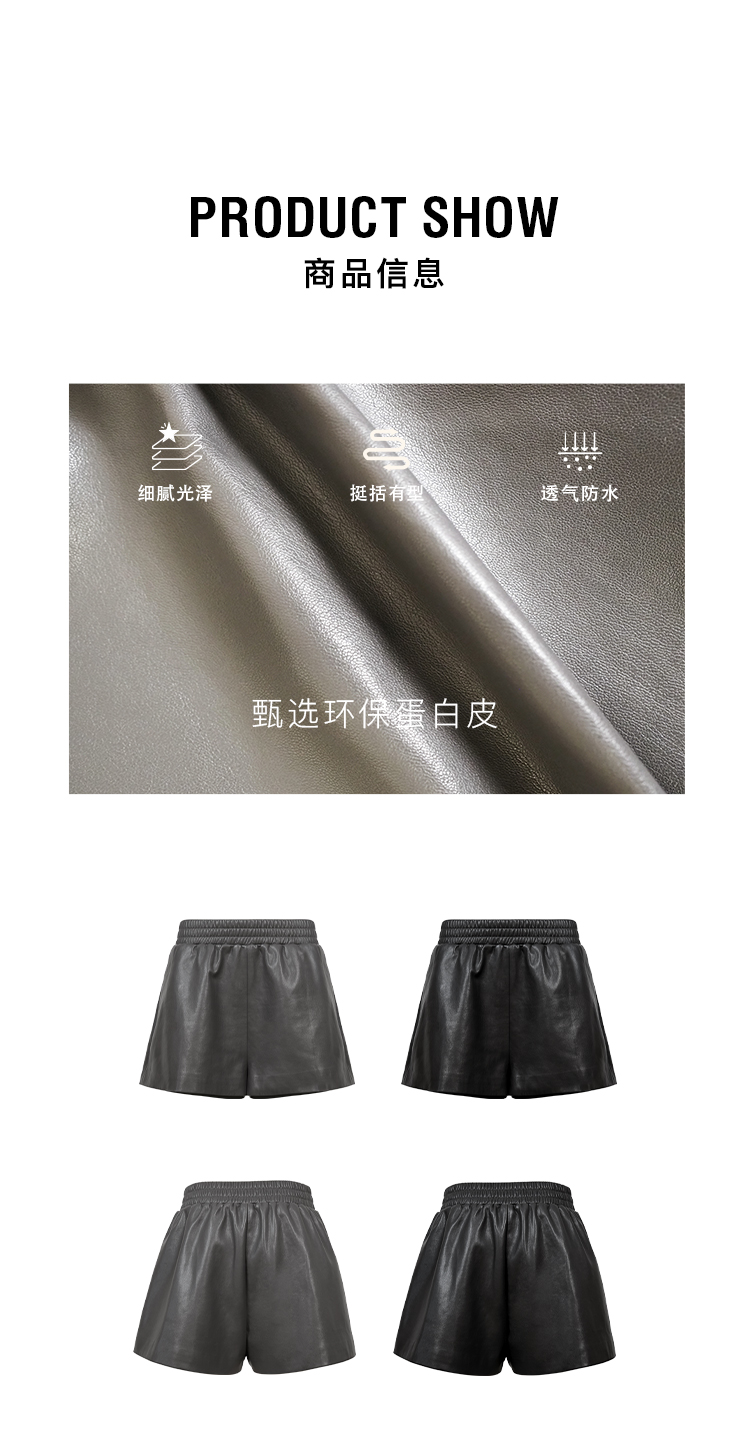 HIDEMI 甄选环保蛋白皮超显瘦松紧腰百搭神裤短裤皮裤 黑色/灰色