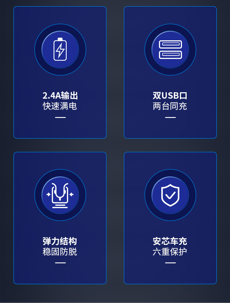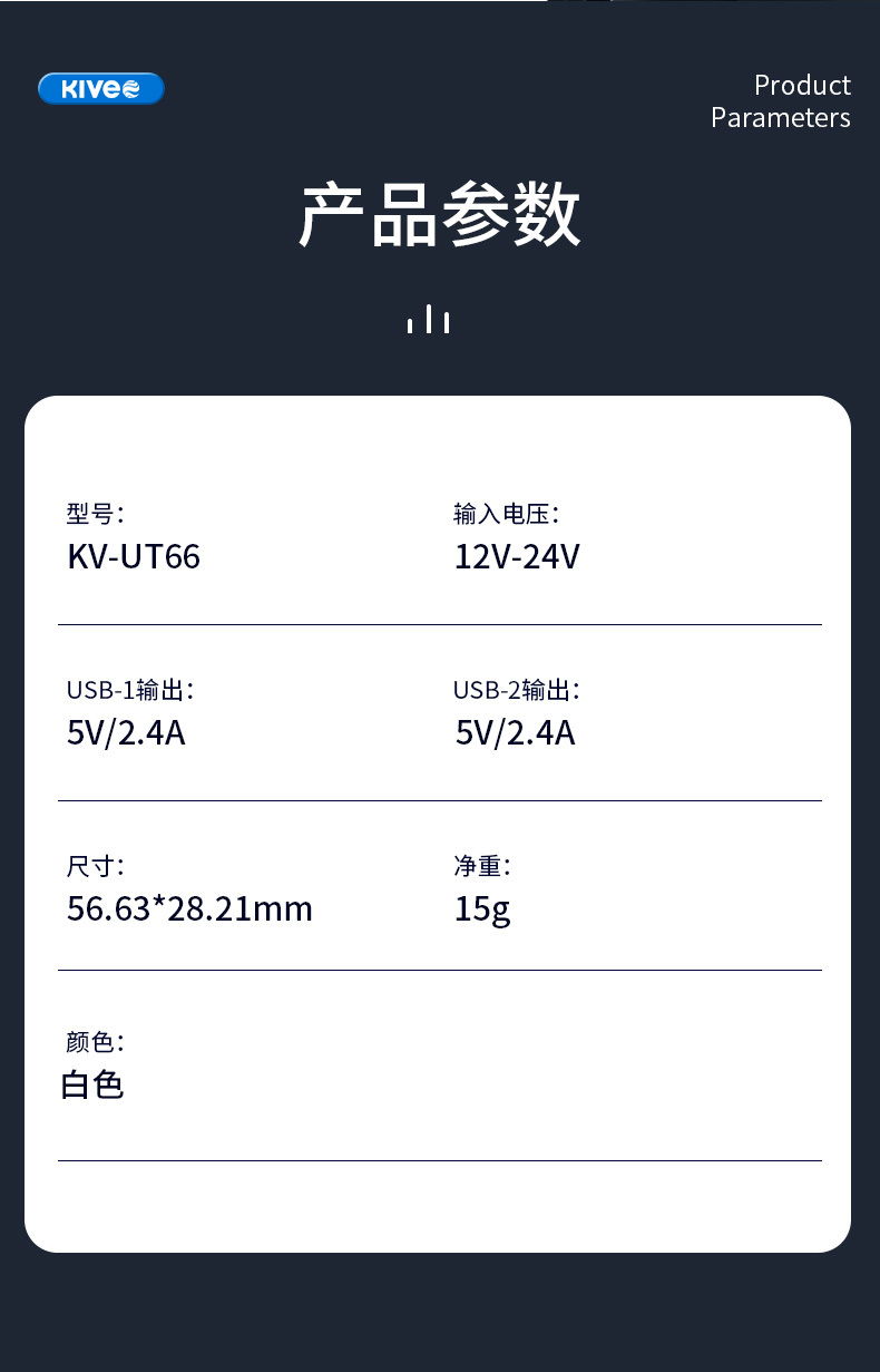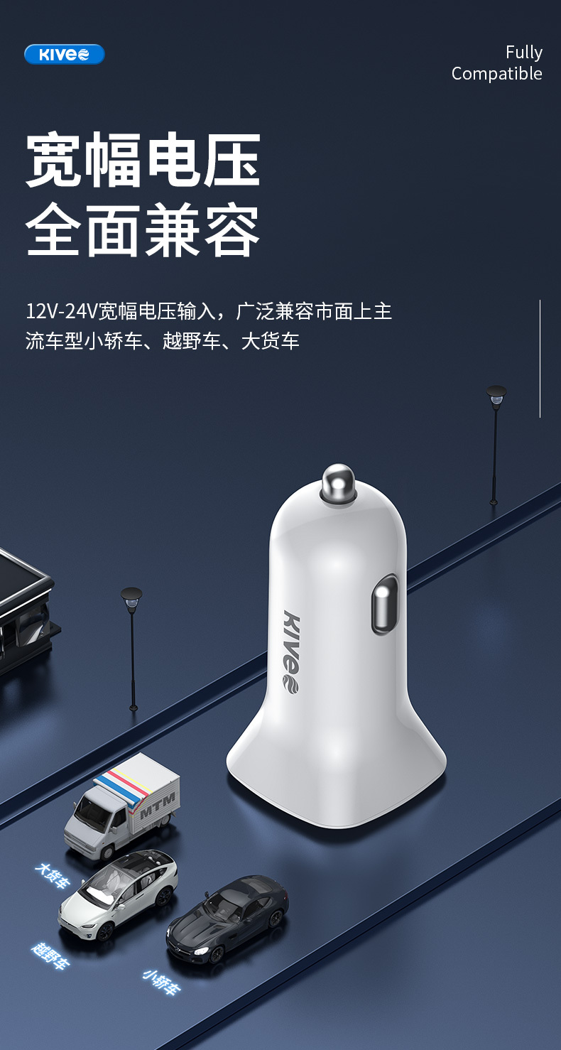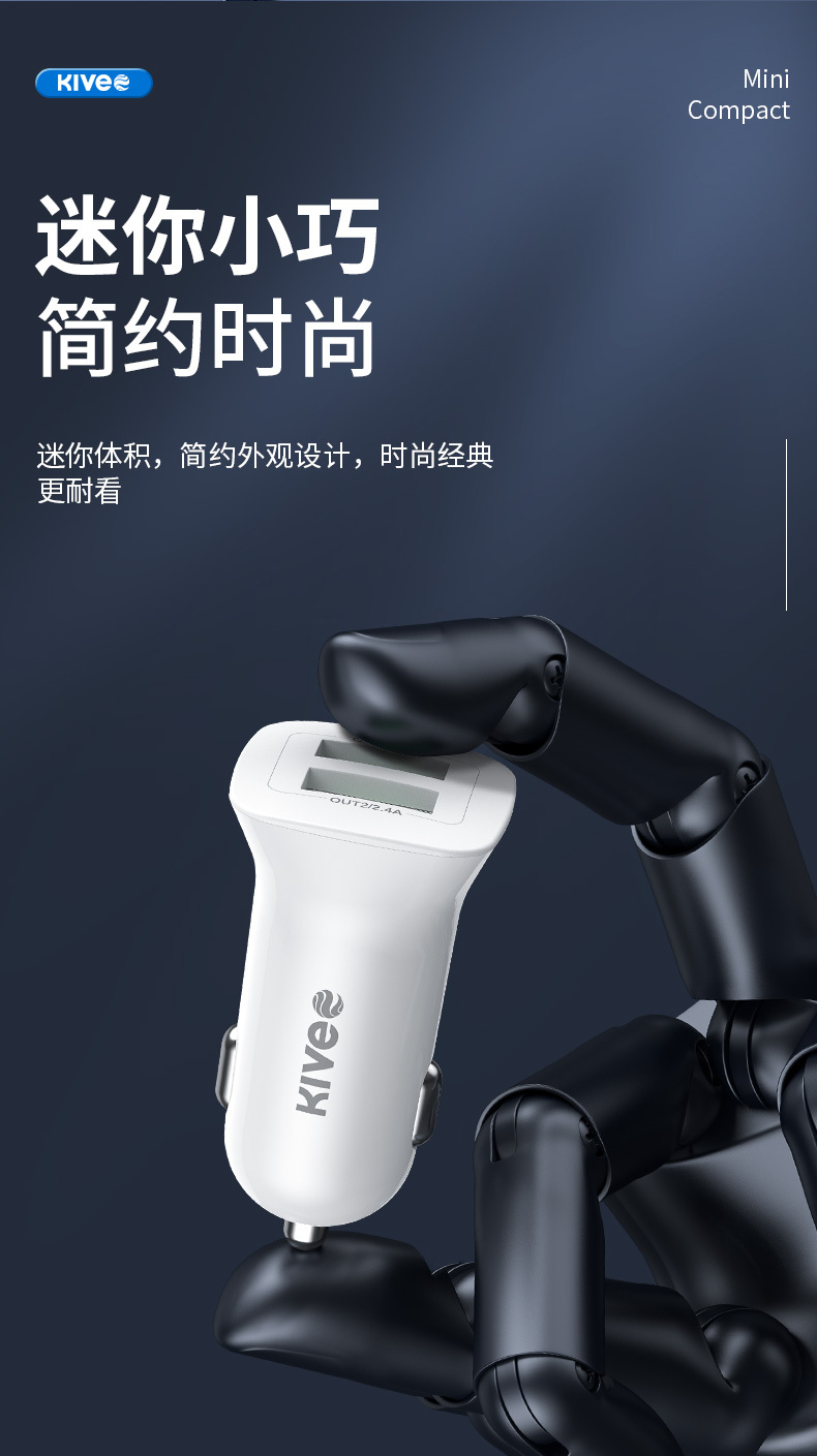 KIVEE车载充电器一拖二多功能通用USB车充汽车点烟器插头2.4A 双usb口 白色