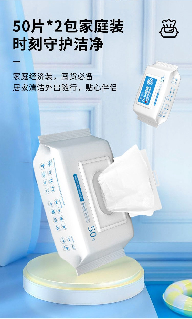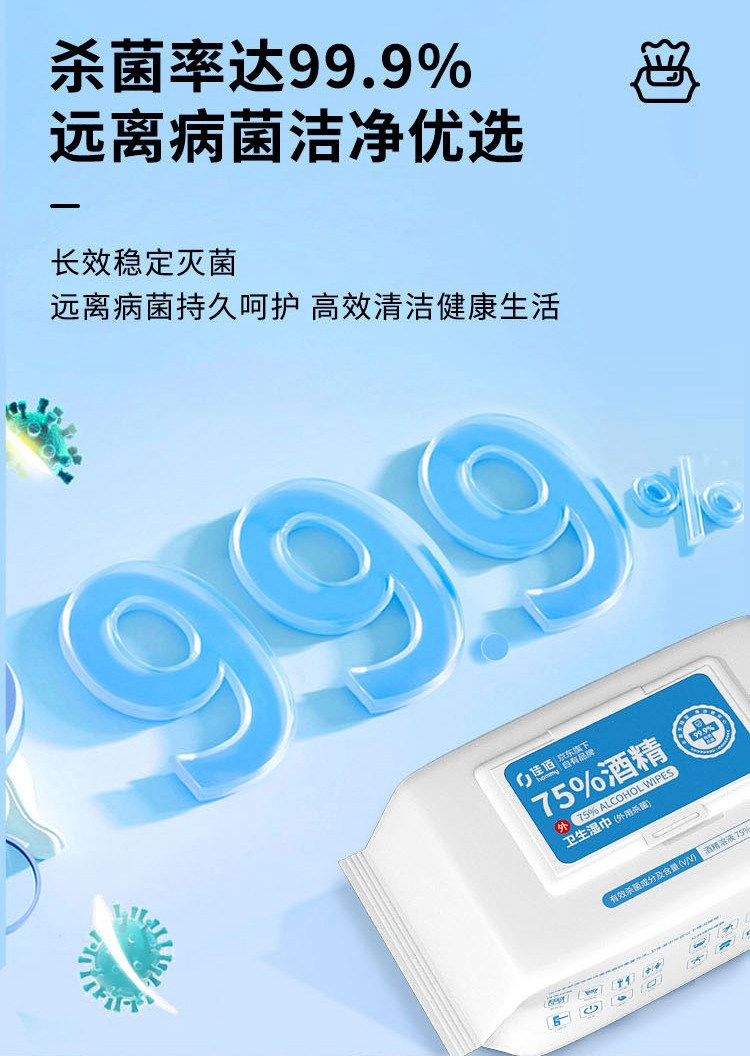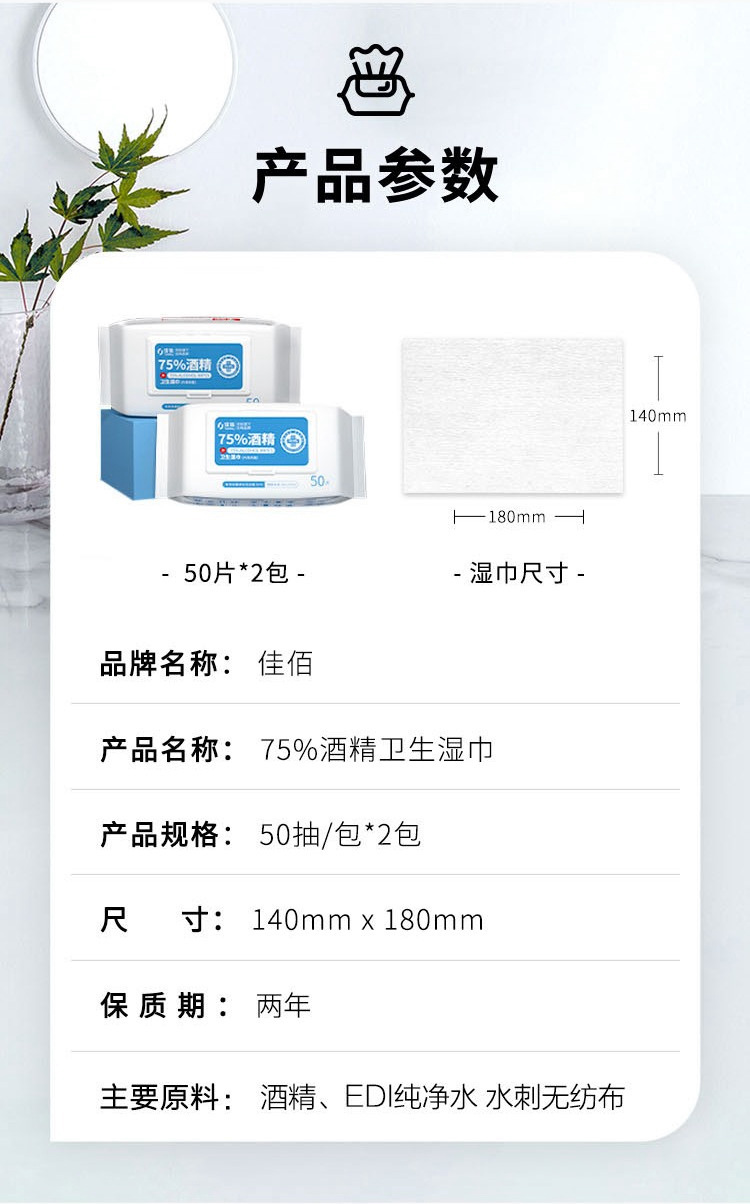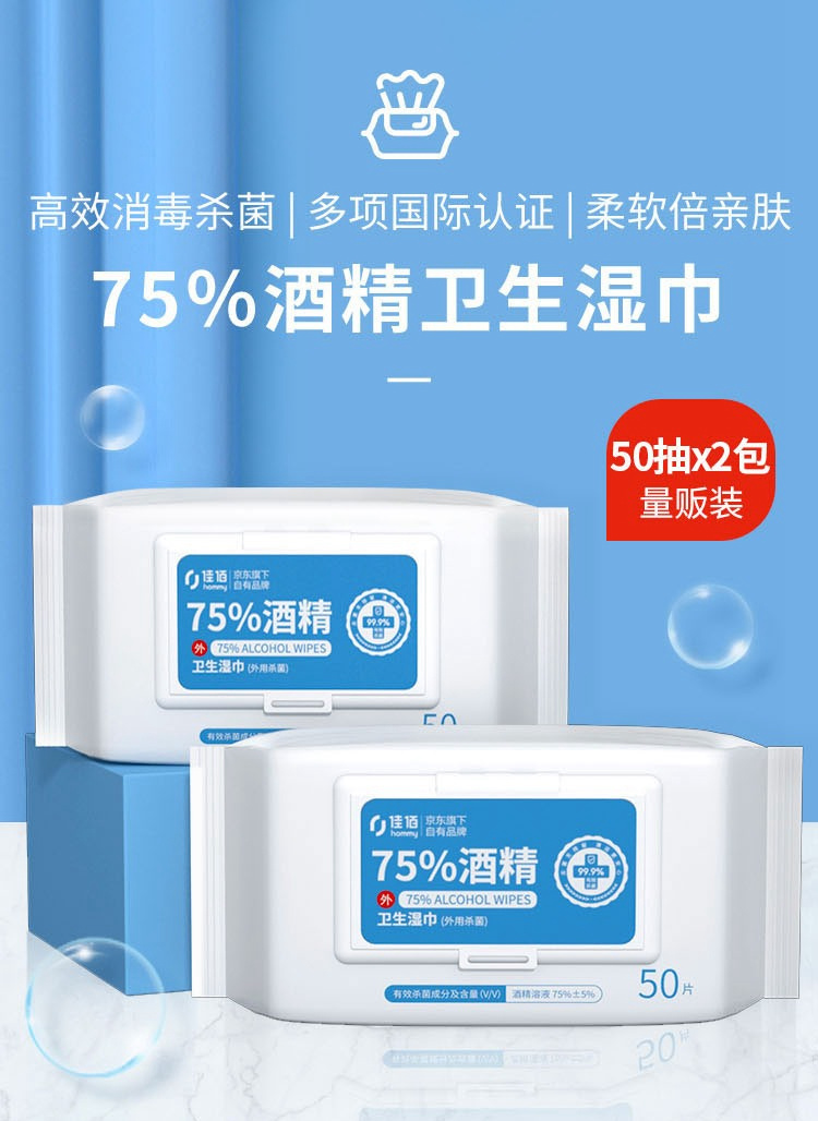 佳佰 75%酒精消毒湿巾 50抽*2包*2份(包邮直发)
