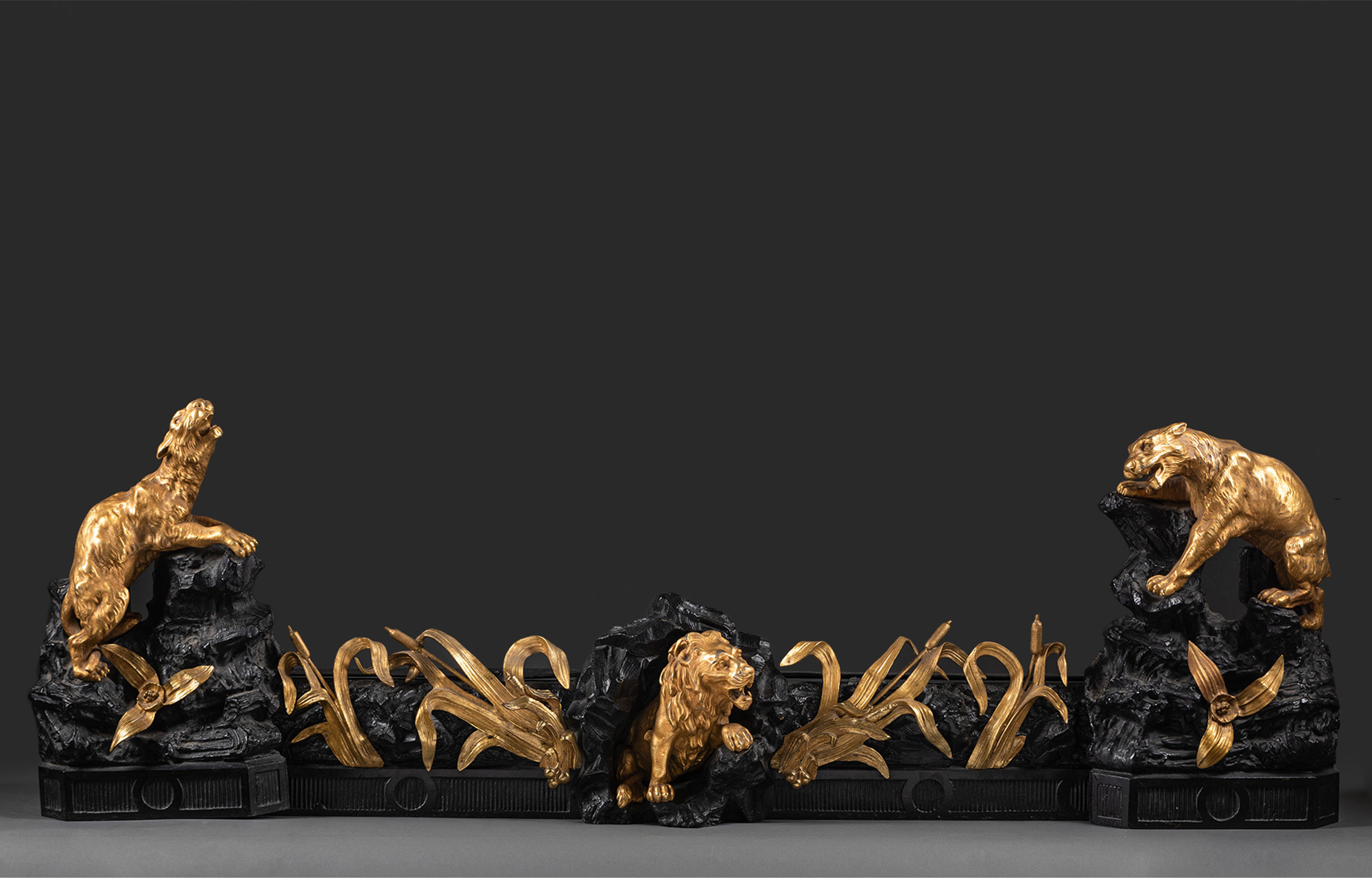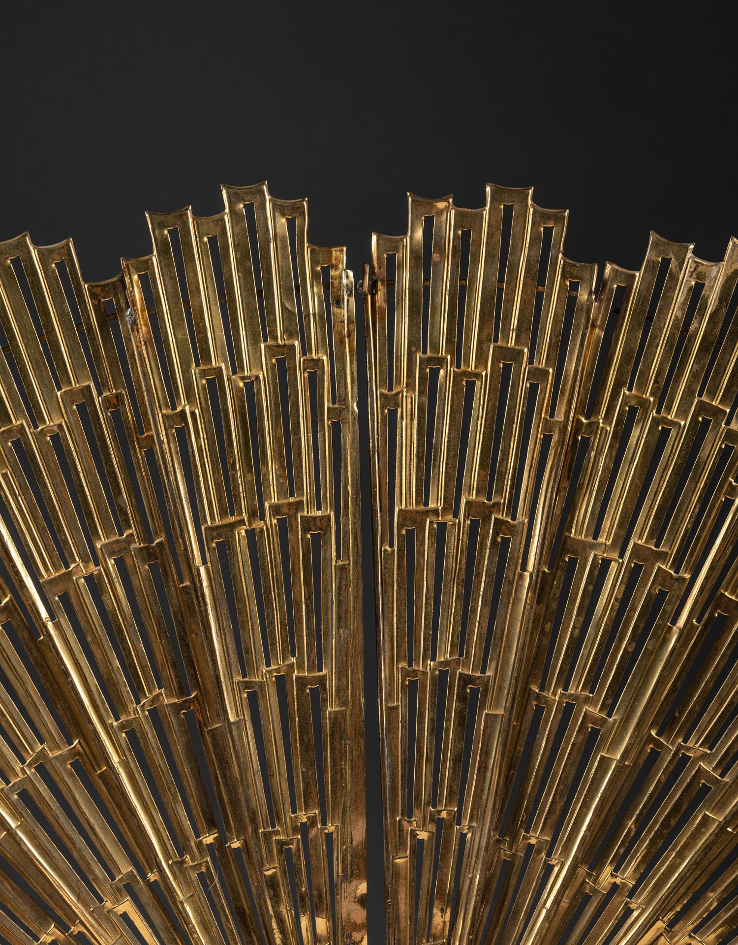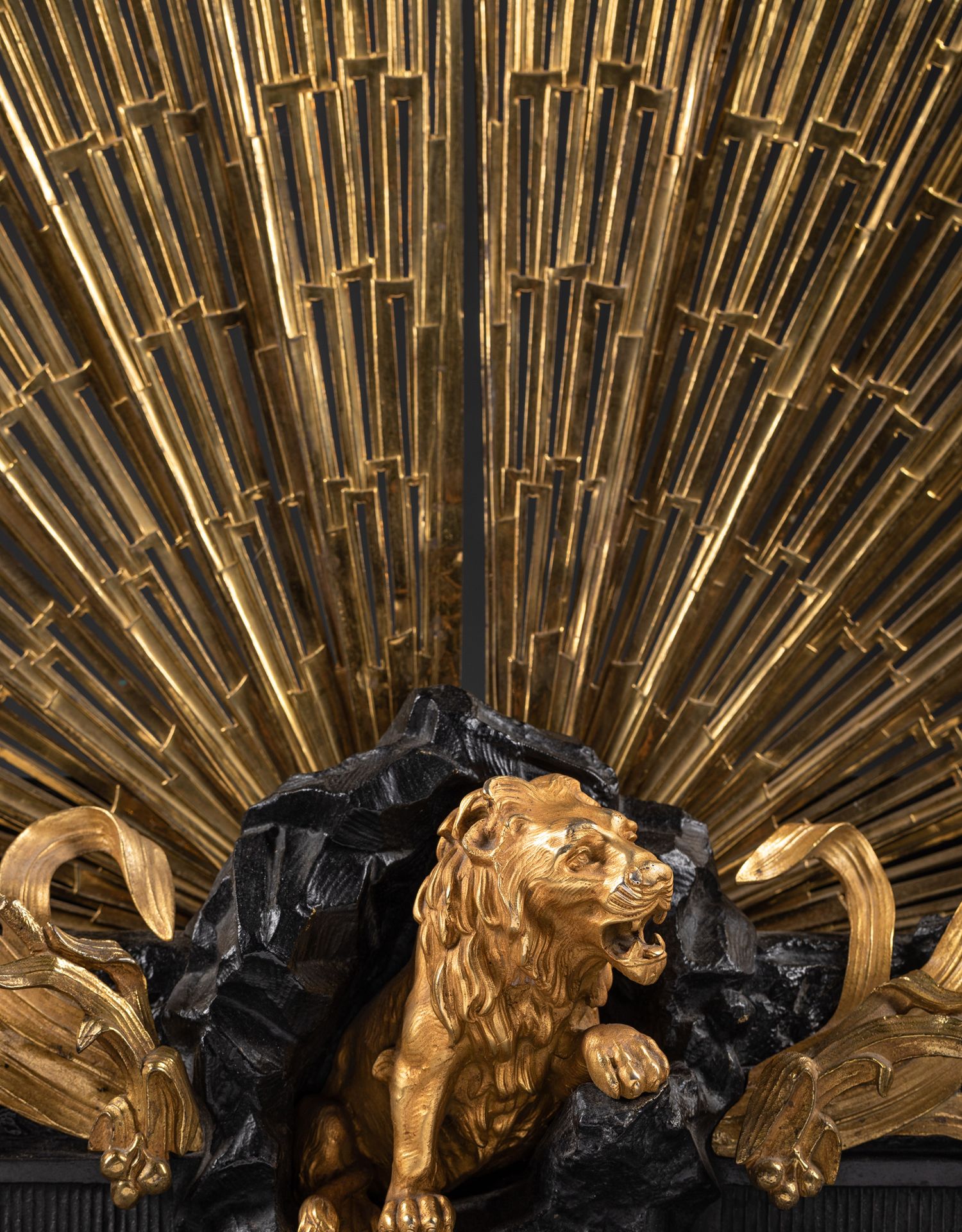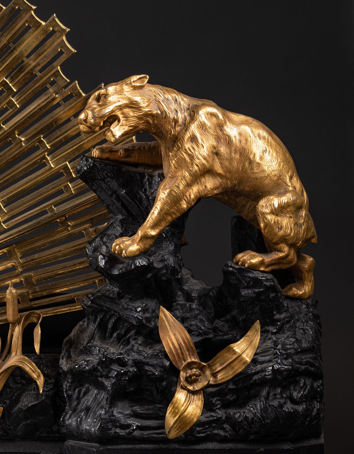 独角鹿西洋古董法国铜鎏金雕饰壁炉柴架及可折叠扇形壁炉屏风