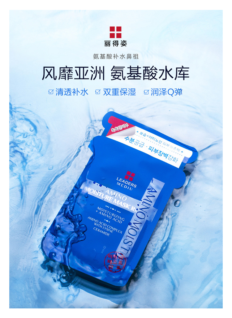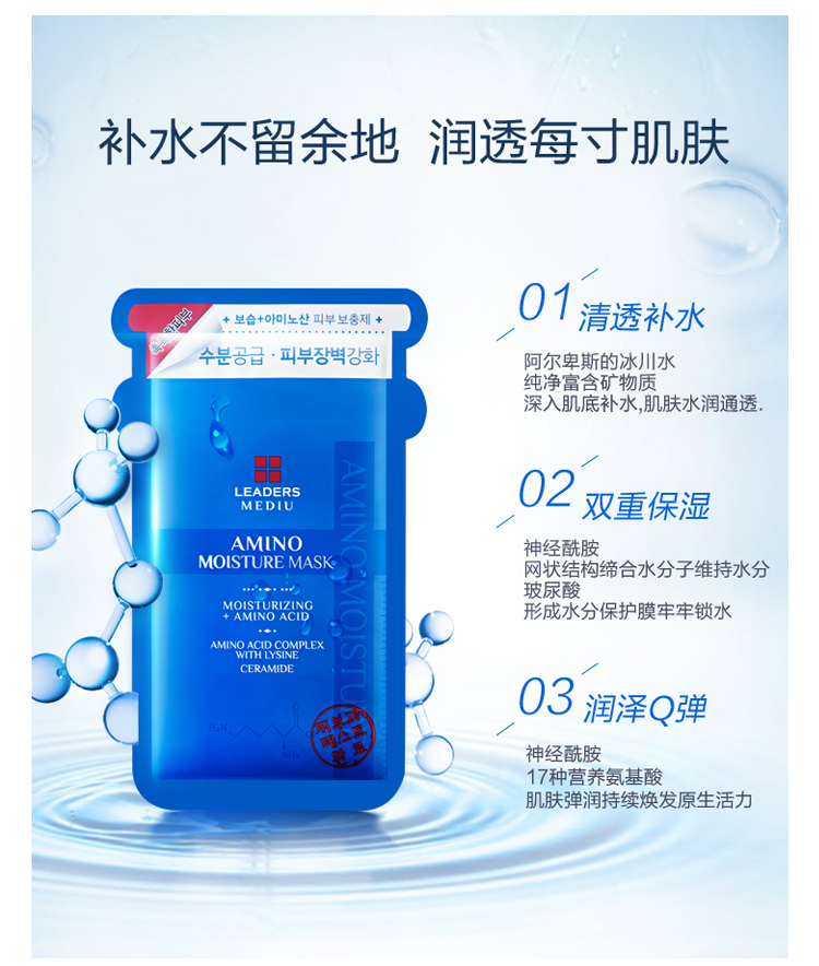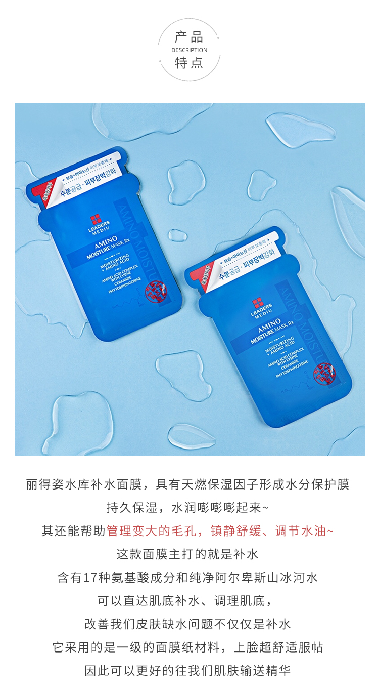 【99任选3盒】LEADERS/丽得姿美蒂优氨基酸面膜女补水保湿细致毛孔10片