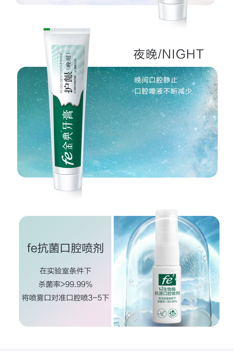 fe金典早晚牙膏2支装125g*2+15ml抗菌口腔喷剂9119