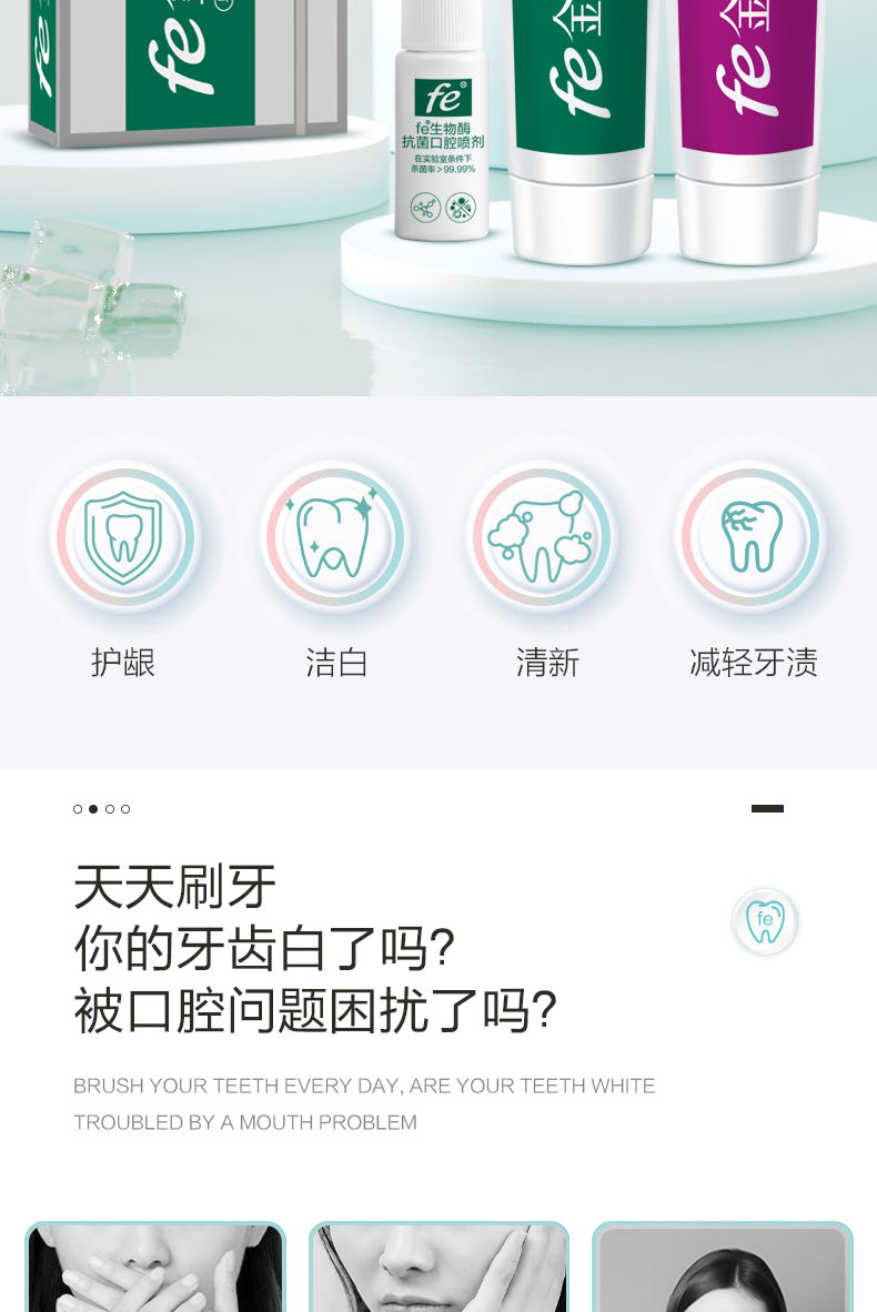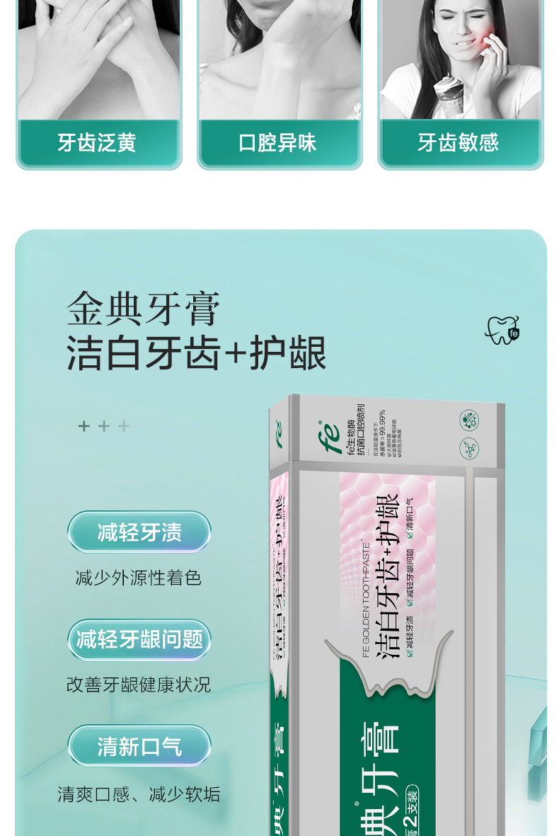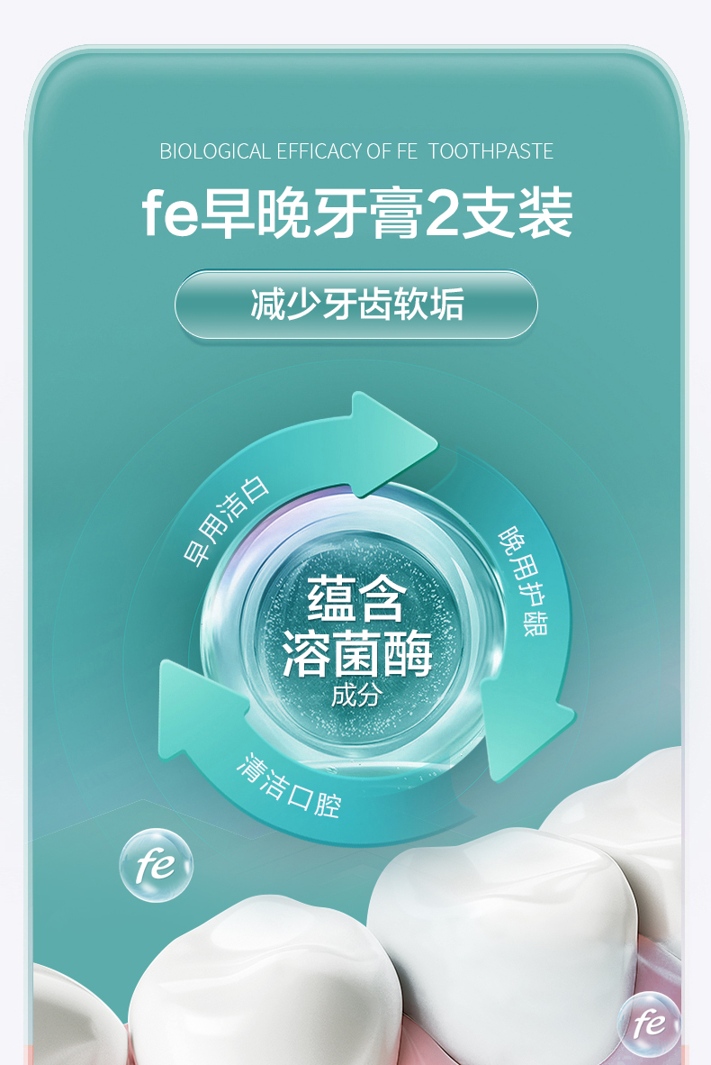 fe金典生物溶菌酶功效型牙膏抗敏固齿酷白105g劲爽茶香T9901