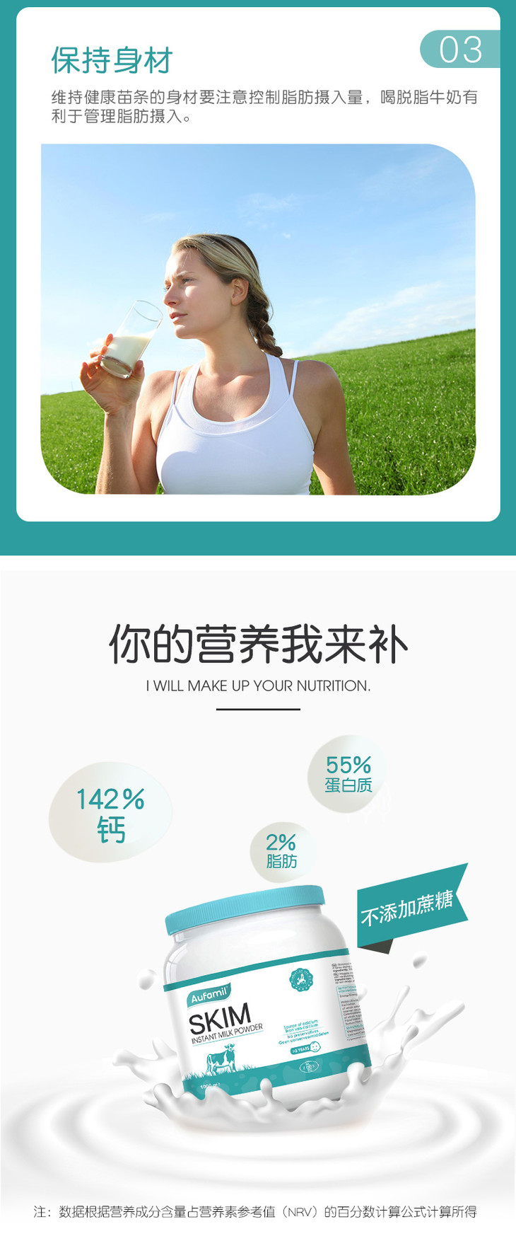 澳洲 爱赋力Aufamil脱脂/全脂 牛奶粉1000g 蓝胖子