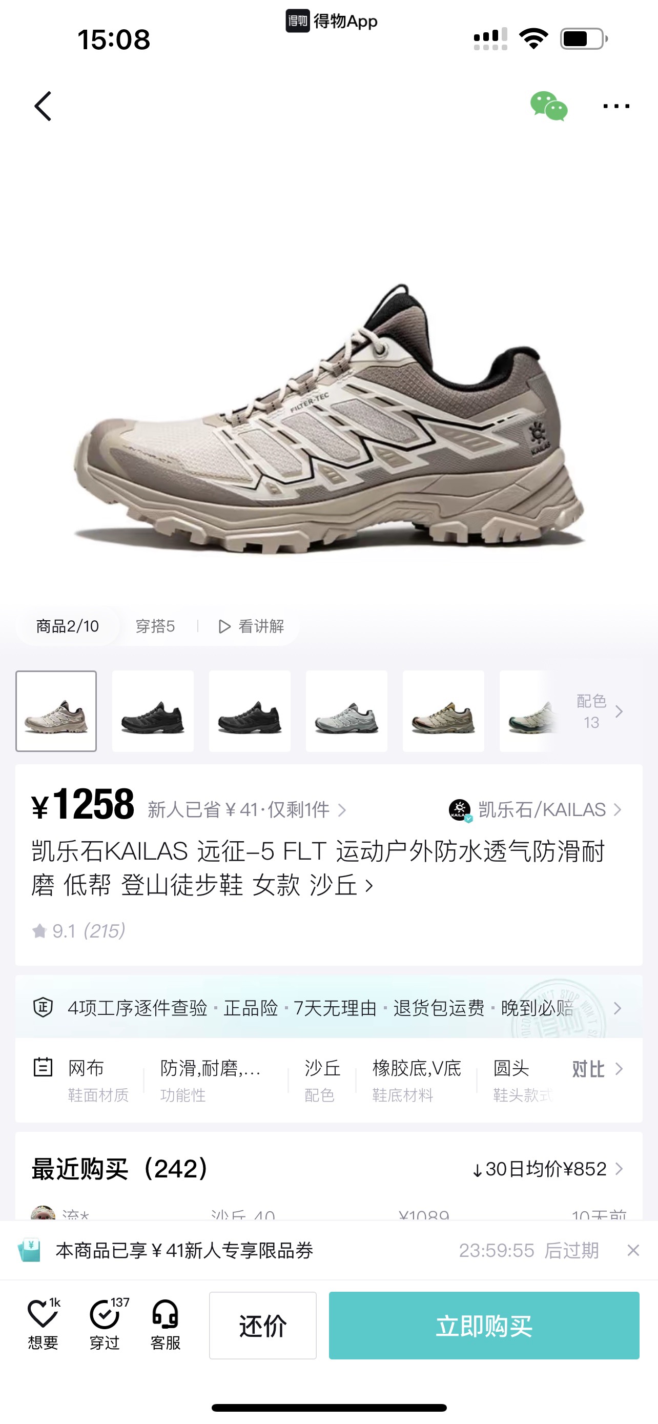 凯乐石 远征5 FLT 运动户外舒适百搭 防滑耐磨防水低帮徒步鞋 特惠 Z-15701