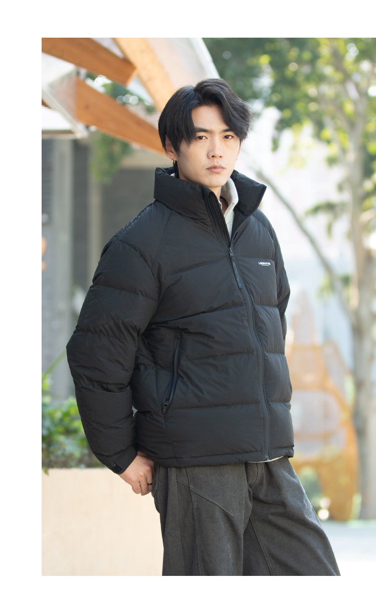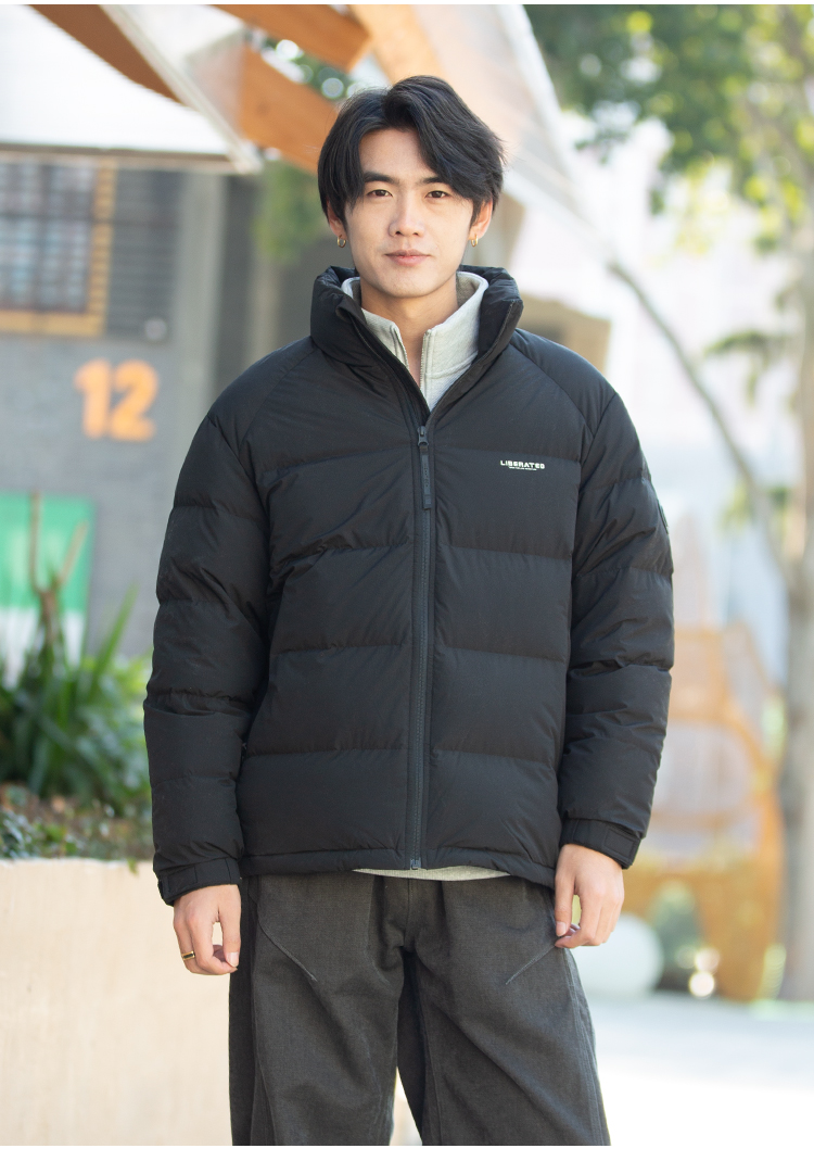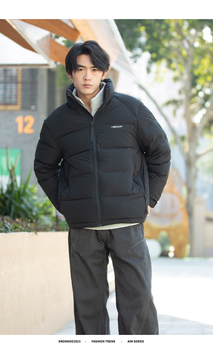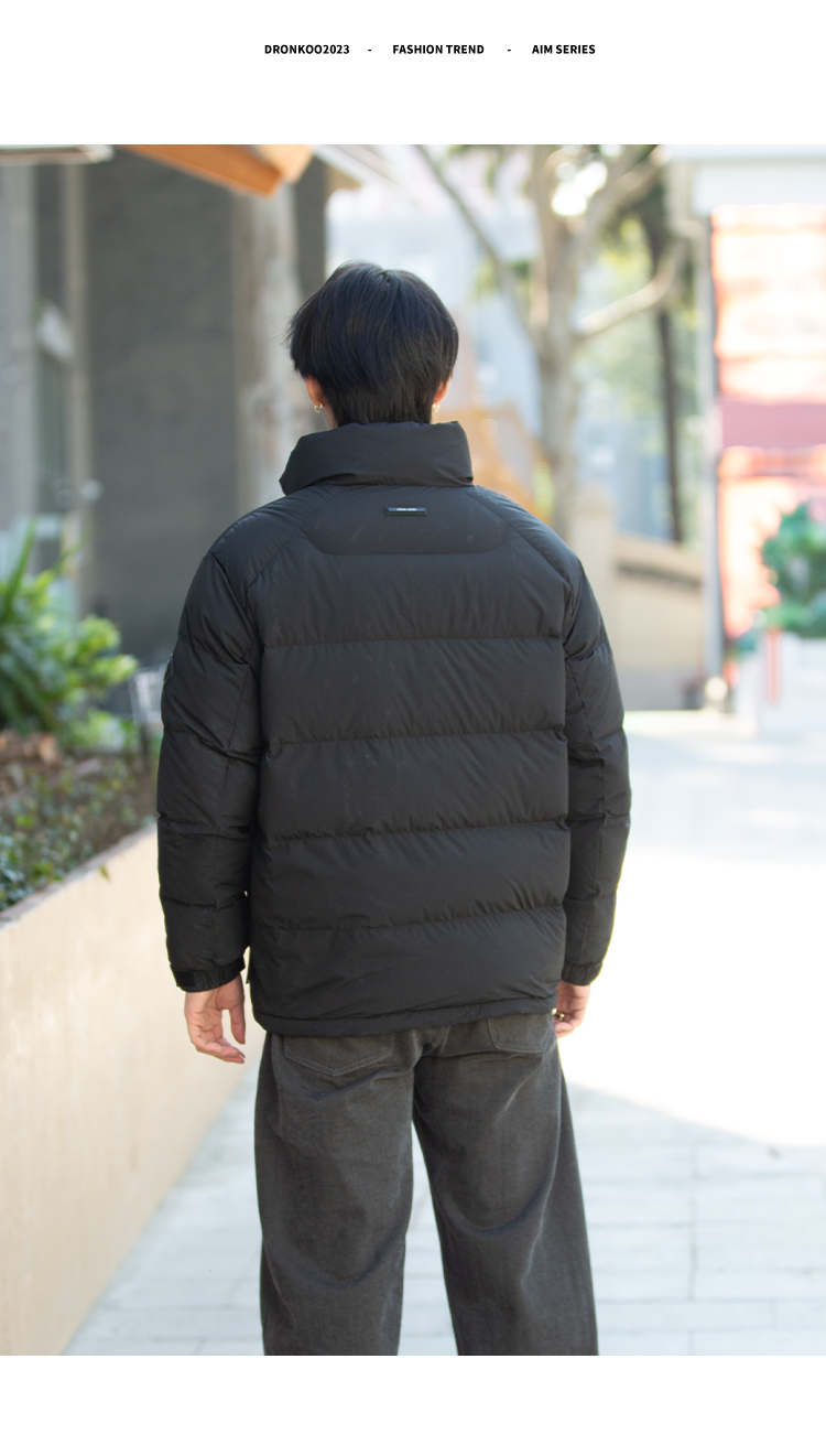 DRONKOO 2025 立领左胸字母袖子圆标基础短款中厚羽绒服