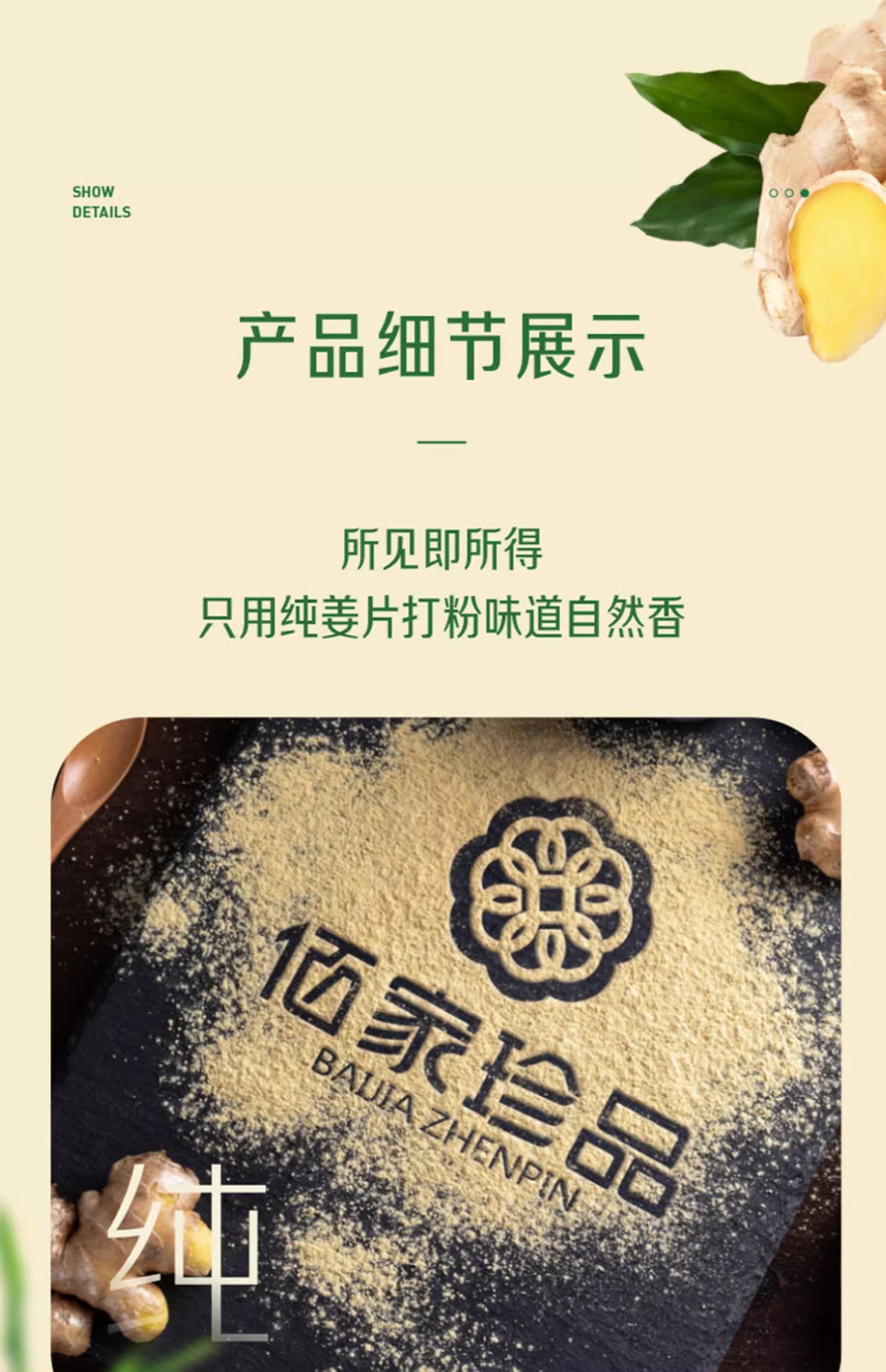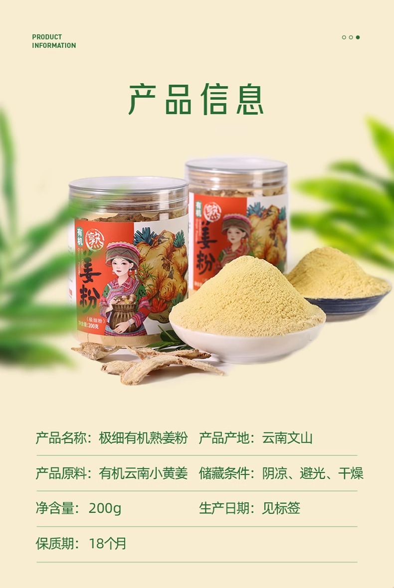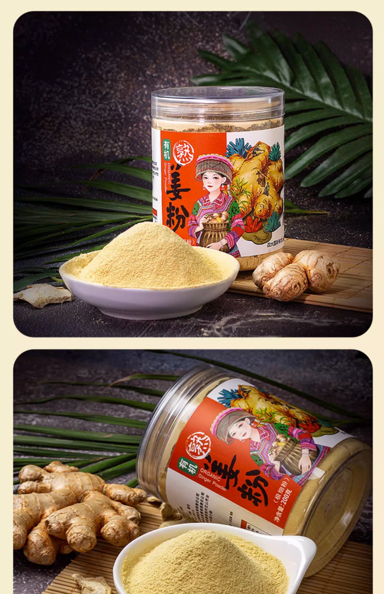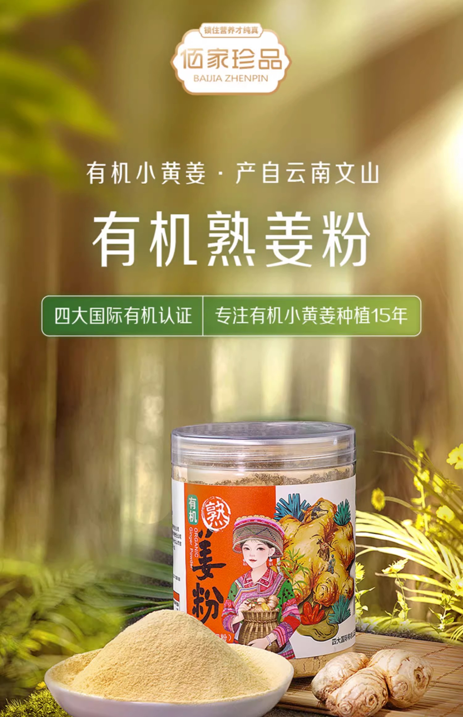 佰家珍品云南有机小黄姜粉食用极细纯熟姜粉炒制干姜粉泡水冲饮调料原始点
