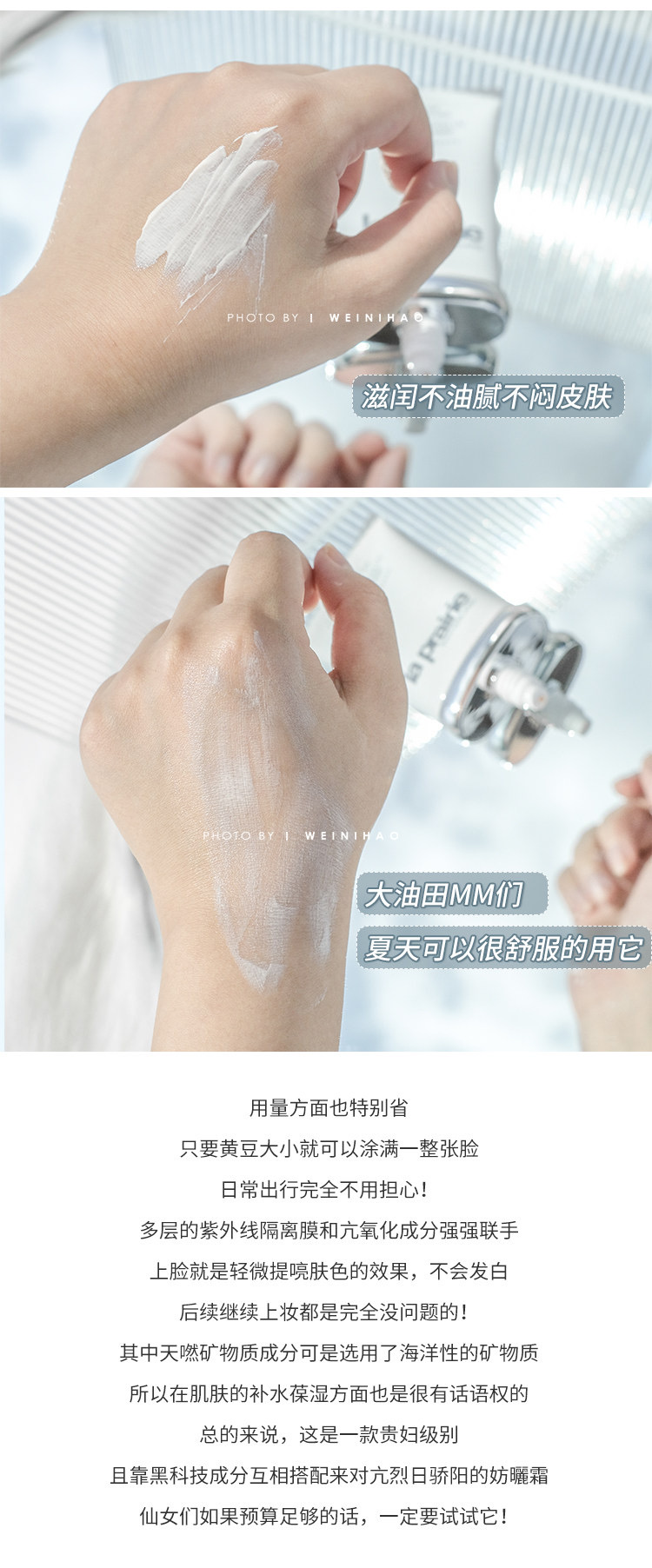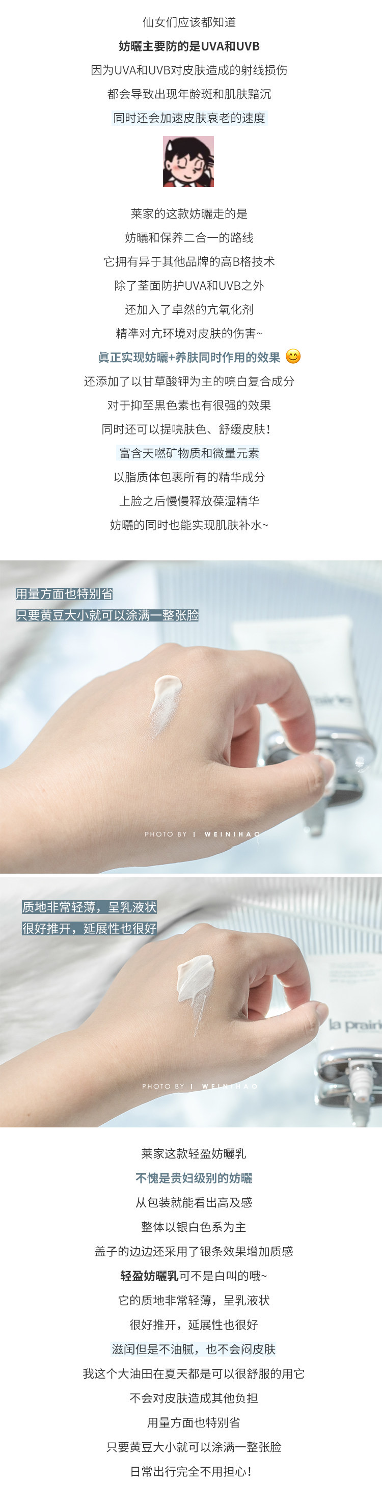la prairie防晒霜,这支重点写下,太好用,除了贵没缺点,膏体挤出来是粉粉的!可爱!虽然是防晒霜,而且算是偏滋润的型,但一点都不会觉得粘腻或者不好吸收糊在脸上油油的的感觉,很清透的就能吸附在脸上,后续加个散粉就能愉快的出门~量也算很大,性价比在LP里算是很高很高了!
