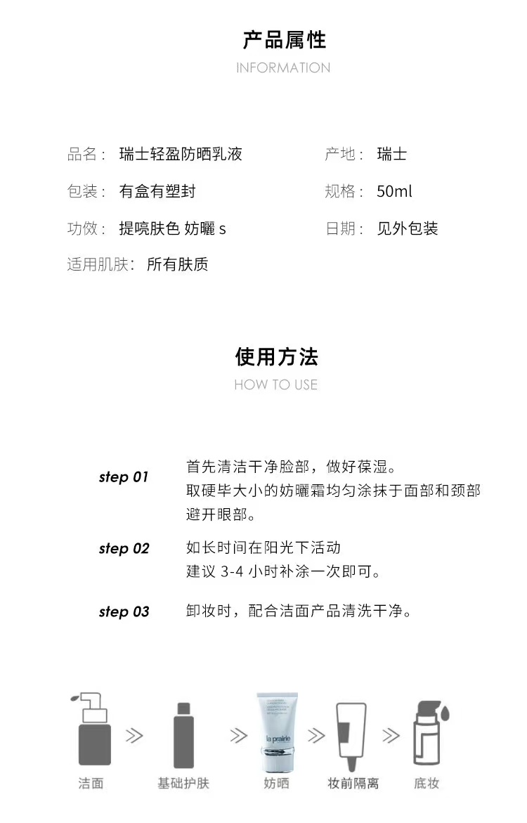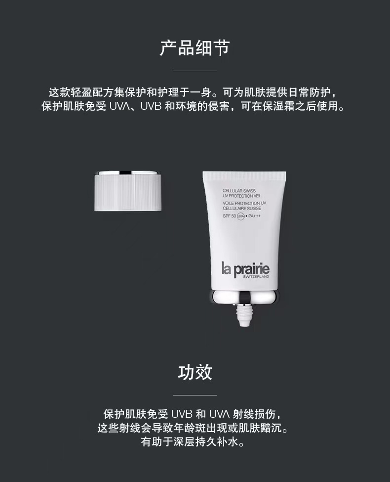 La prairie/莱伯妮LP 蓓丽 瑞士轻盈防晒霜50ml SPF50 清爽 隔离 防护