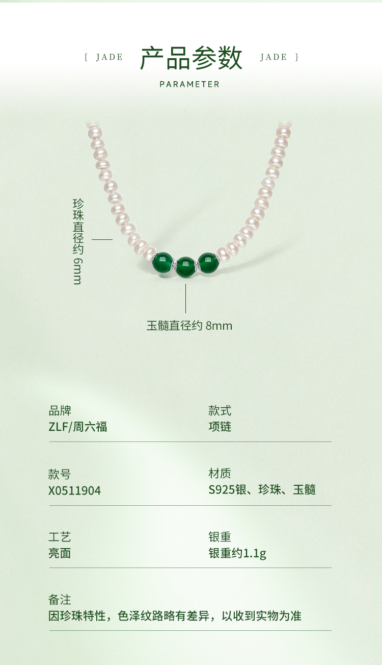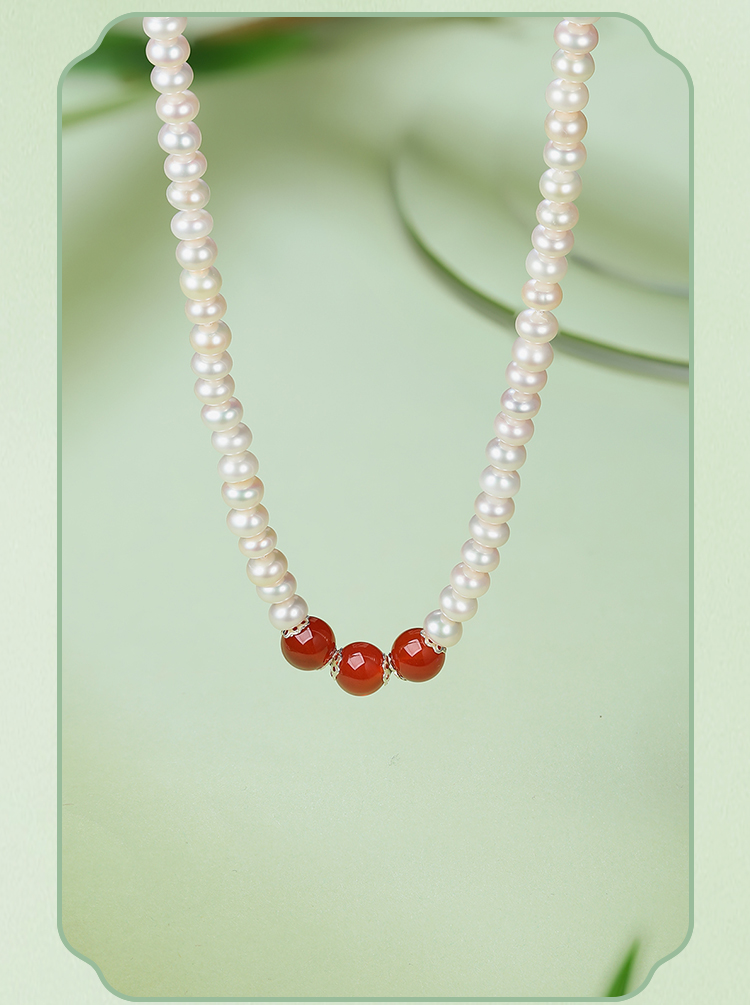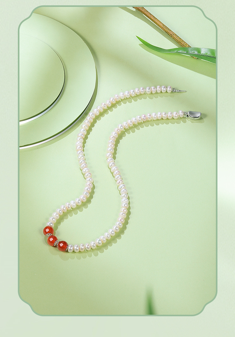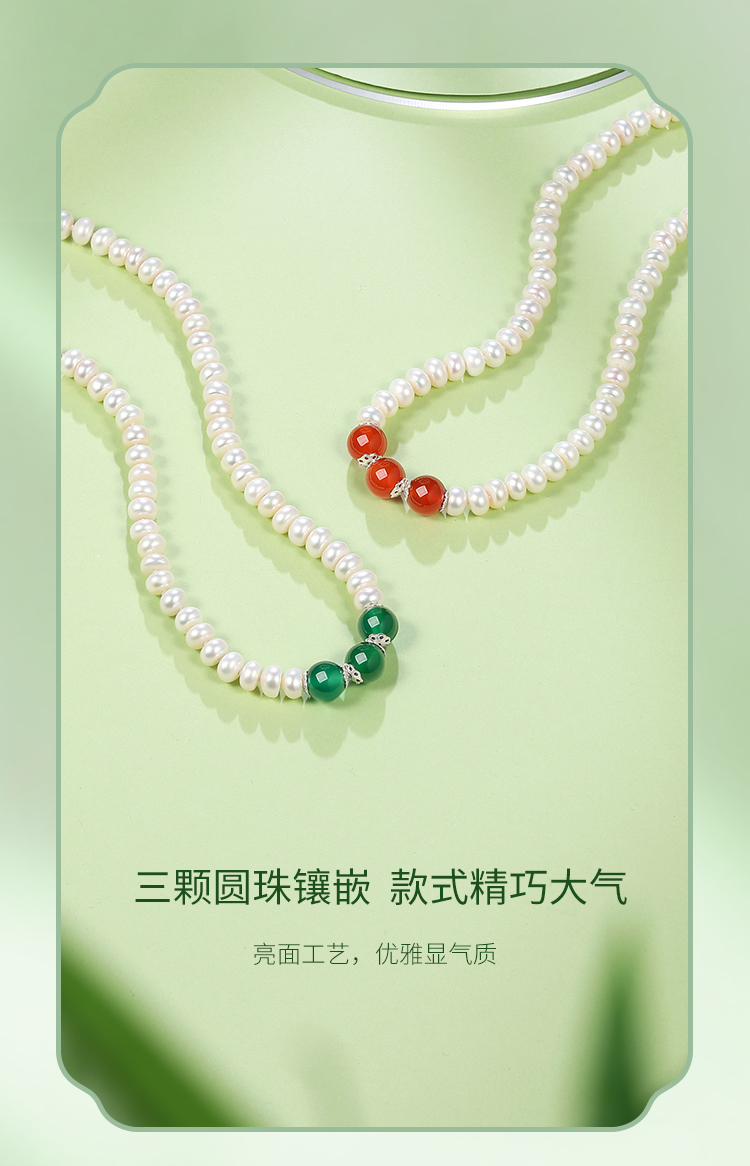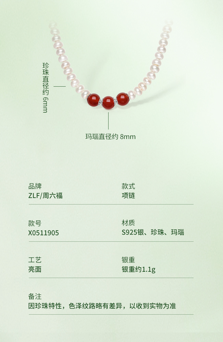 周六福S925银淡水珍珠玛瑙项链 优雅时尚复古颈饰女生礼物官方