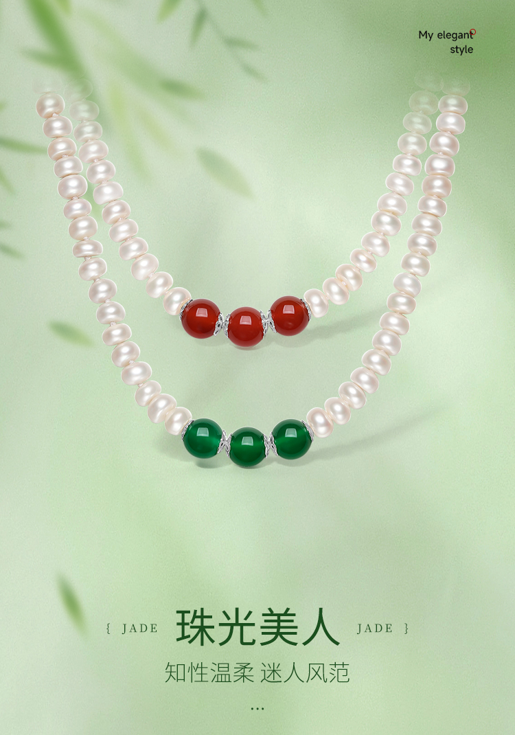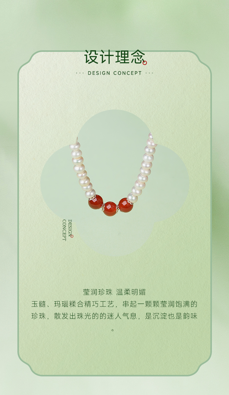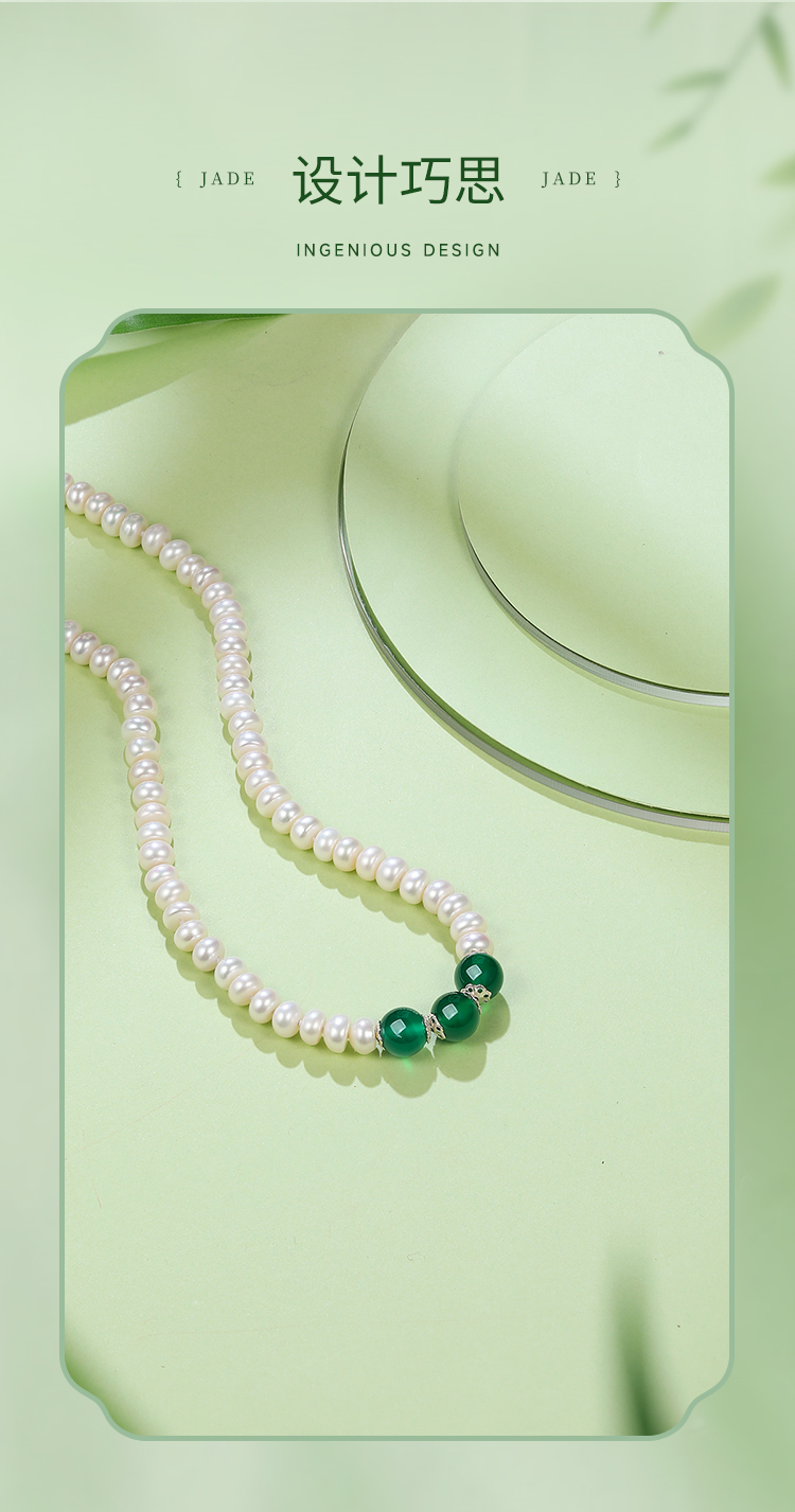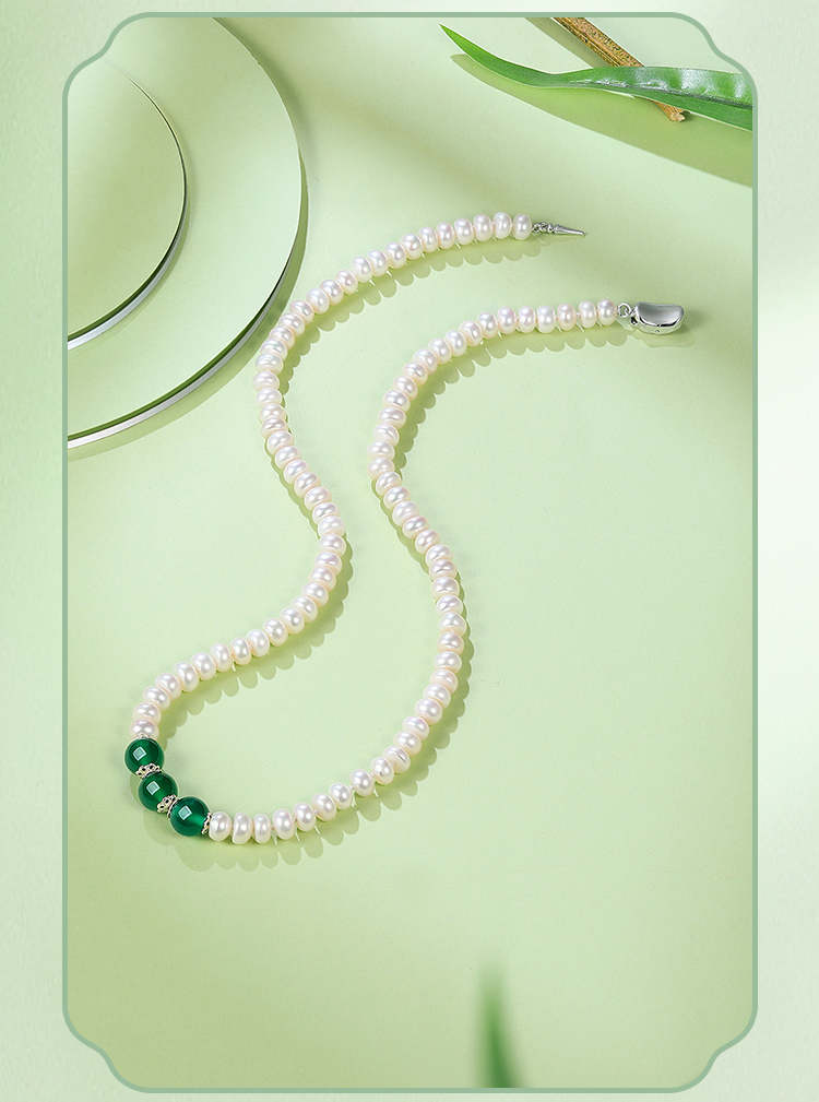 周六福S925银淡水珍珠玛瑙项链 优雅时尚复古颈饰女生礼物官方