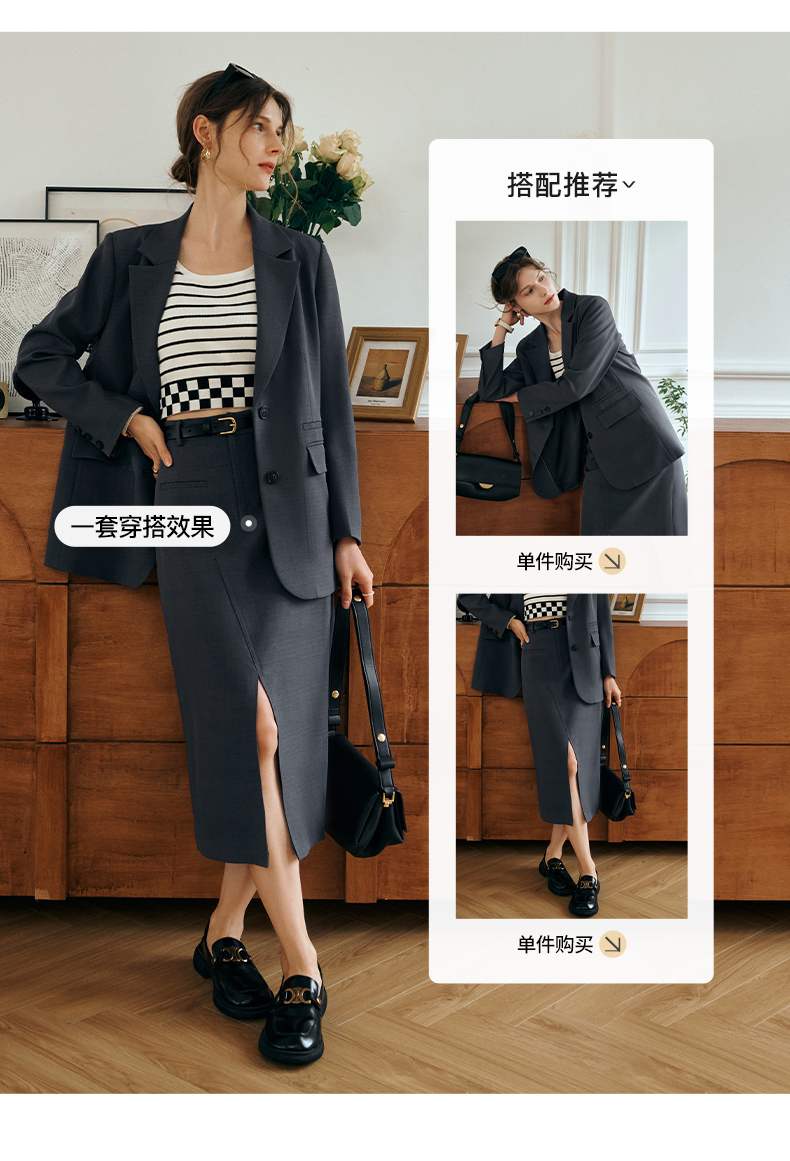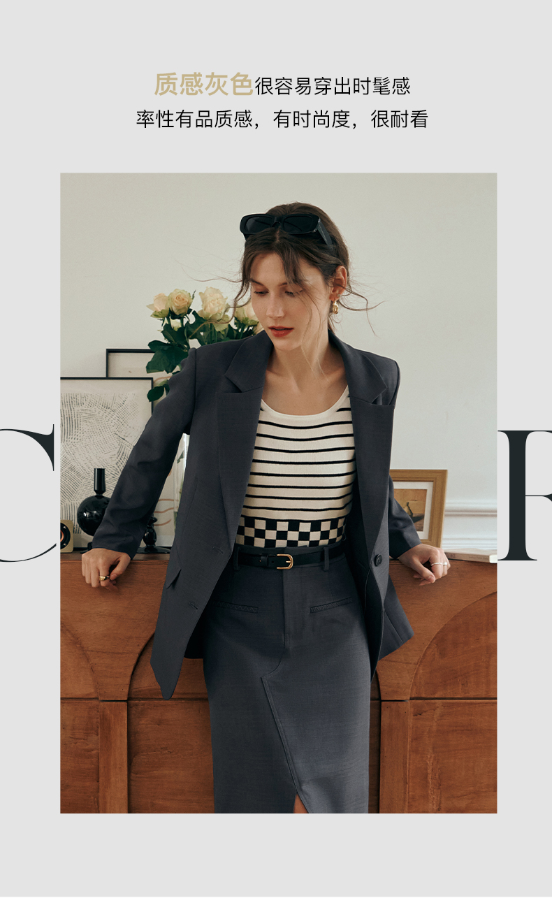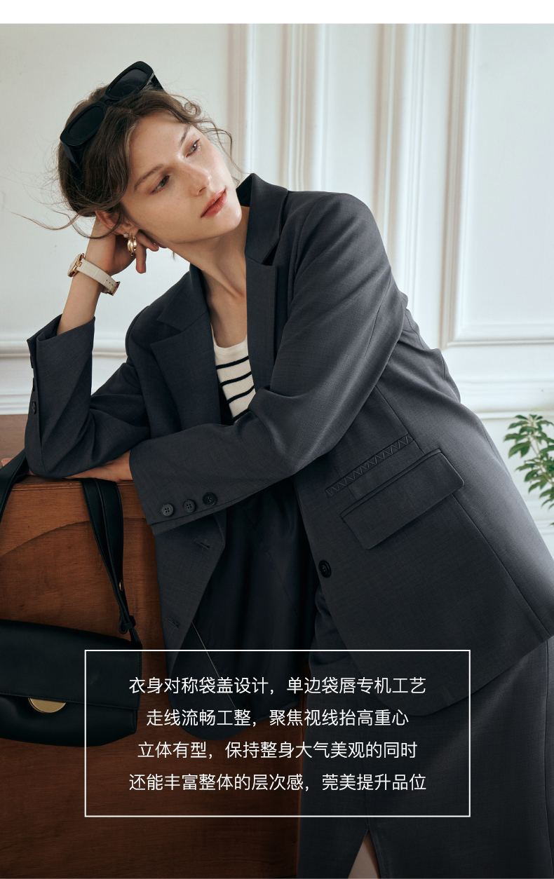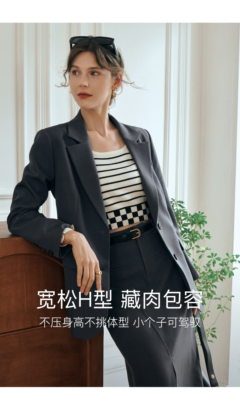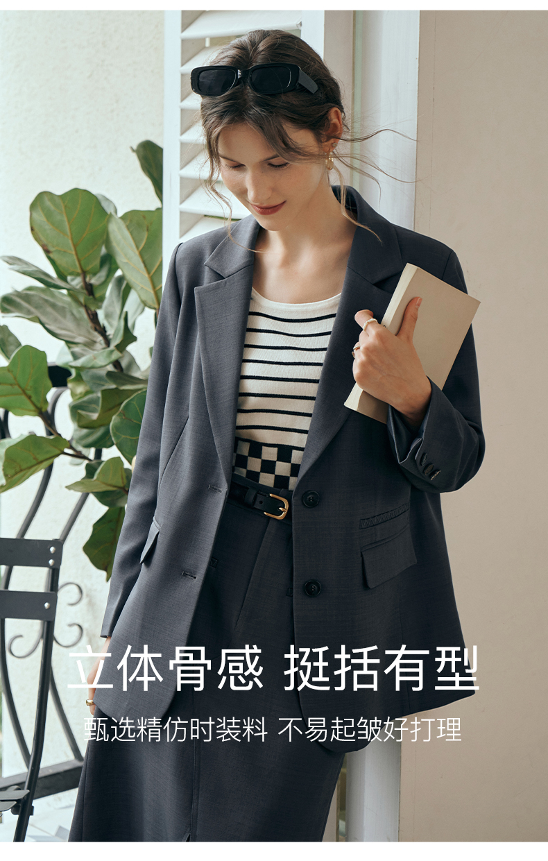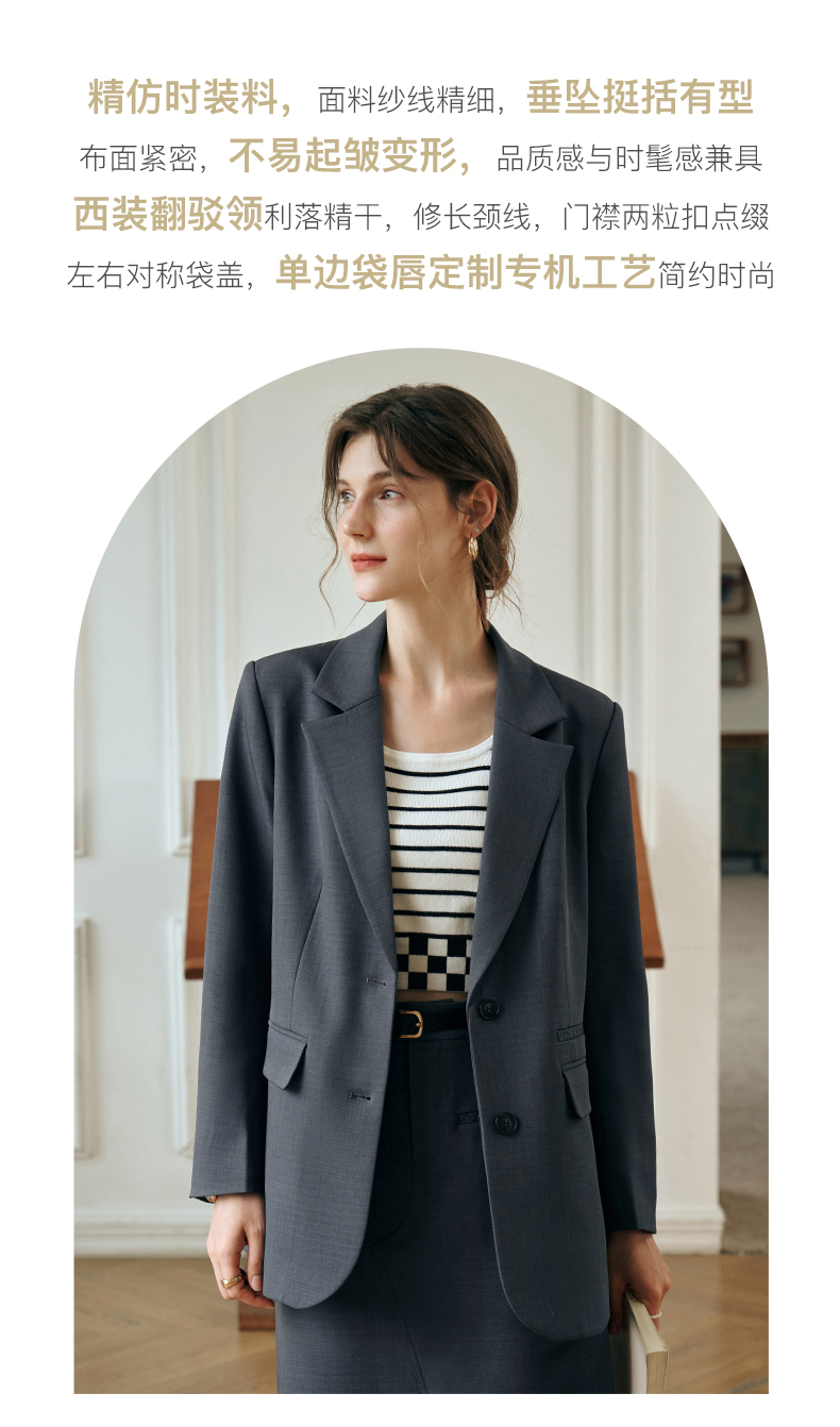 欧芮儿高级感灰色西装外套女秋装2023新款通勤宽松休闲气质上衣