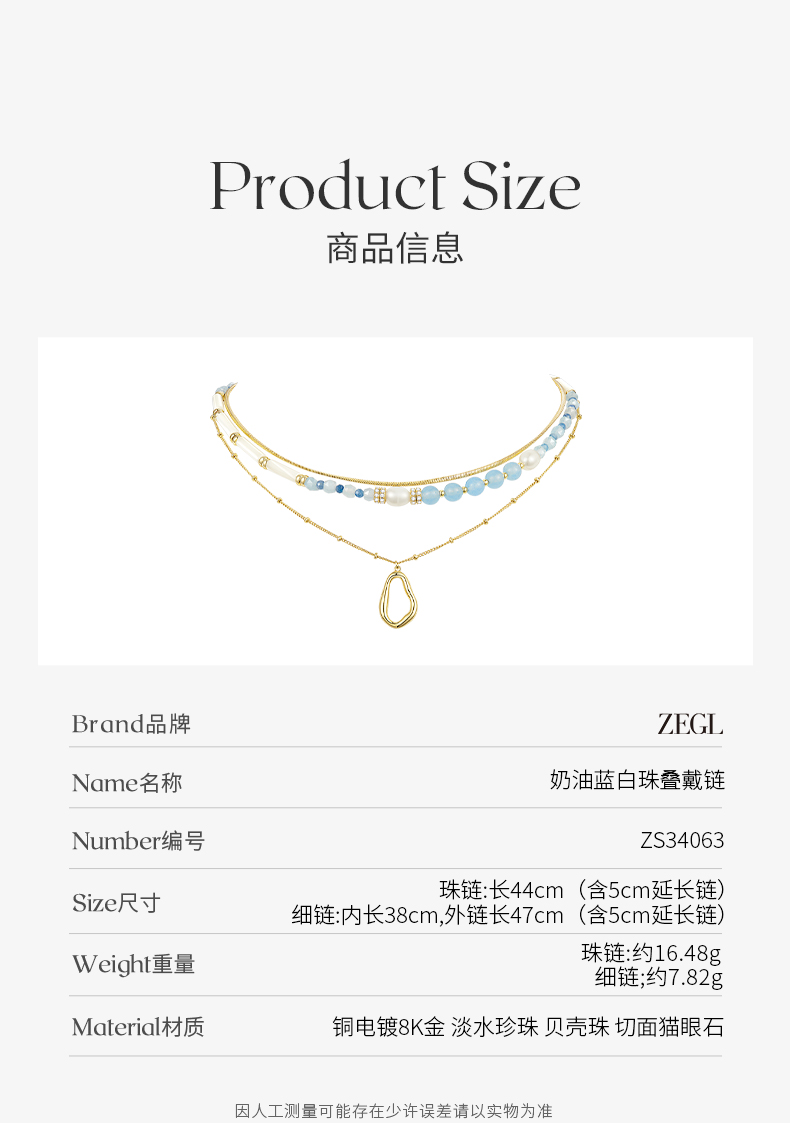 ZEGL设计师都市焕趣系列珍珠双层叠戴字母项链女生轻奢小众锁骨链