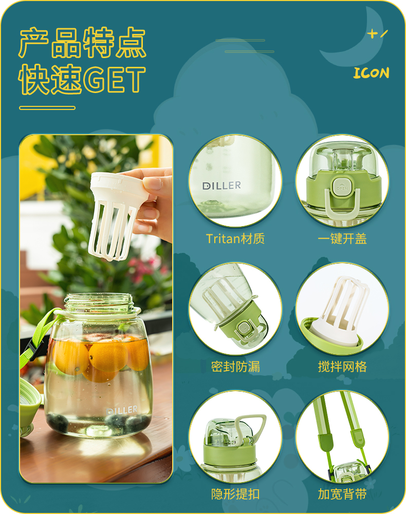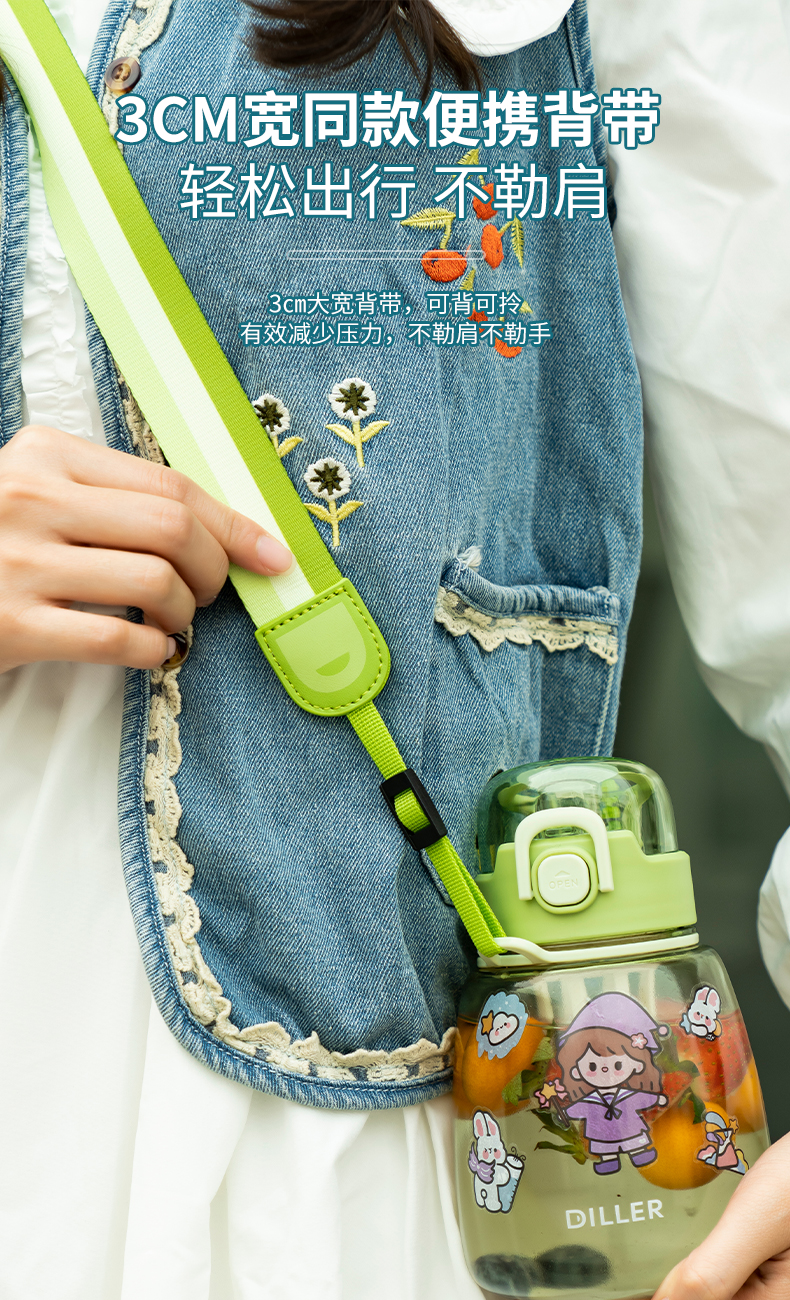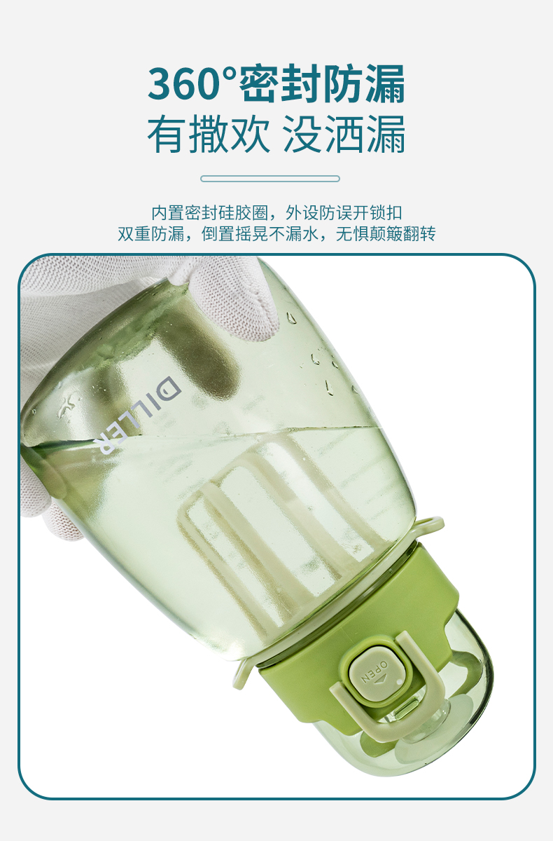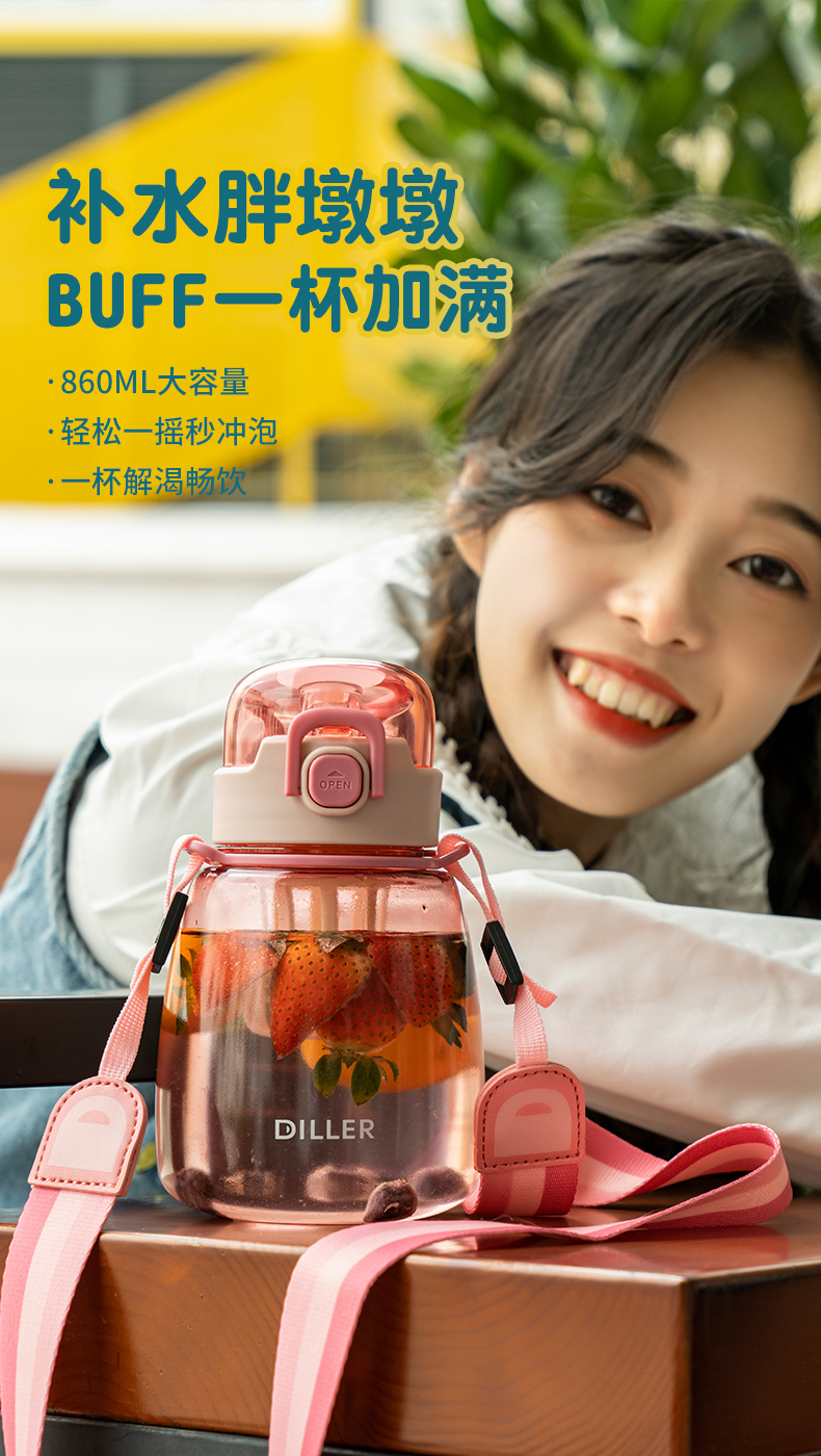 迪乐贝尔乐言tritan直饮杯DB-018/860ml水杯大容量女生可爱高颜值儿童学生水壶茶漏便携防摔肚杯子