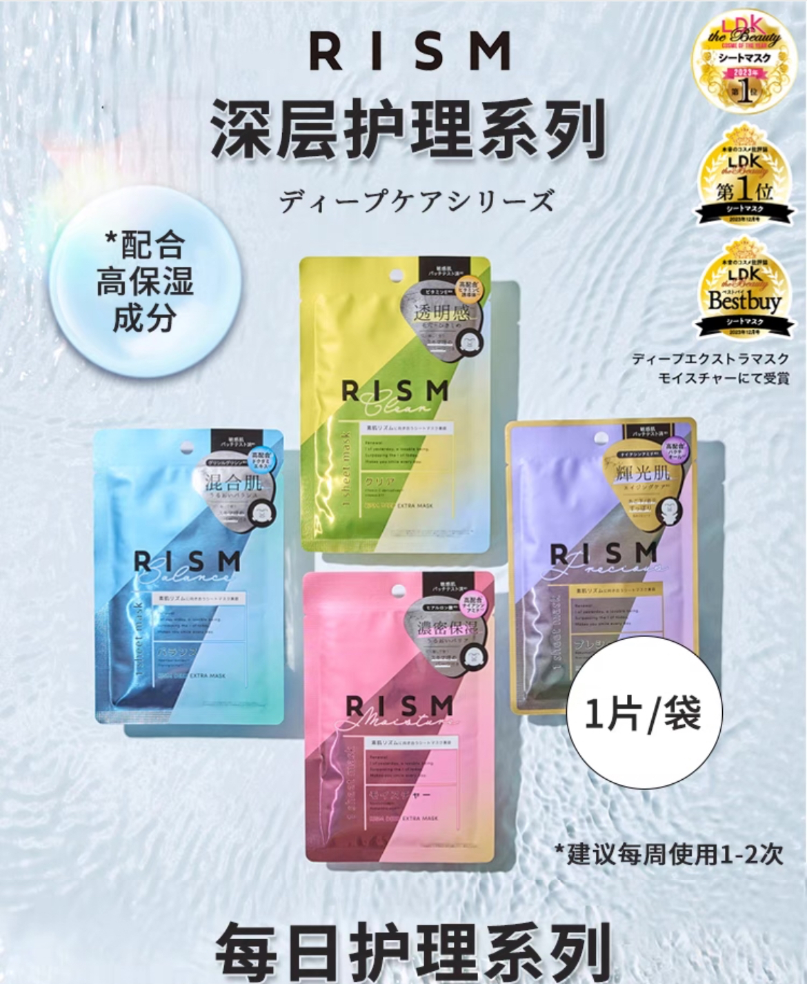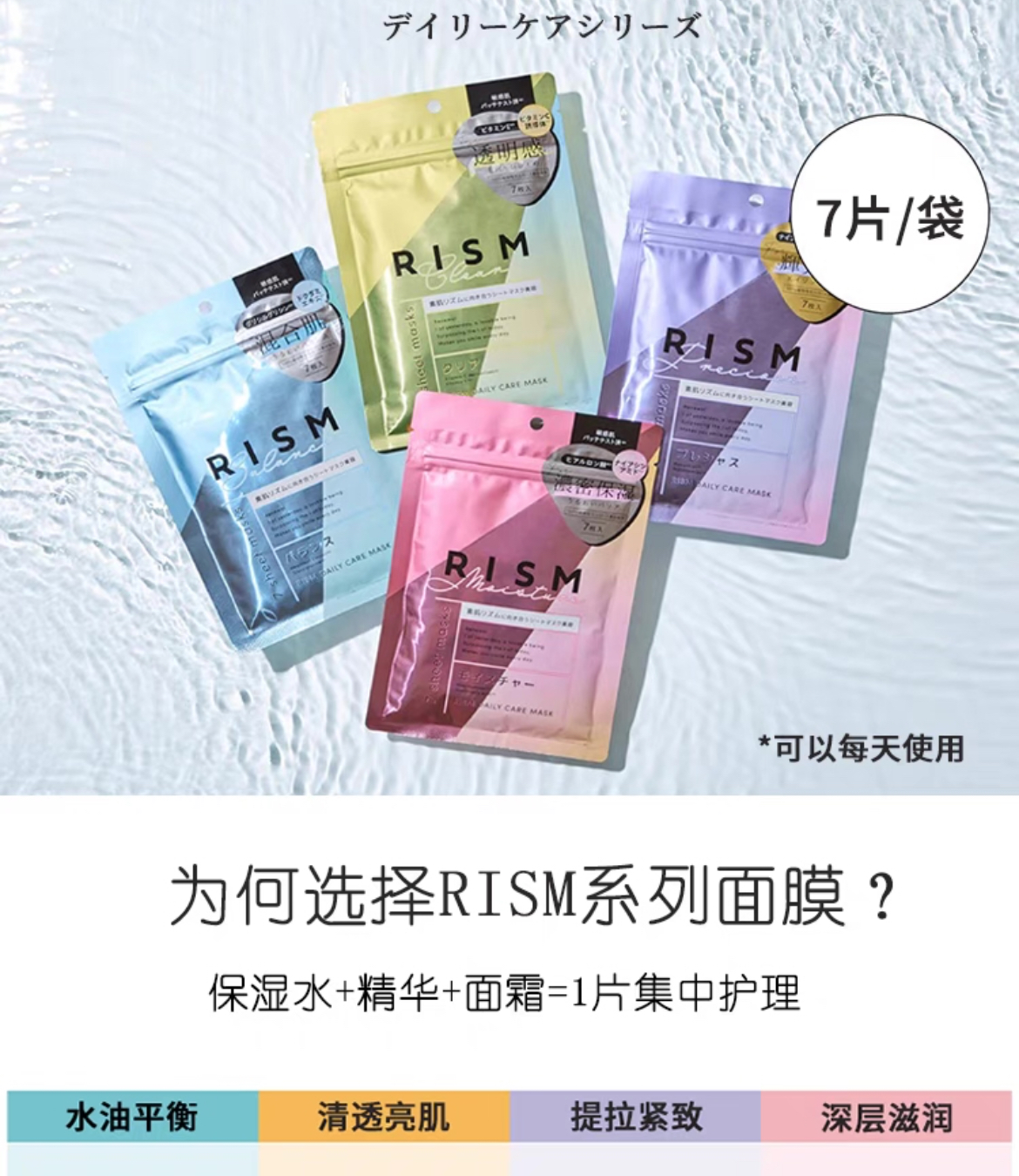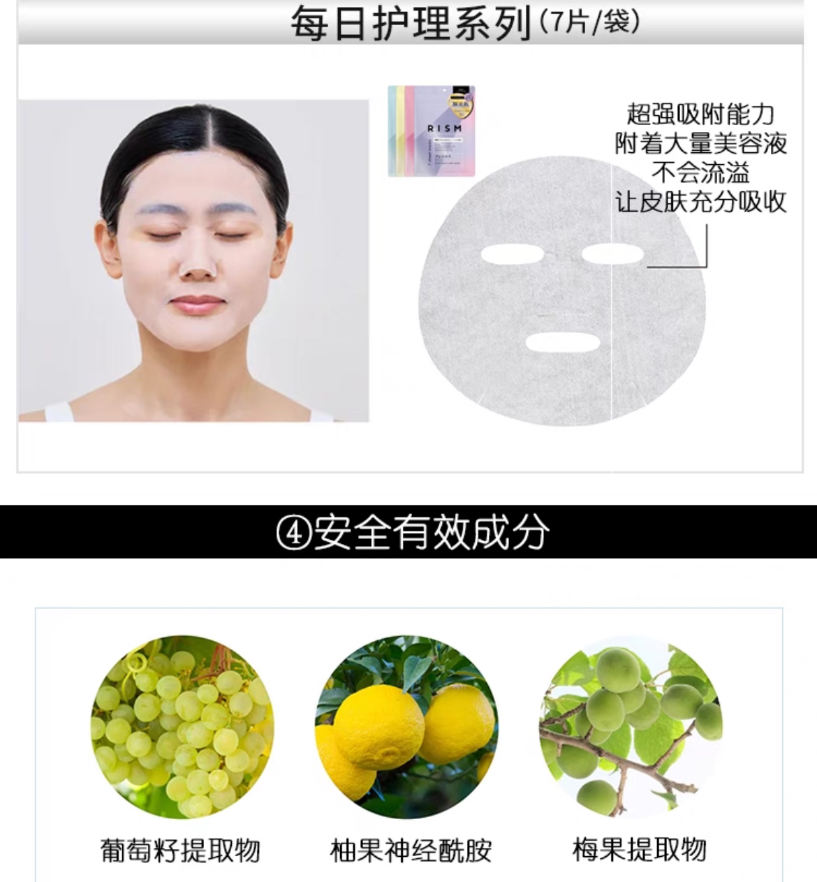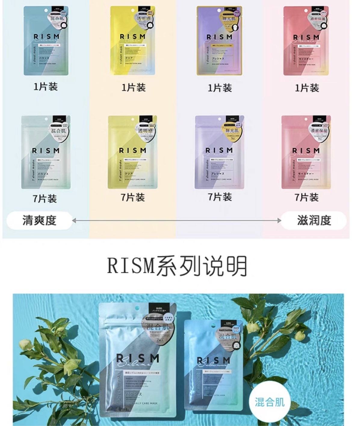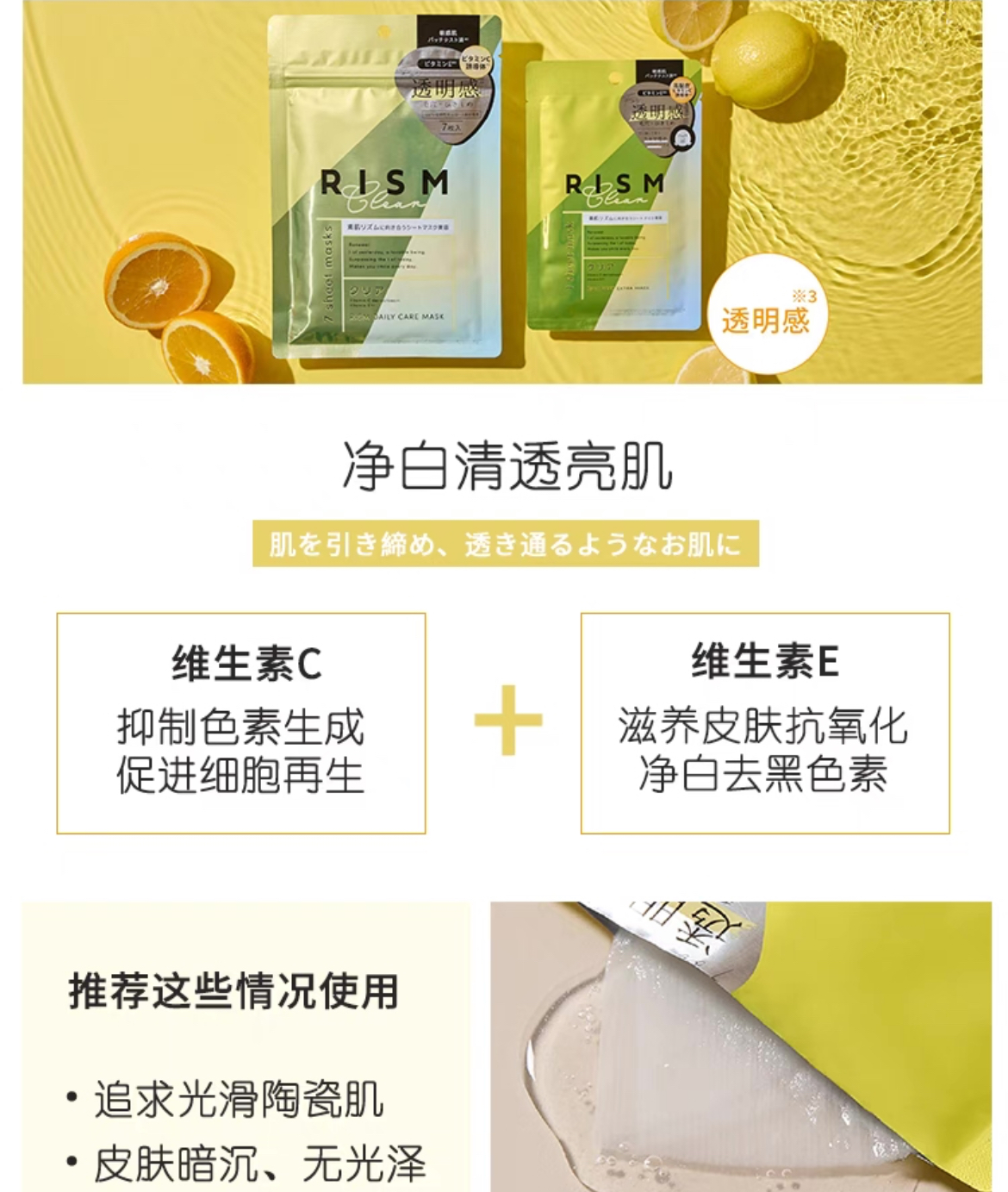 【跨境】RISM日常护理黄色清凉透肌面膜21.4ml*7片