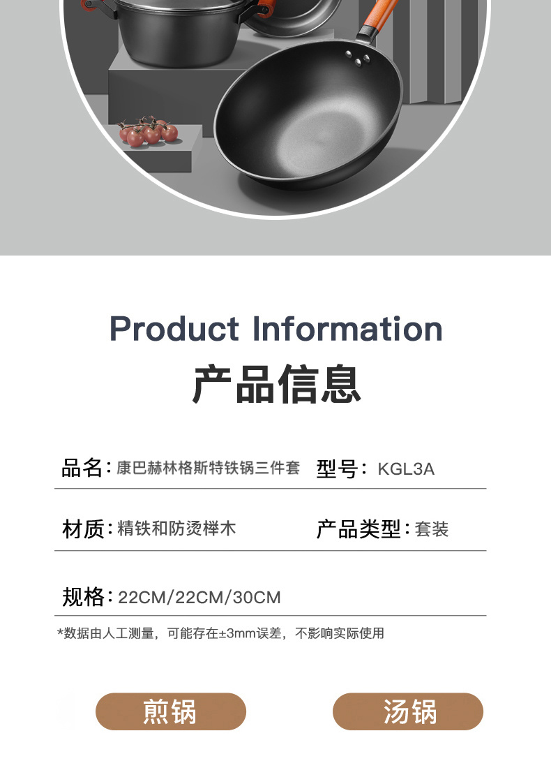 【分仓直发包邮】康巴赫-林格斯特铁锅三件套 22/22/30CM KGL3A