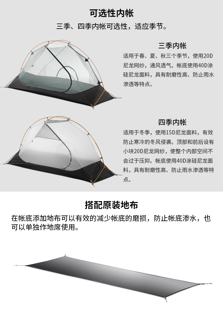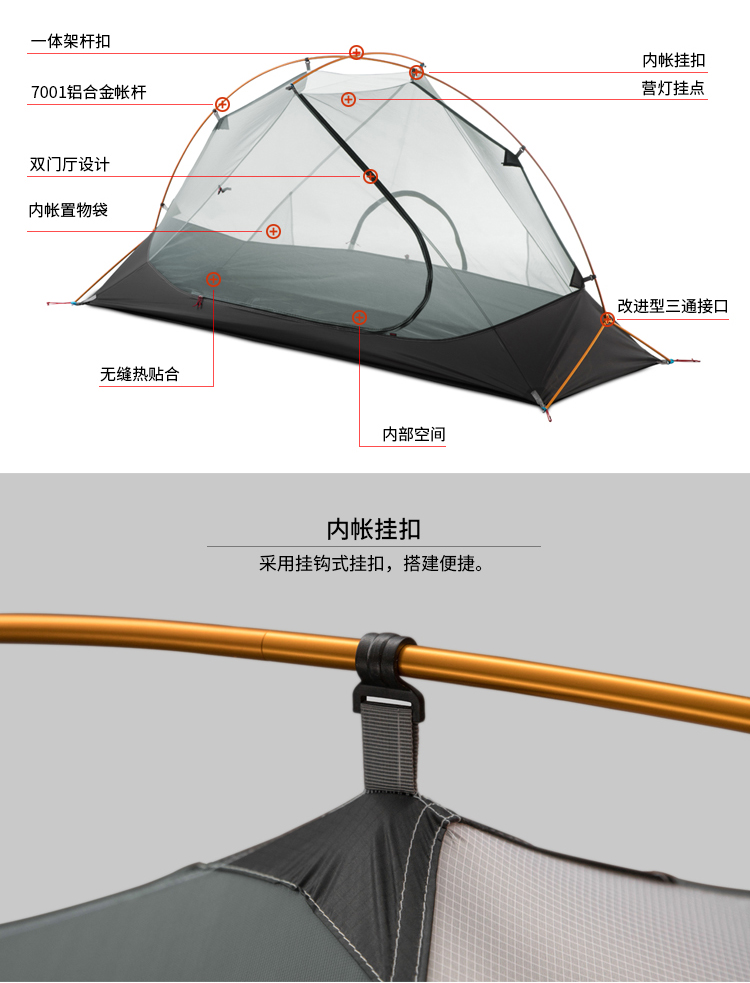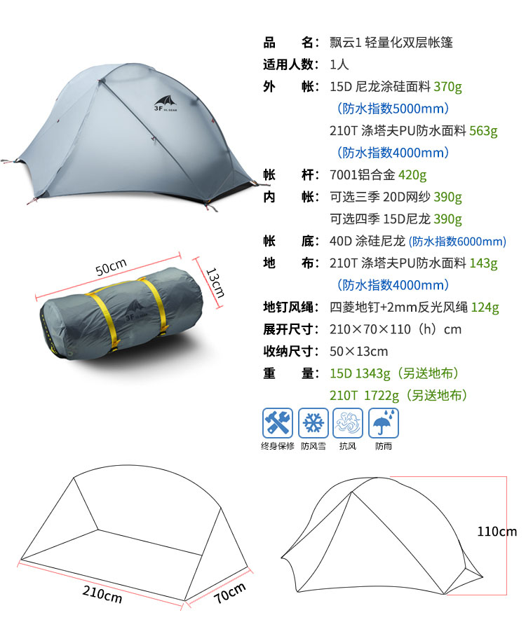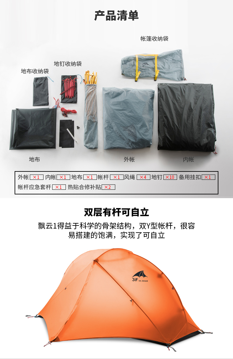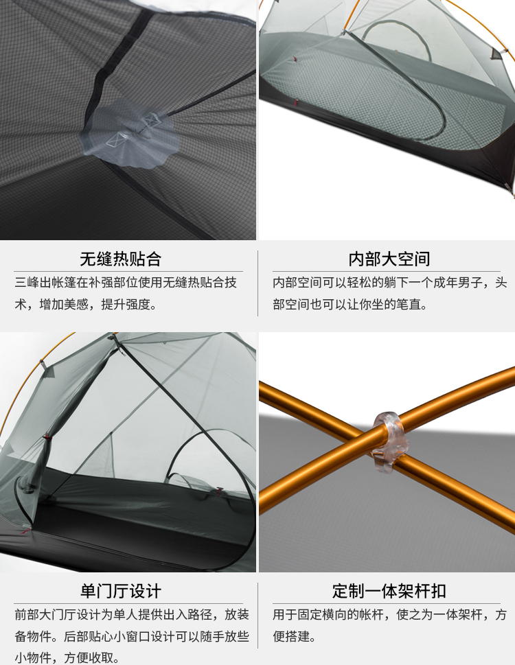 【捡漏到手!)!单人款15D 捡漏现货!】三峰出 三峰帐篷户外飘云1单人三四季户外露营自立铝杆轻量化双层帐篷 210T香橙橘三季
