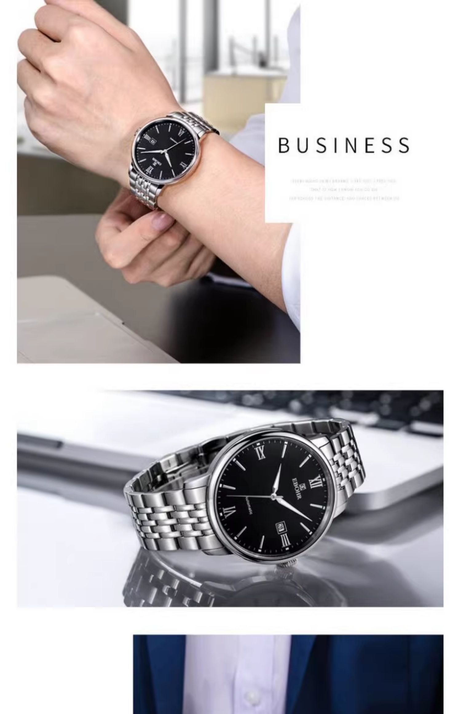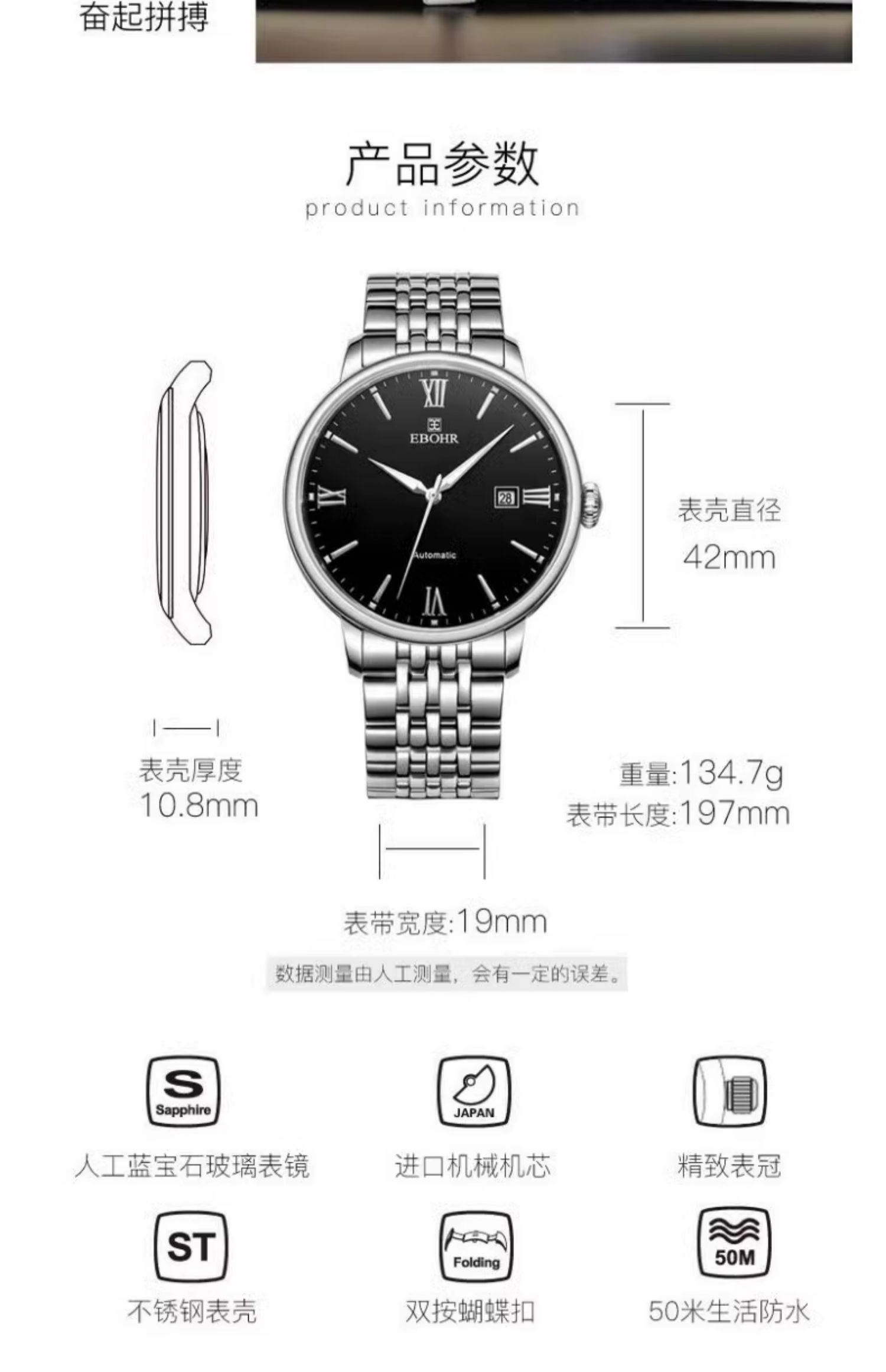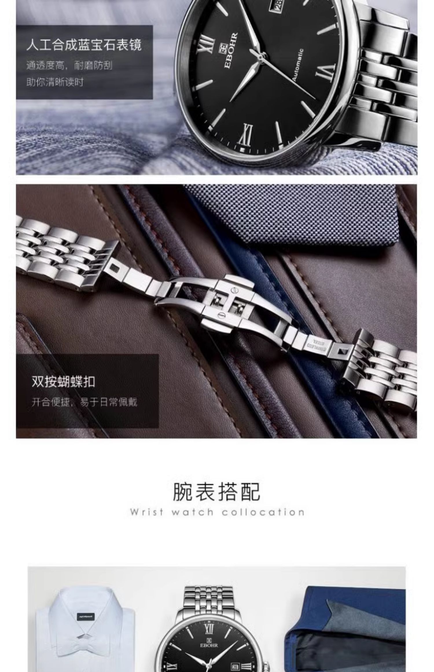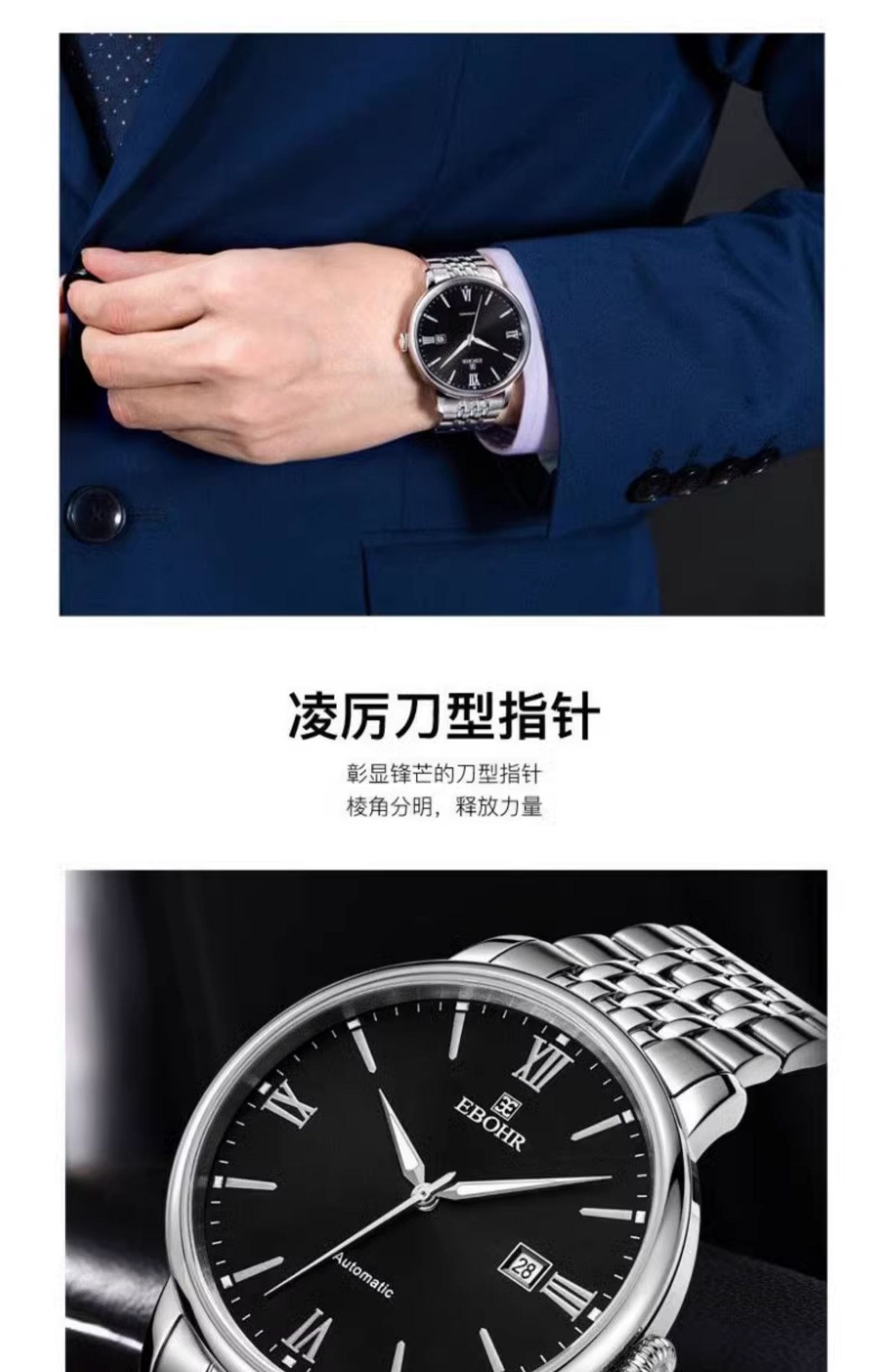 依波手表男机械表正品简约商务防水日历手表钢带手表男士5624