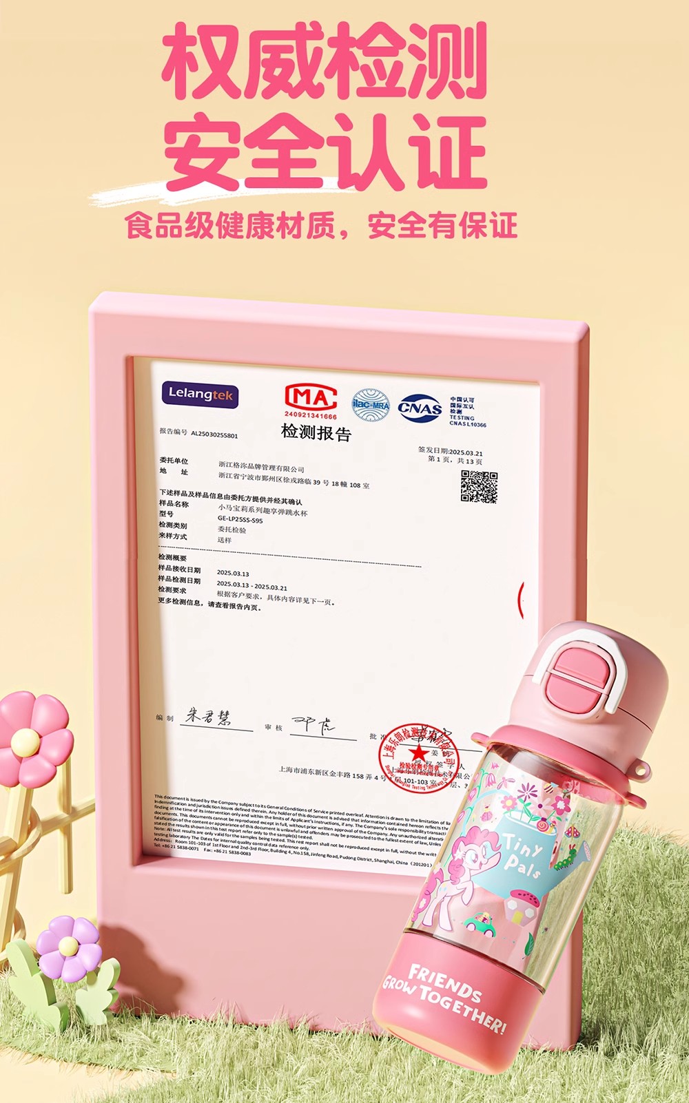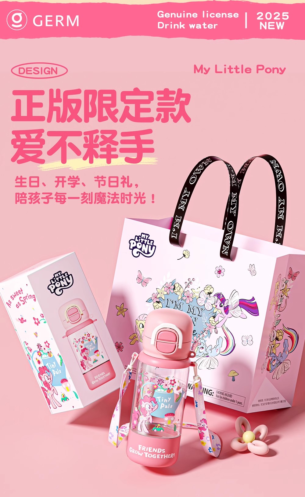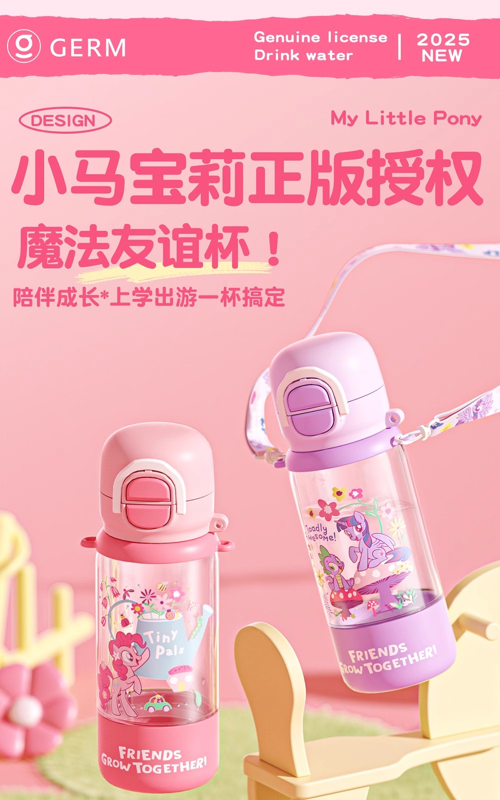 日本GERM格沵 小马主莉系列趣亨弹跳水杯550ML(不含杯套) 儿童水杯吸管杯子高颜值