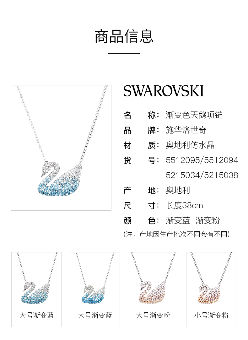 Swarovski施华洛世奇正品项链女渐变天鹅非纯银锁骨链官网5215034