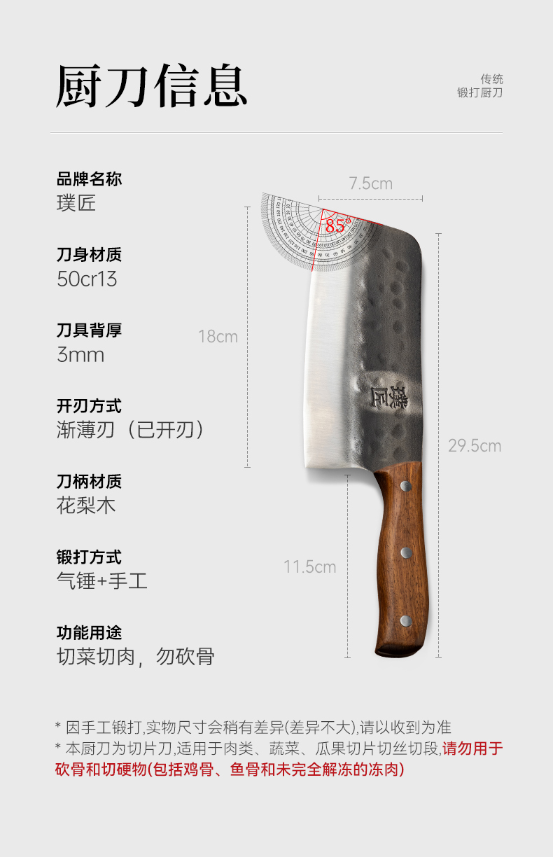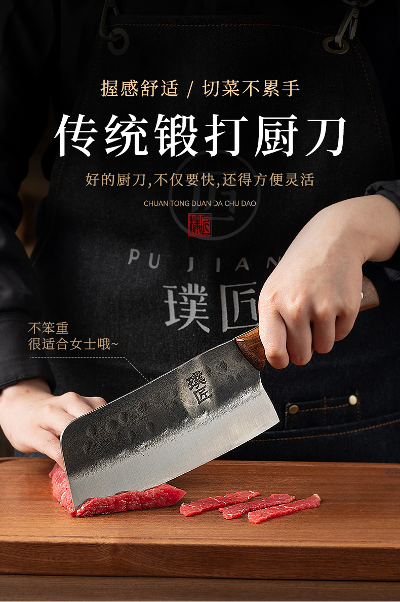 璞匠菜刀锻打手工刀家用厨房刀具切片切肉切菜厨师用锋利正品厨刀