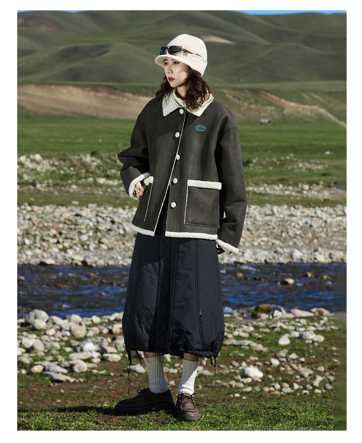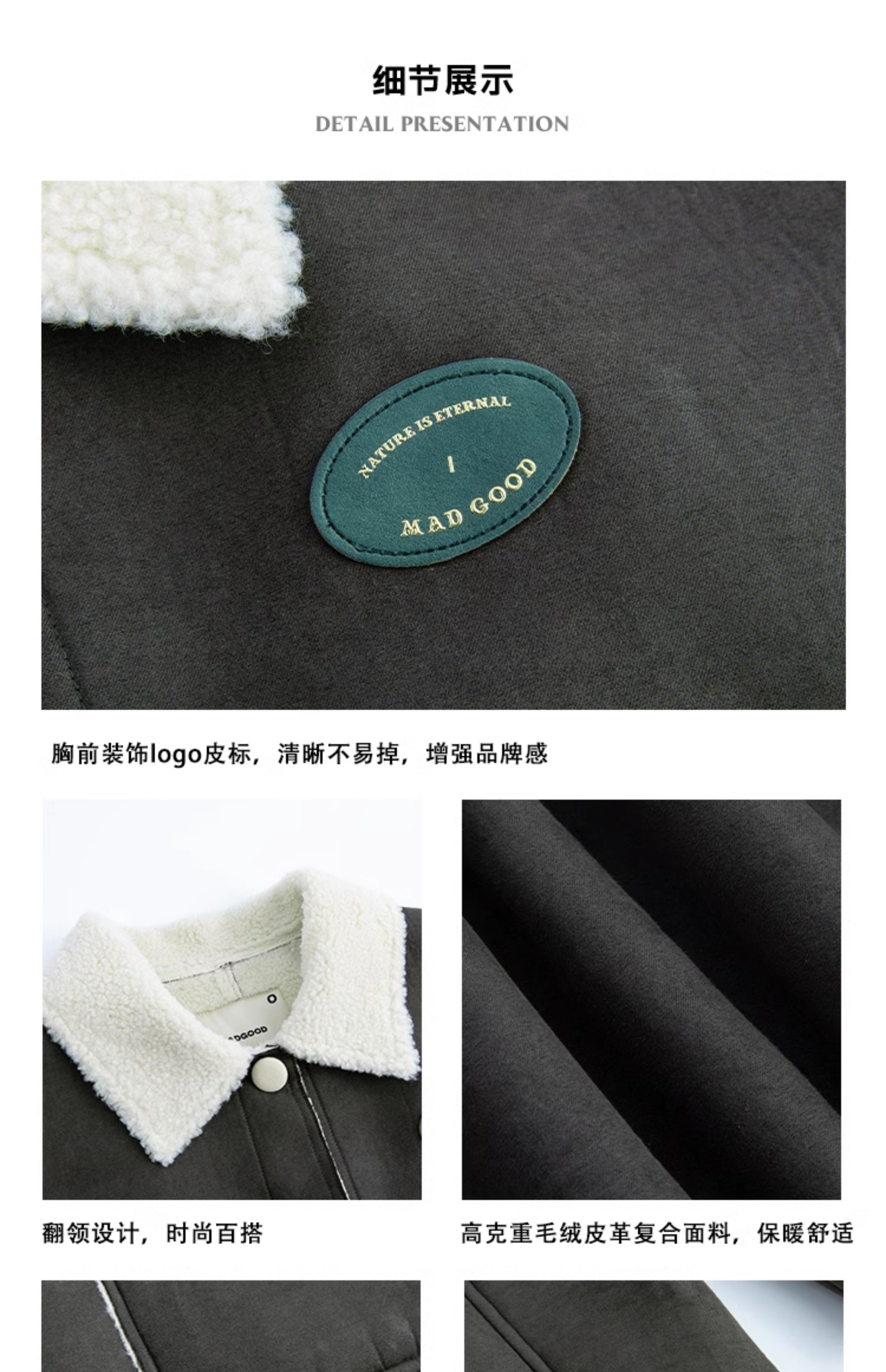 马得工地/ MDGDWT244490/翻领麂皮羊羔绒夹克