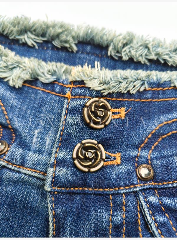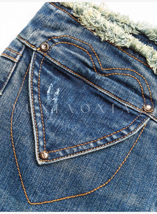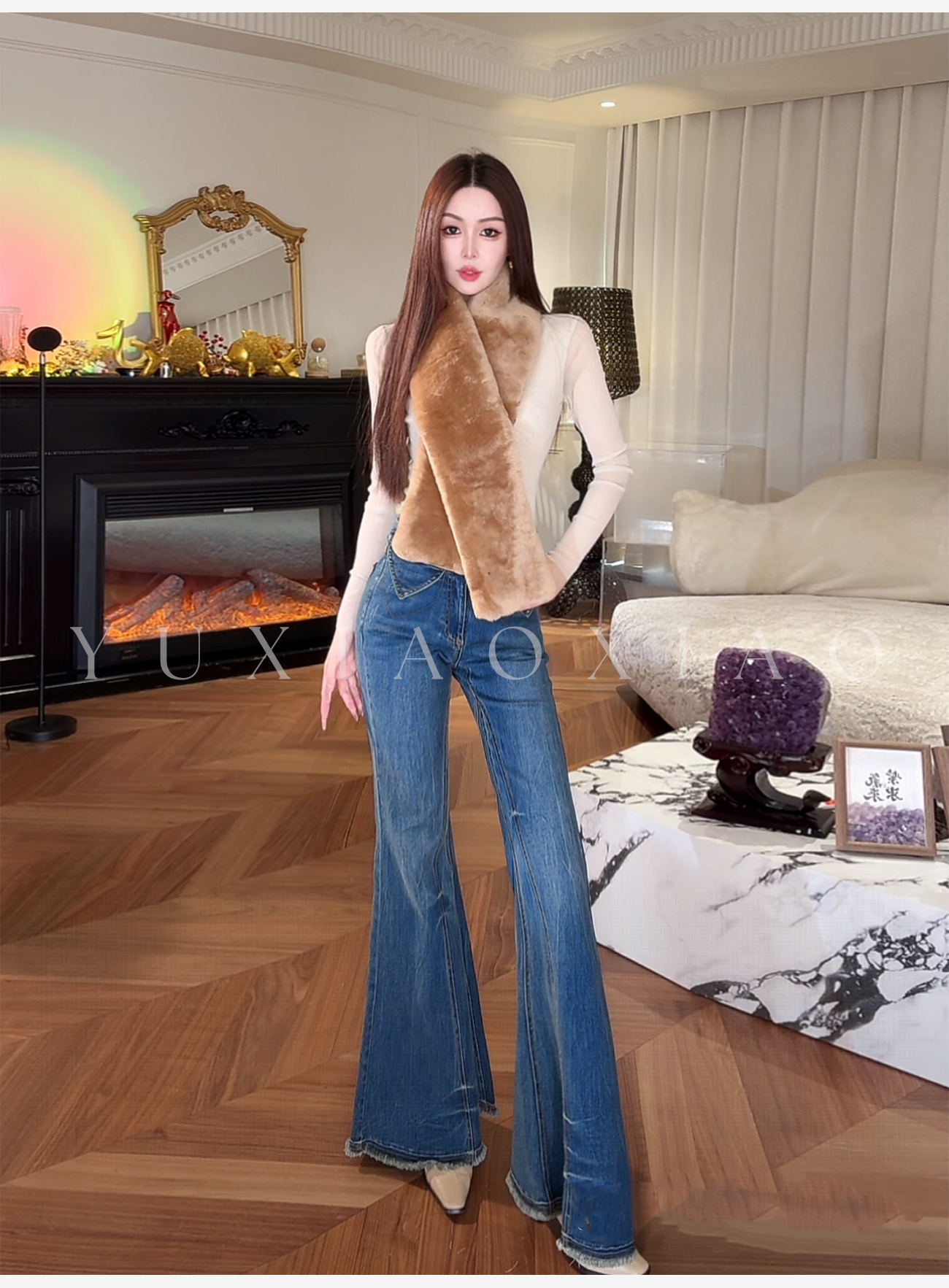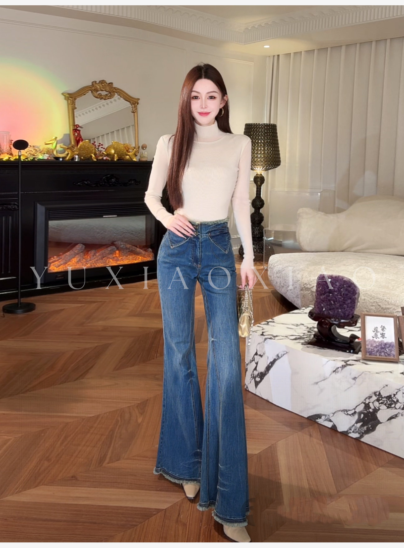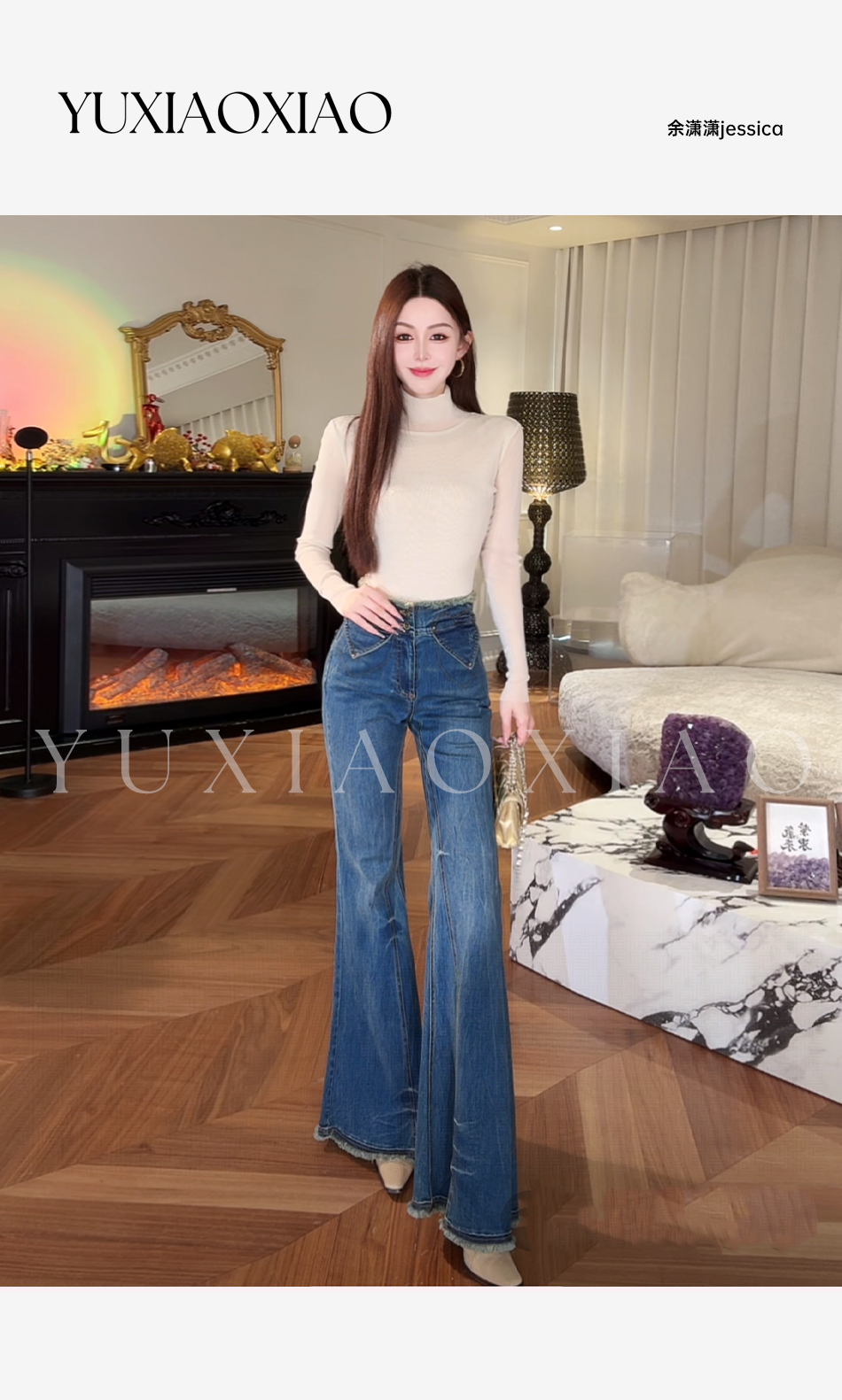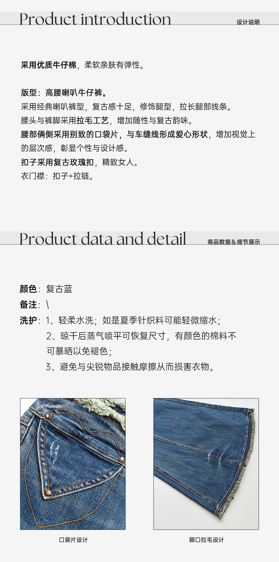 余潇潇【复古誓言】棉感复古爱心口袋玫瑰扣高腰喇叭牛仔裤