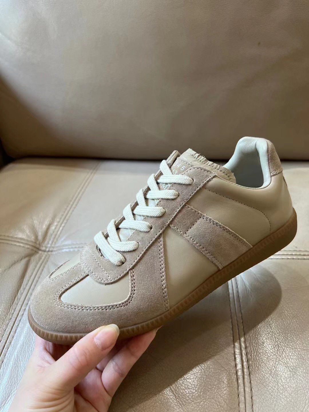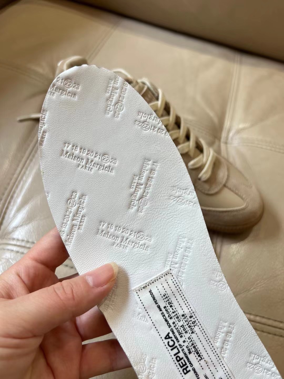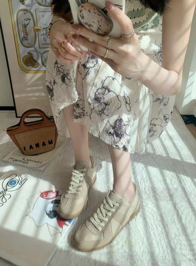 628-6:岁月带不走的鞋柜 人手一双 MM6黄胶底德训鞋 系带休闲鞋。胖瓜收拾了这么久,3号选定带出去旅游的鞋子,就它了。你以为大夏天穿这双会闷热,no no no,完全没有,鞋垫是专用牛皮内垫,贴合了乳胶发泡,亲肤柔滑透气,而且不粘腻,穿上的脚感,比想象的更亲肤更舒适。简洁,低调,高街,休闲,相当有味道。