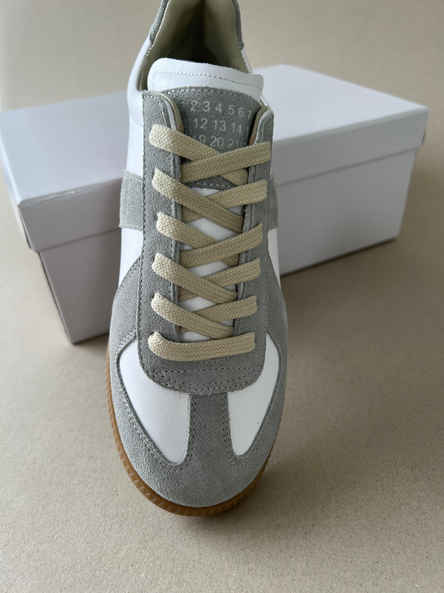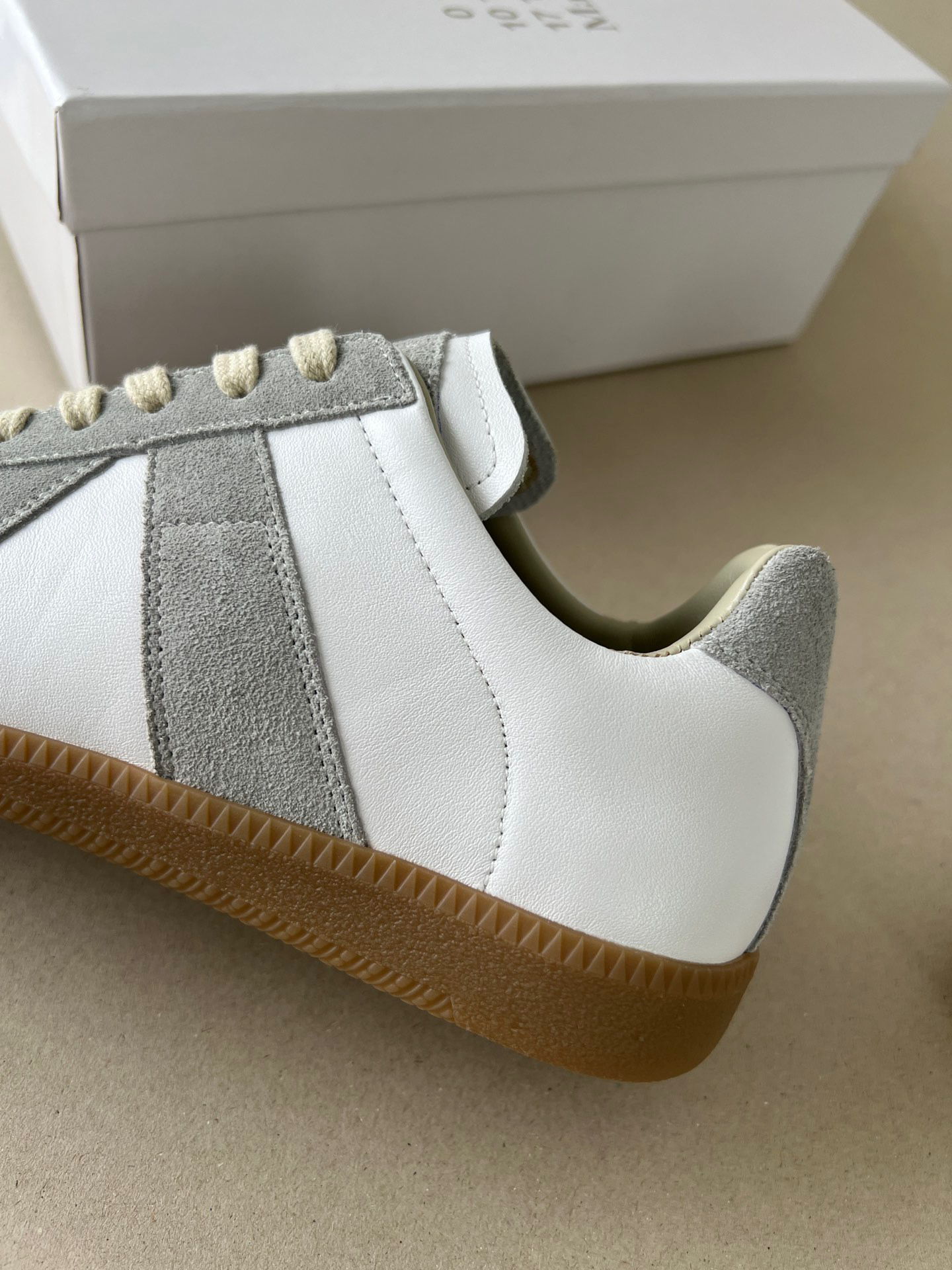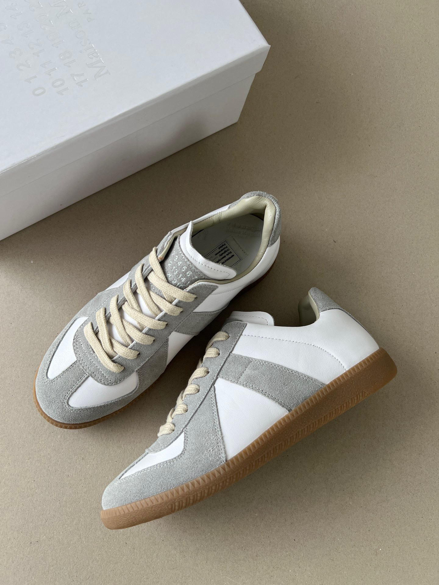 628-6:岁月带不走的鞋柜 人手一双 MM6黄胶底德训鞋 系带休闲鞋。胖瓜收拾了这么久,3号选定带出去旅游的鞋子,就它了。你以为大夏天穿这双会闷热,no no no,完全没有,鞋垫是专用牛皮内垫,贴合了乳胶发泡,亲肤柔滑透气,而且不粘腻,穿上的脚感,比想象的更亲肤更舒适。简洁,低调,高街,休闲,相当有味道。