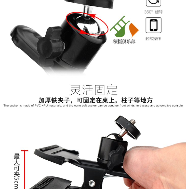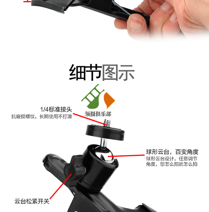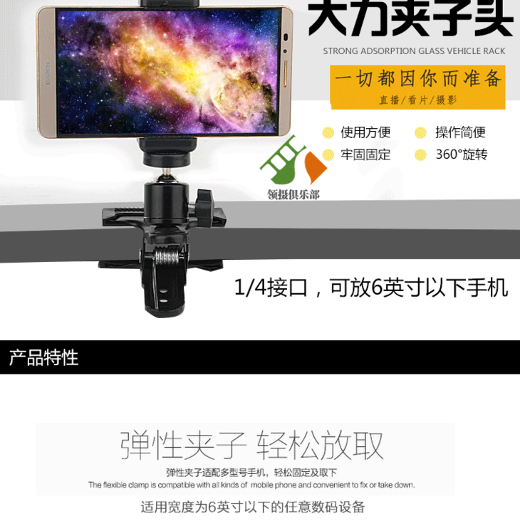 手机支架桌面金属扩展大力夹子头摄影配件1/4万向多功能通用